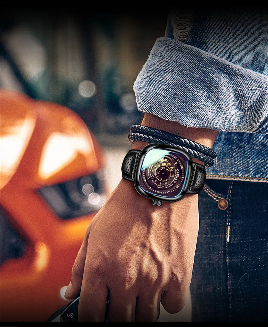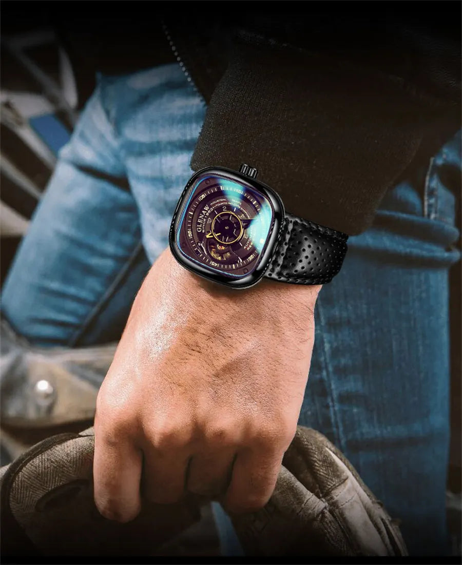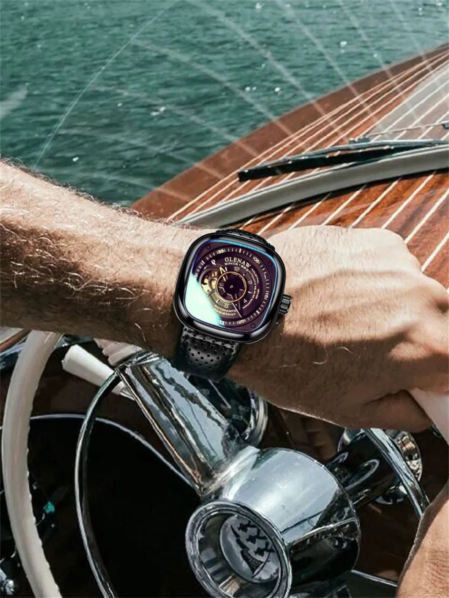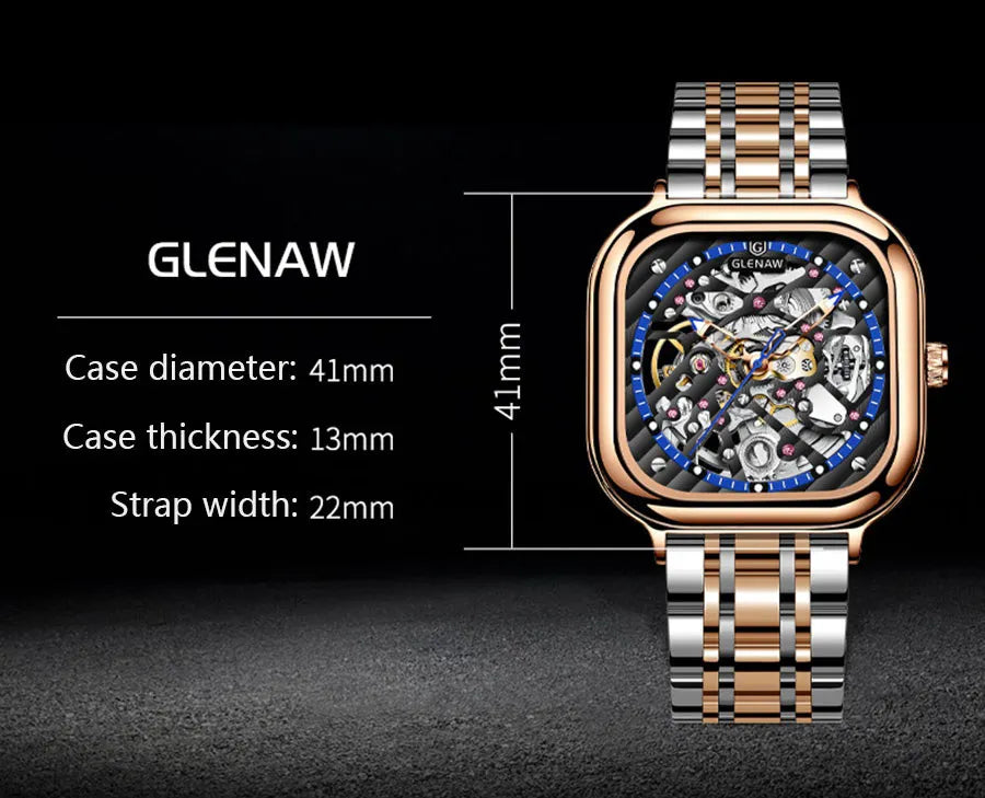 Perfect for business casual wear, this men's automatic watch has a square dial. The leather strap and stainless steel casing are durable and add a modern touch to the accessory. An elegant and stylish watch with shock-resistant and water-resistant construction. Buy now!
