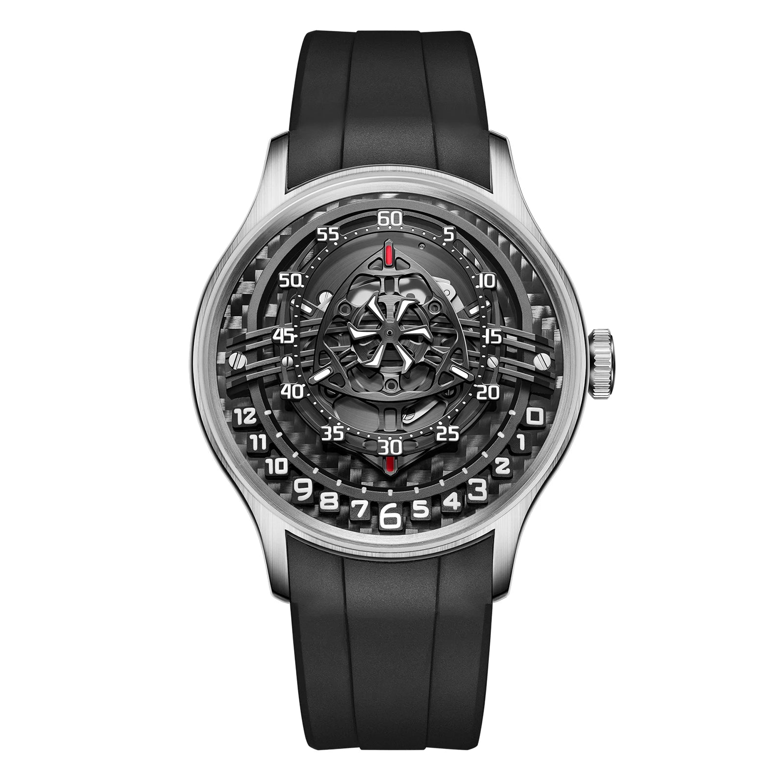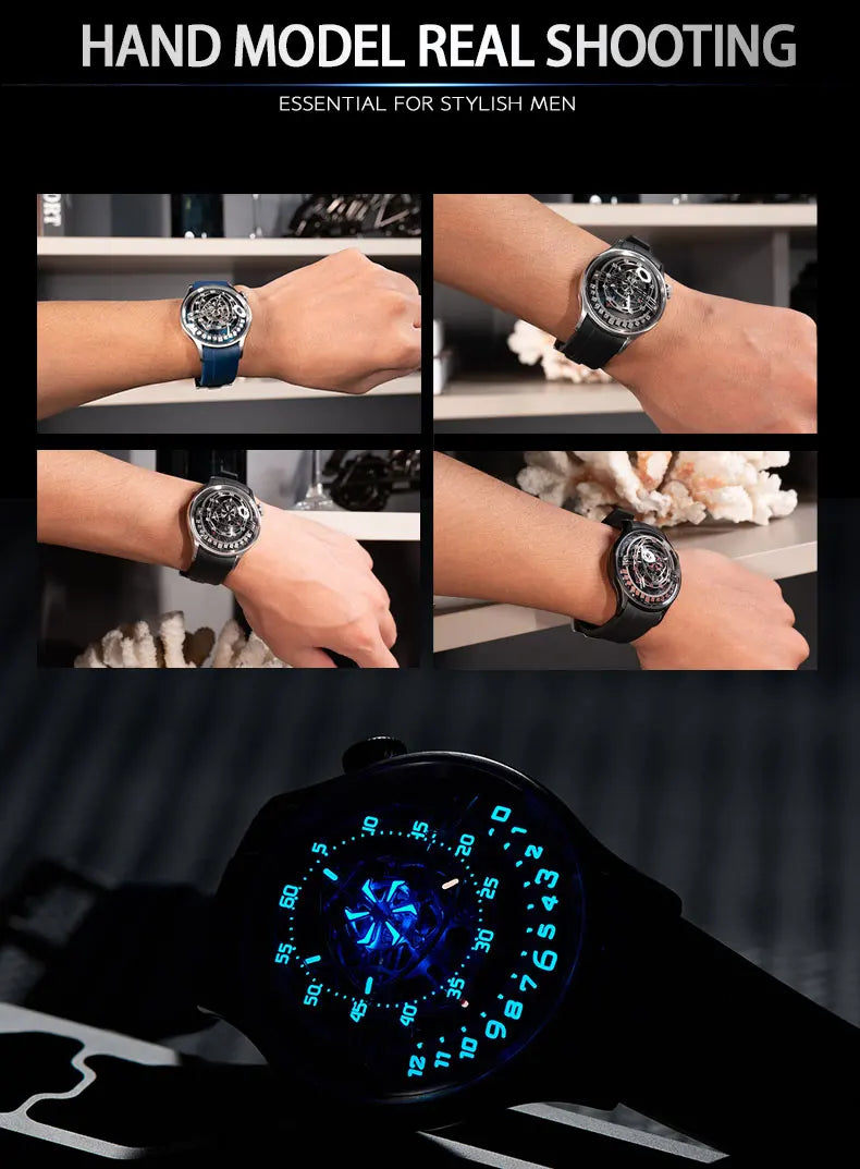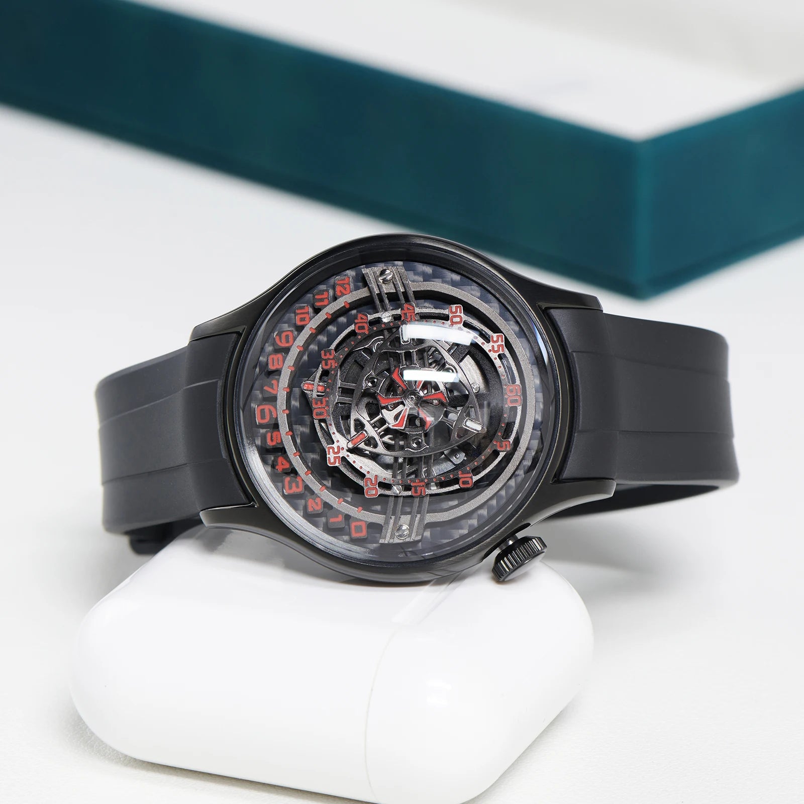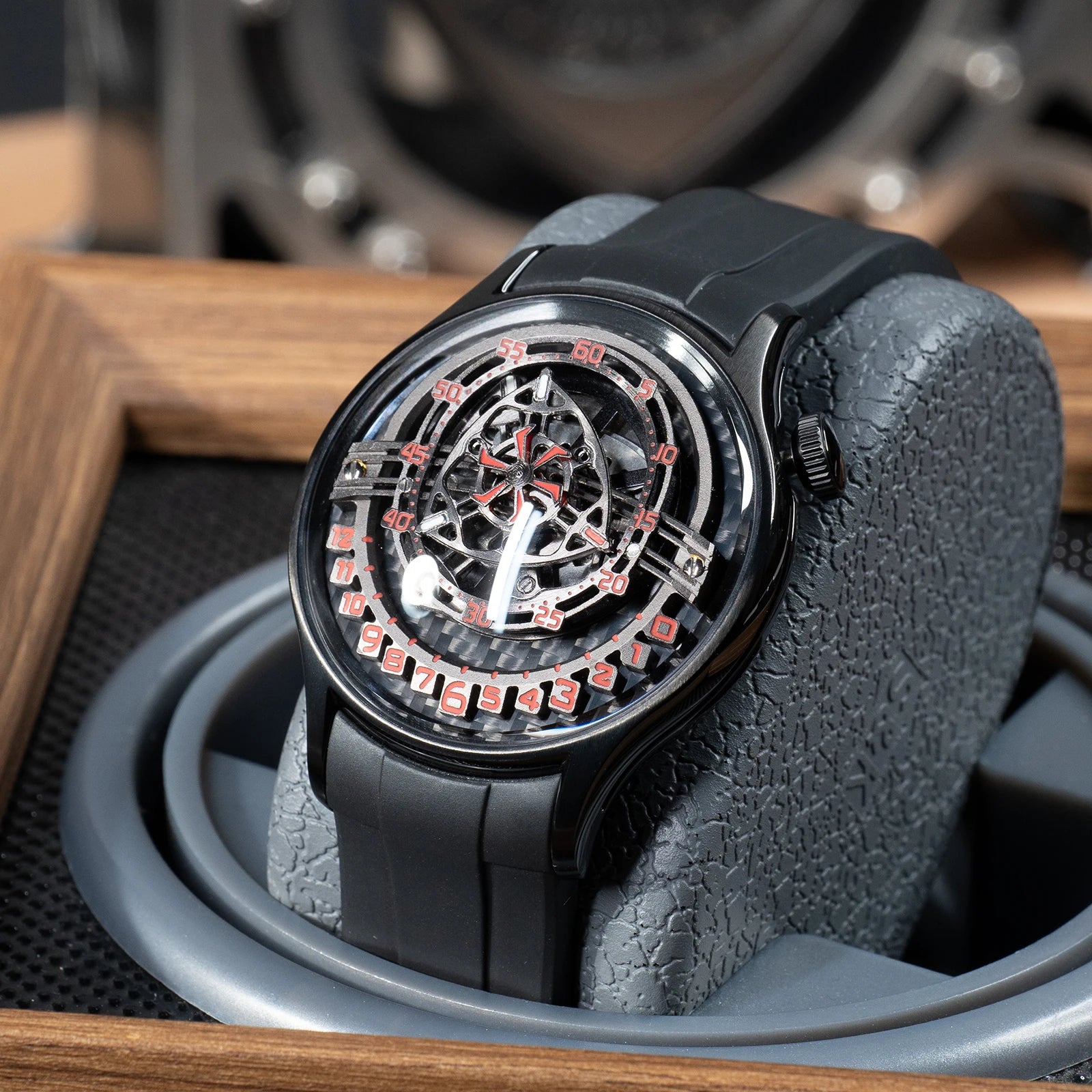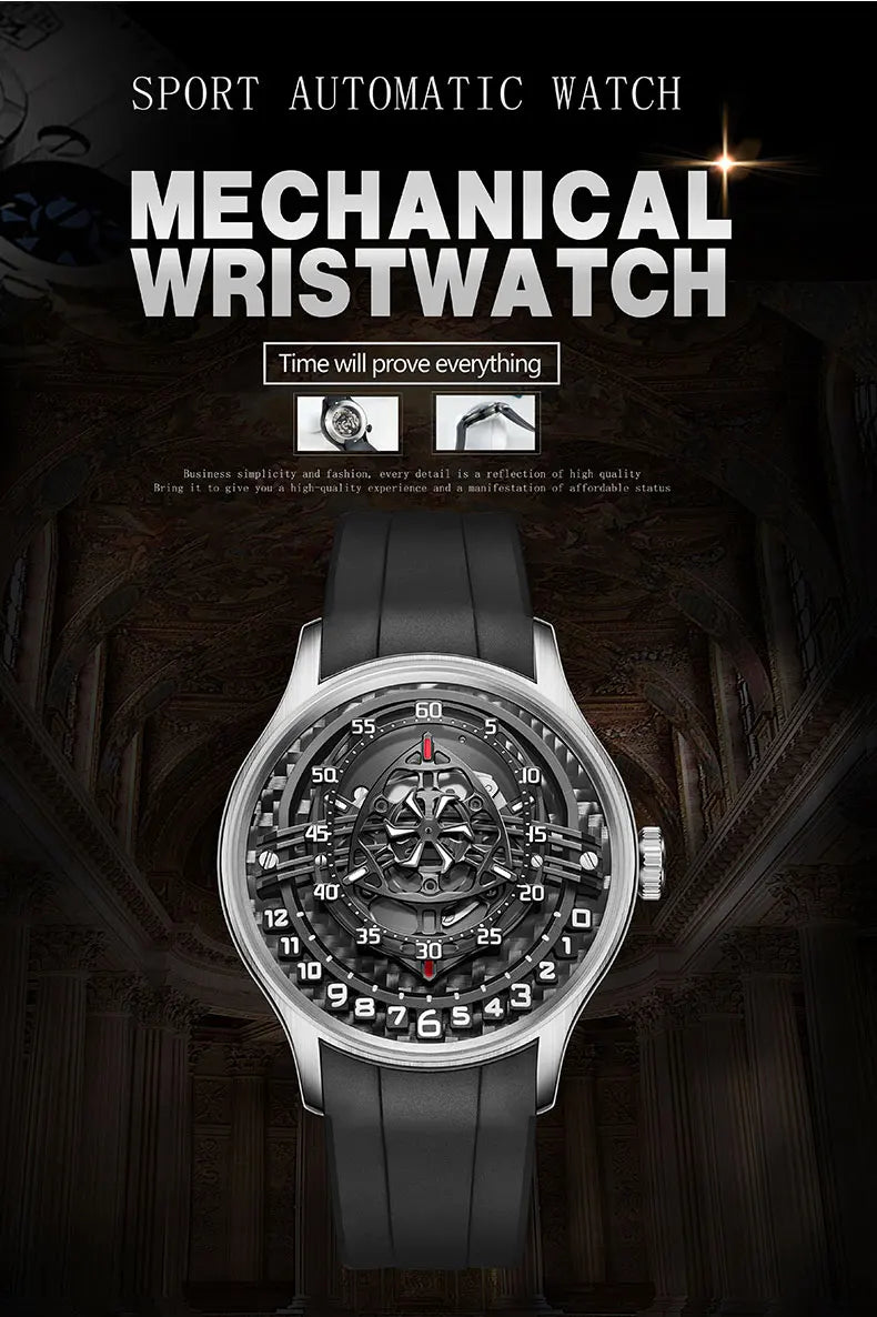 Men's Luxury Black Carbon Fibre Dial Mechanical Automatic Rotor Luminous Designer Watch
