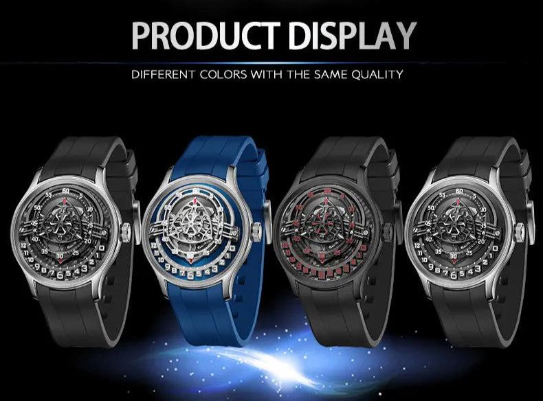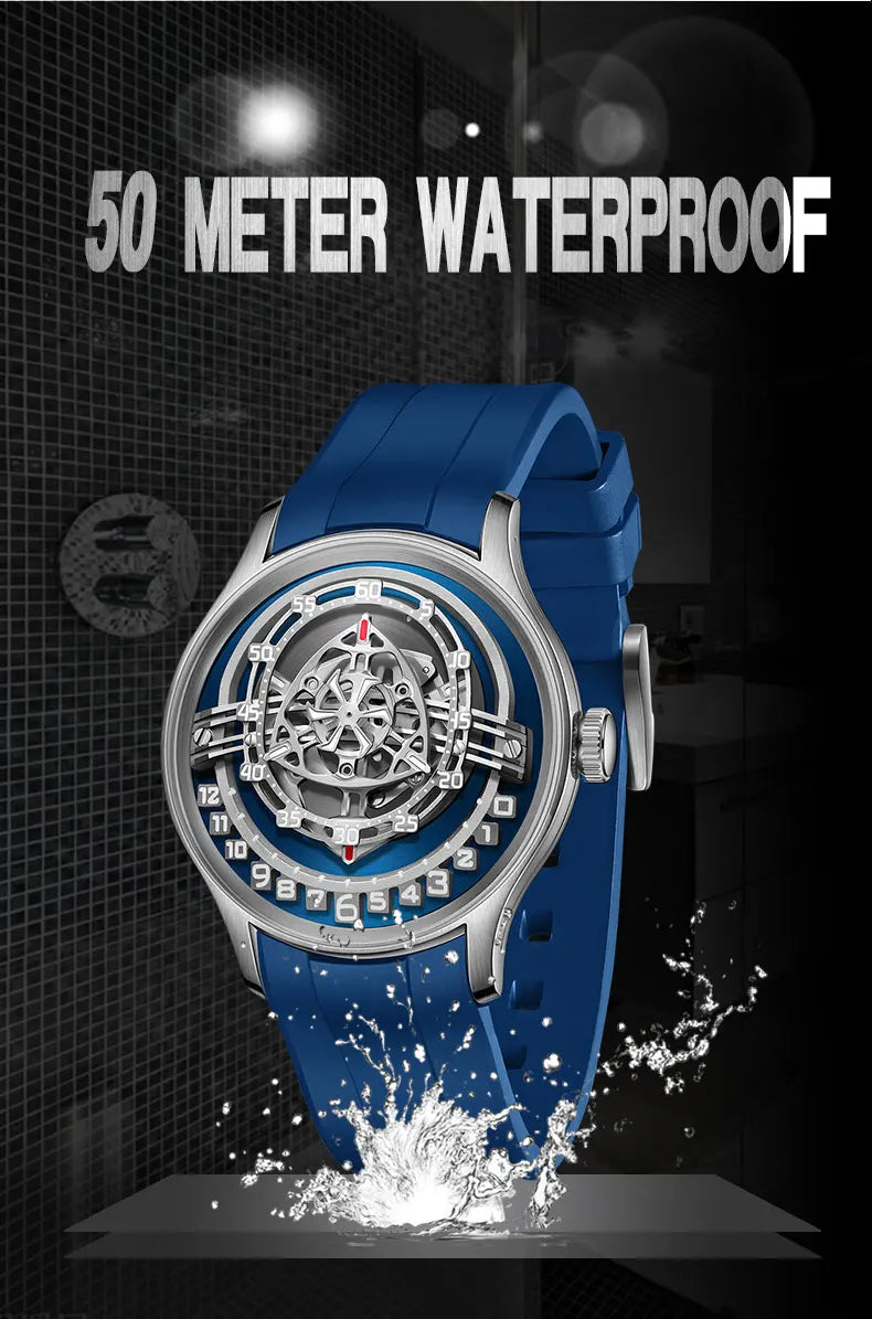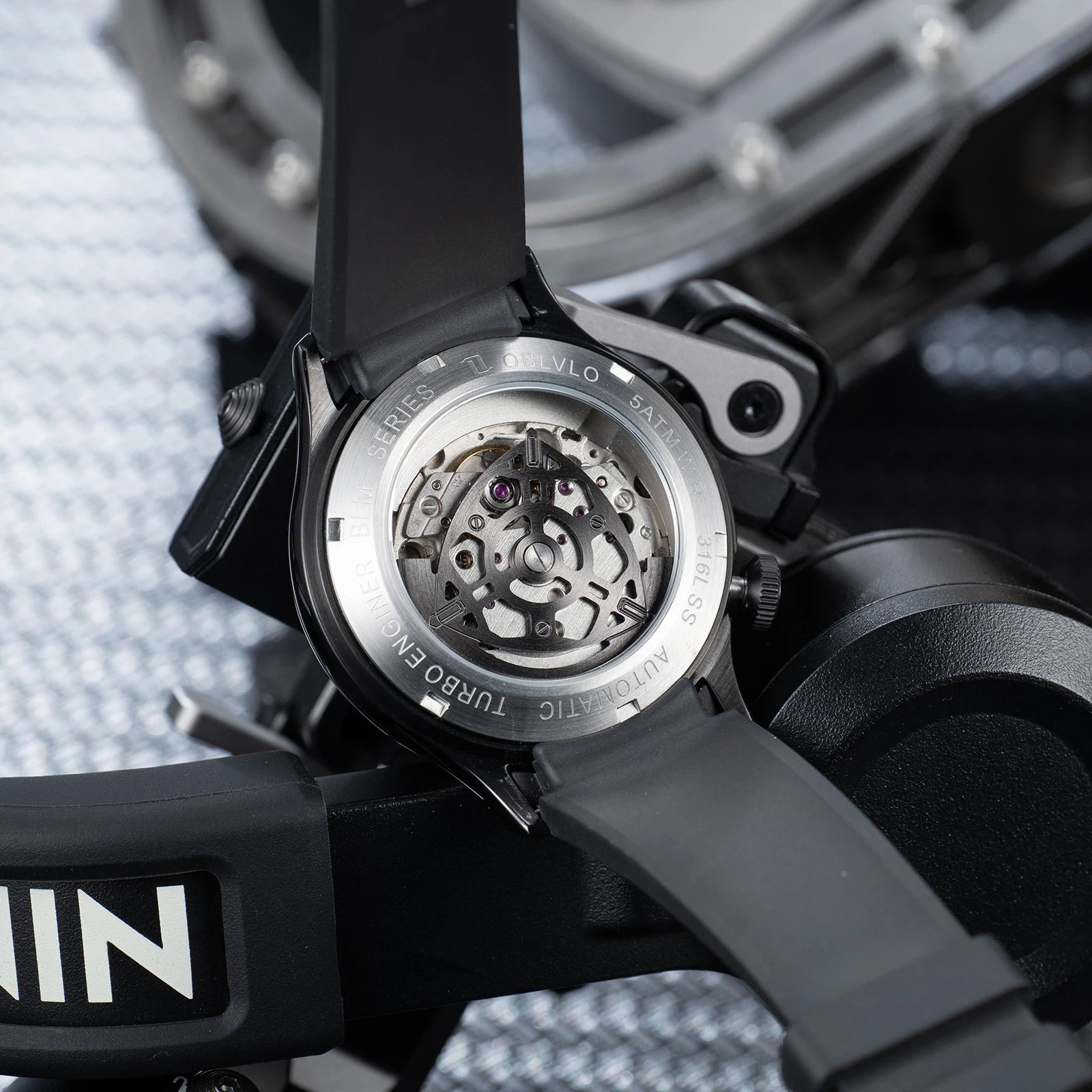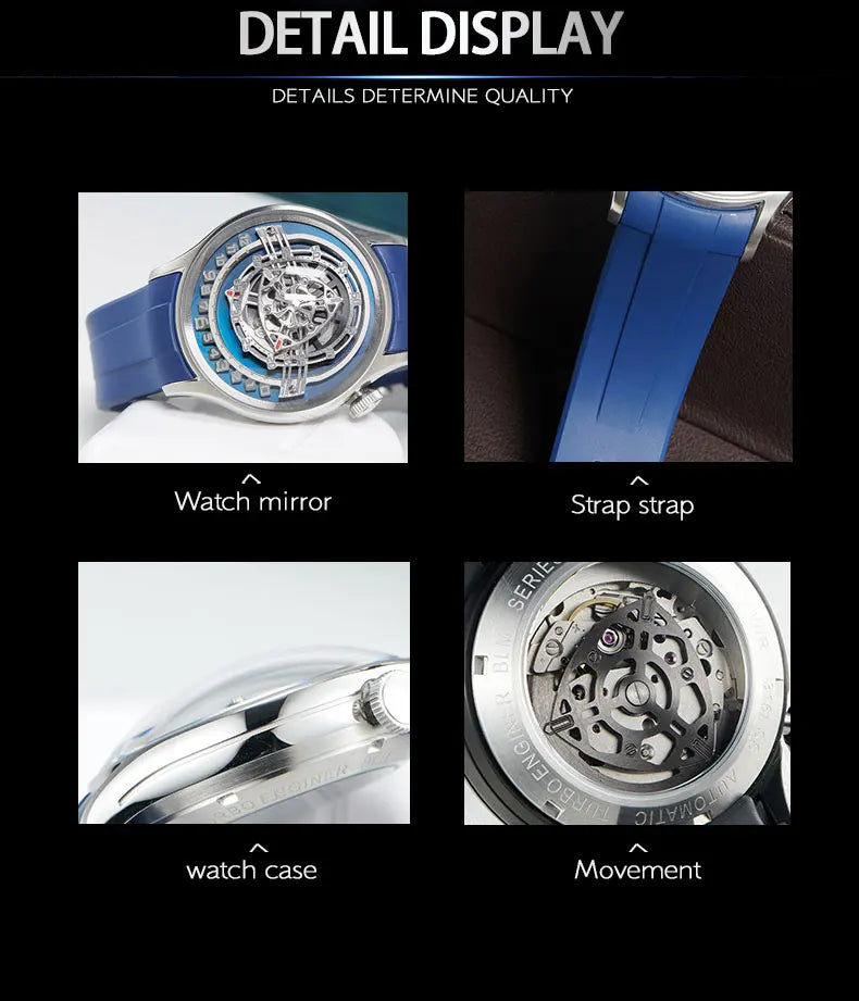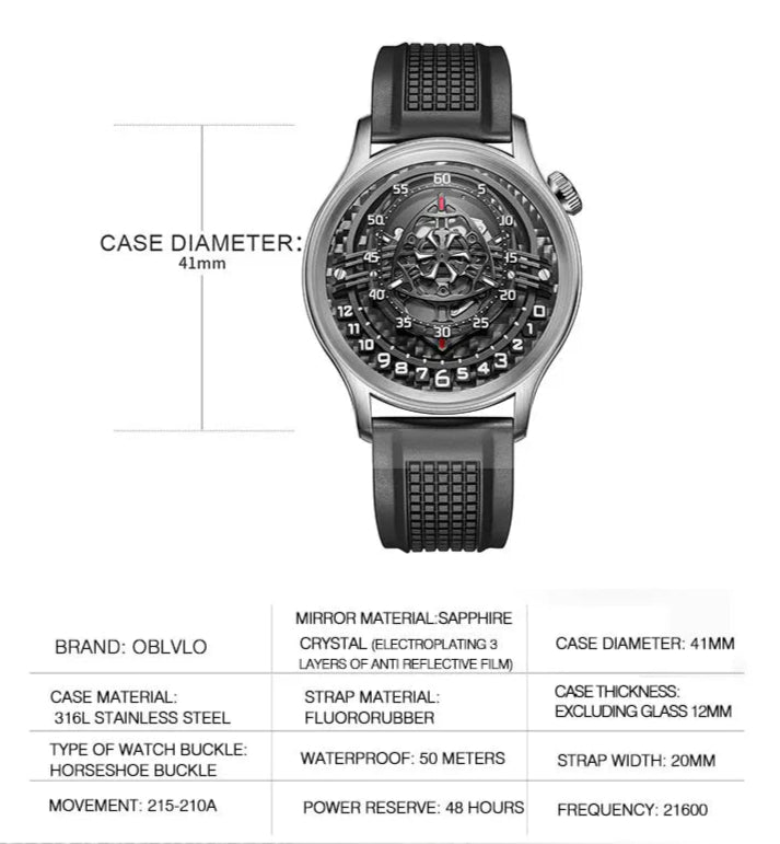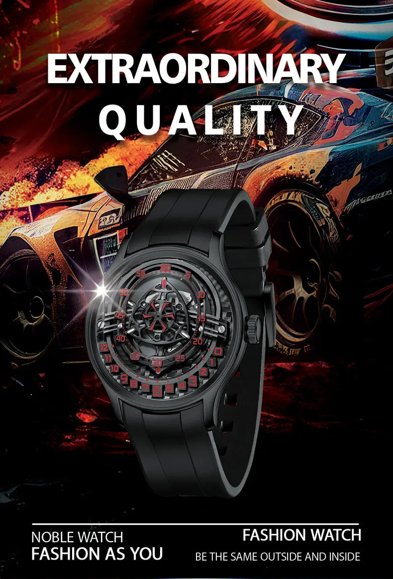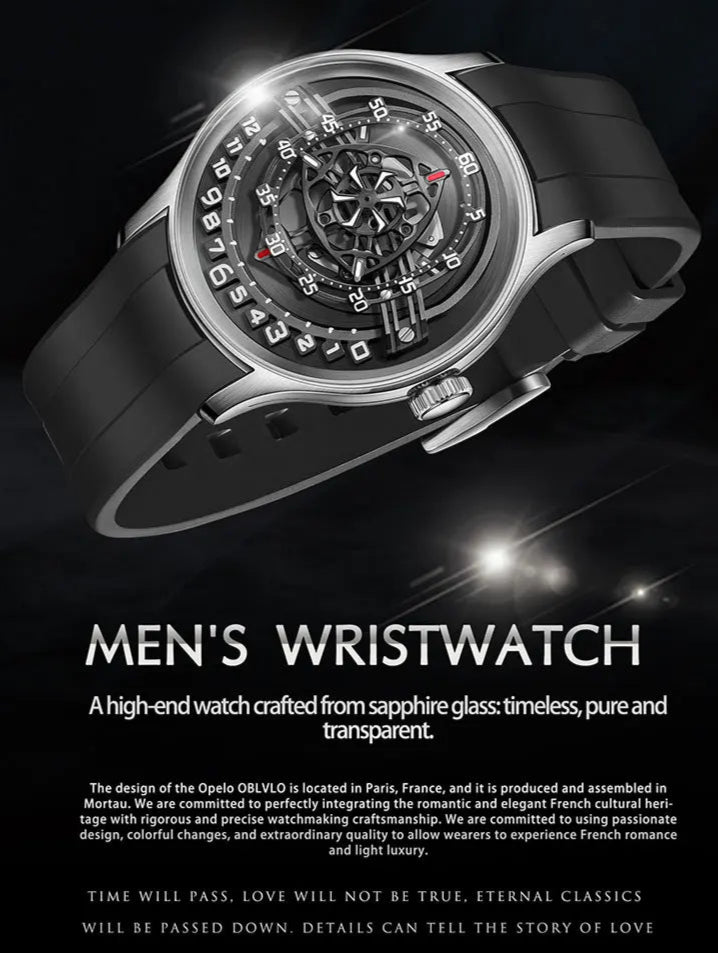 Men's Luxury Black Carbon Fibre Dial Mechanical Automatic Rotor Luminous Designer Watch
