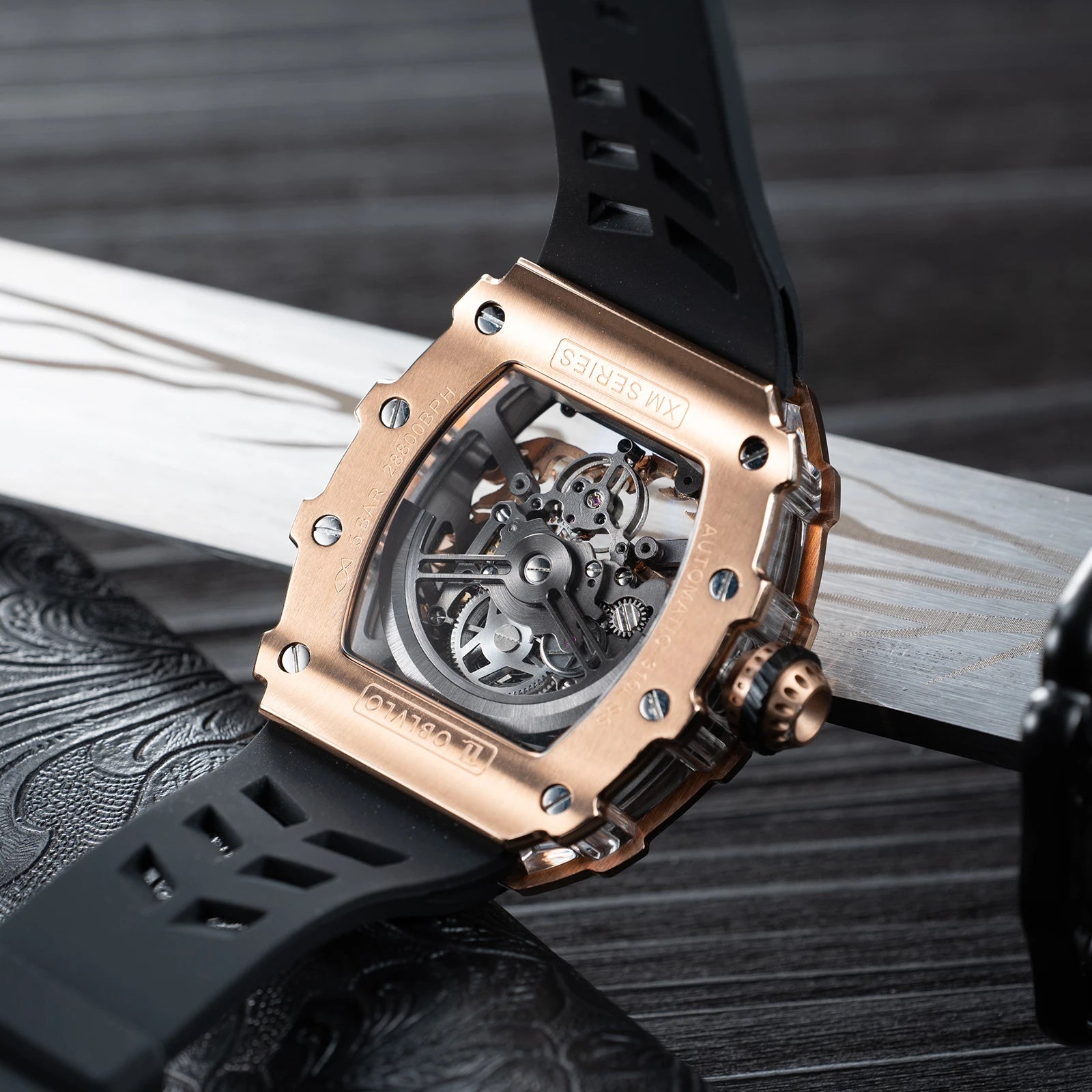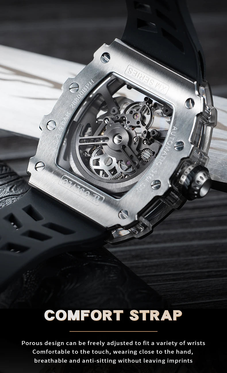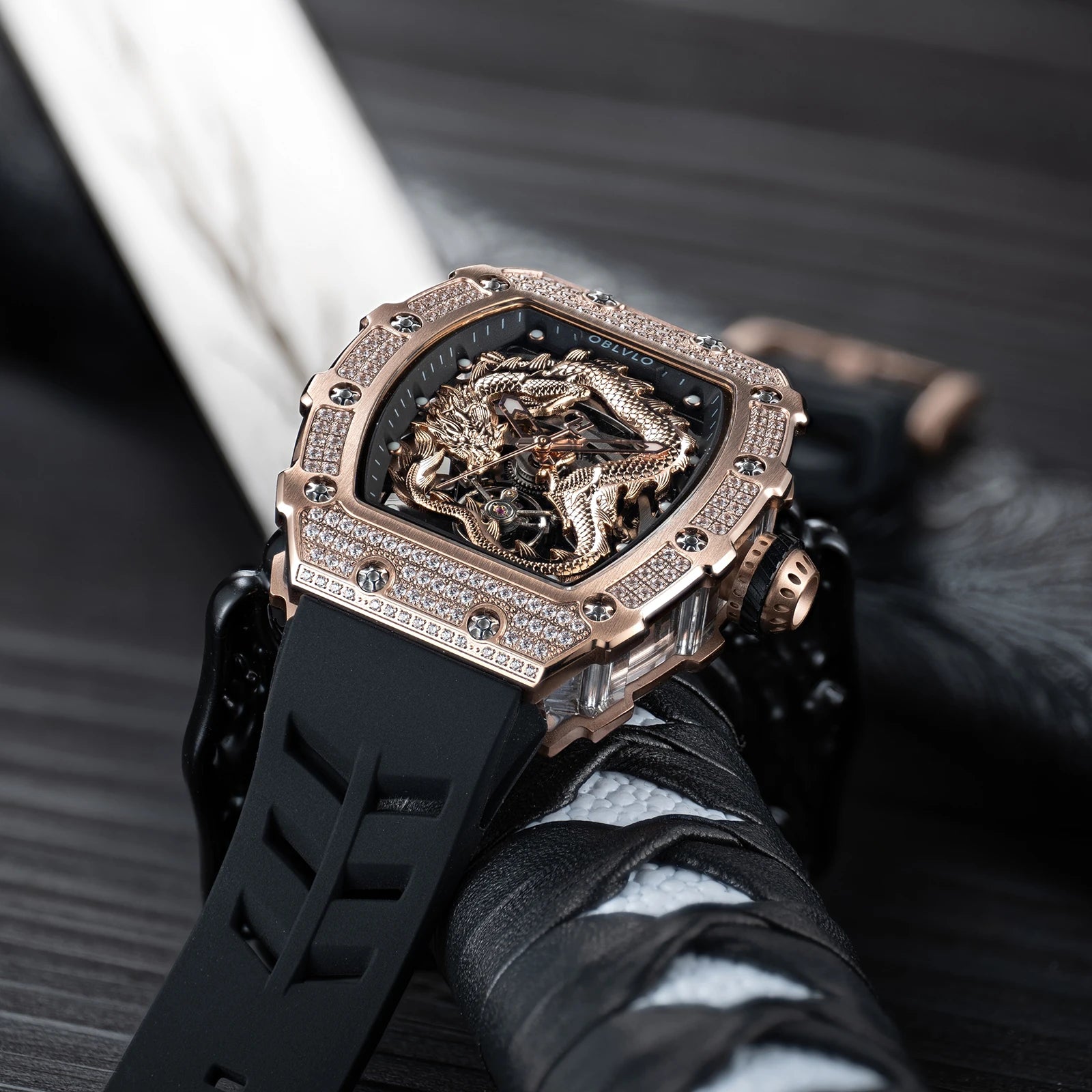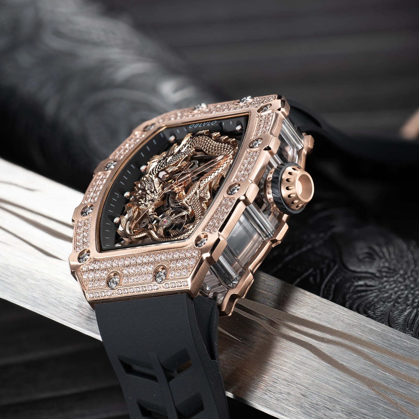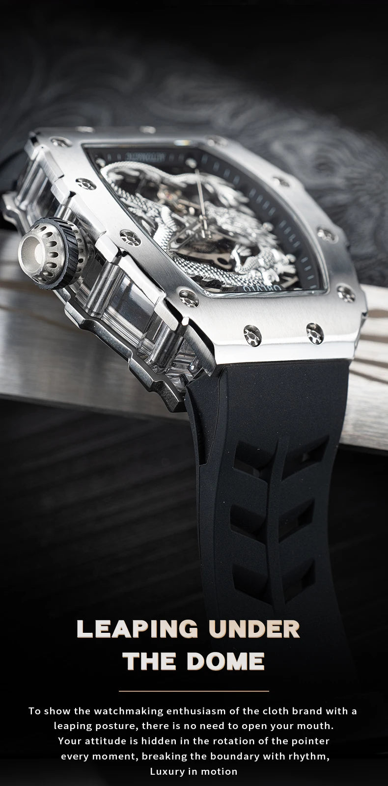 Men's Luxury Dragon Diamonds Tonneau Waterproof Automatic Mechanical Sports Watch