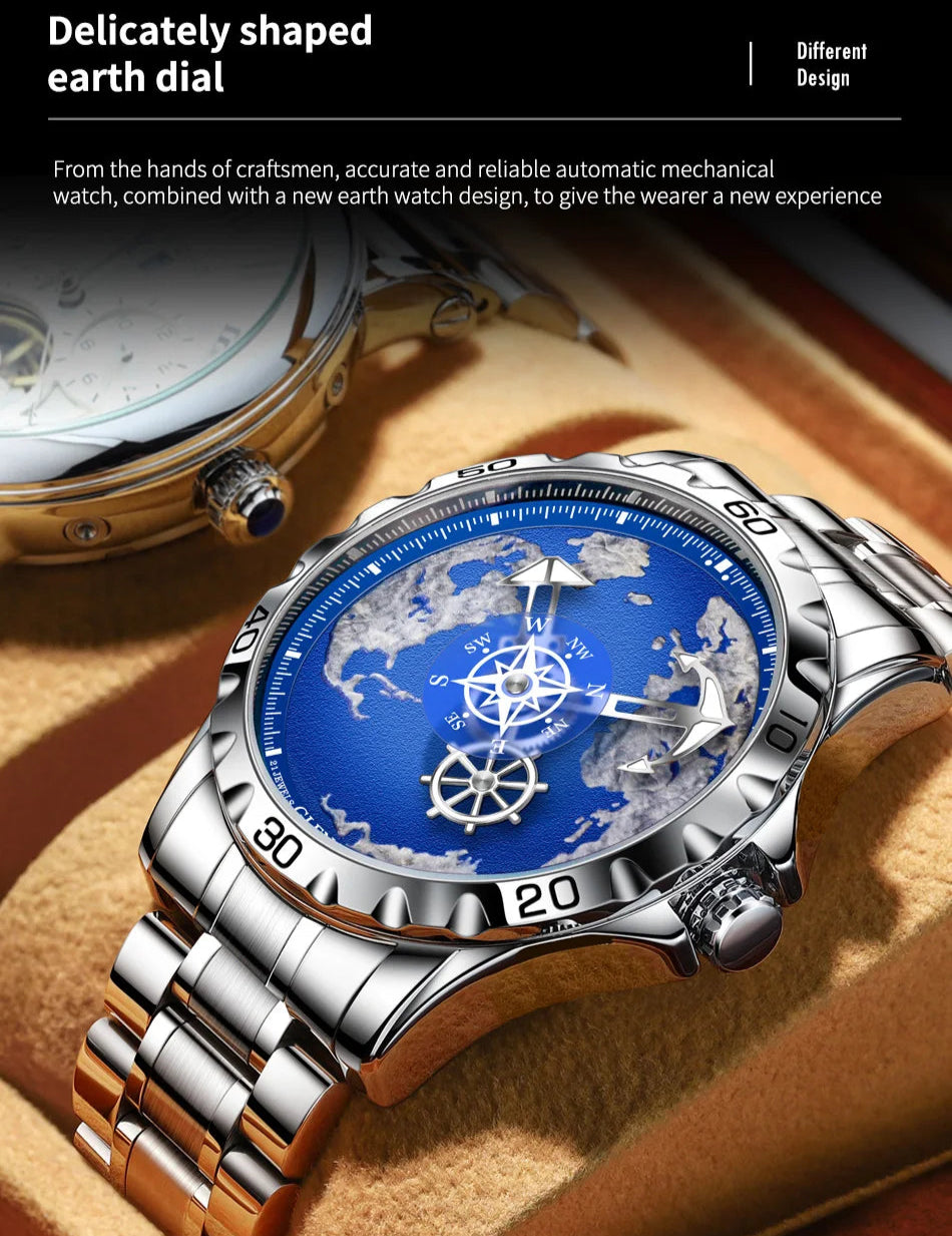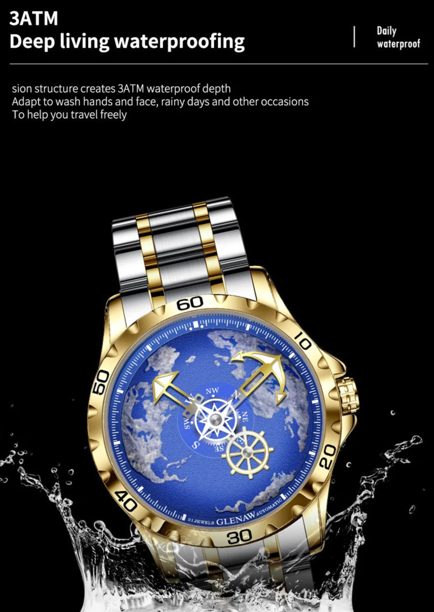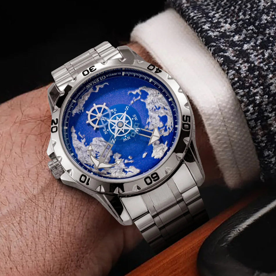 Men's Nautical Series Stainless Steel Glowing Waterproof Round Mechanical Watch