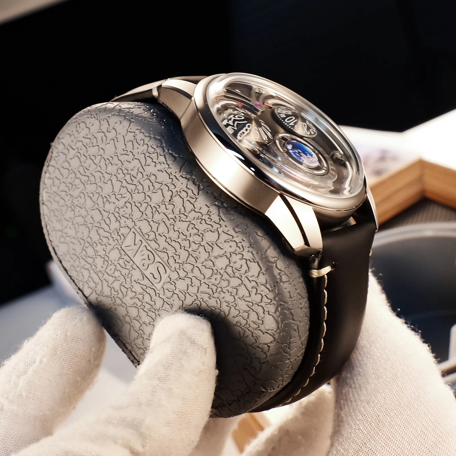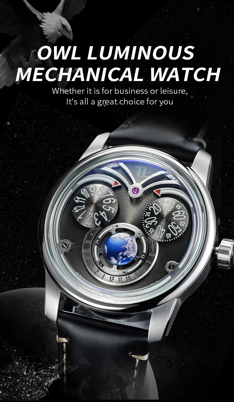 Men's Sharp Eagle Eyes Analog See-through Mechanical Automatic Leather Watch
