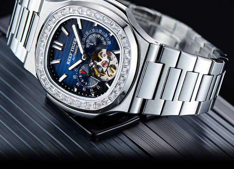 Men's Steel Diamond Automatic Multifunction Luminous Tourbillon Bracelet Watch