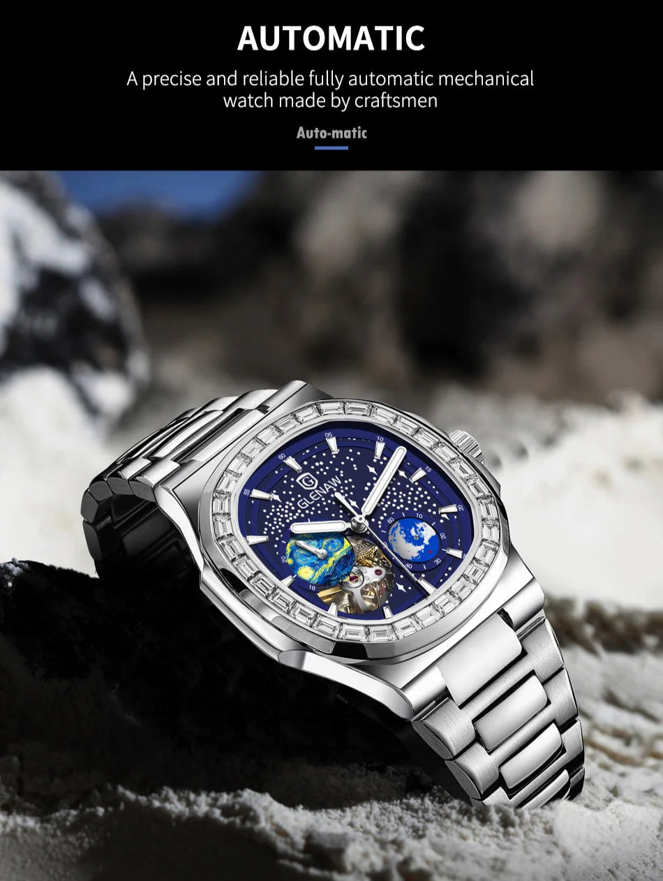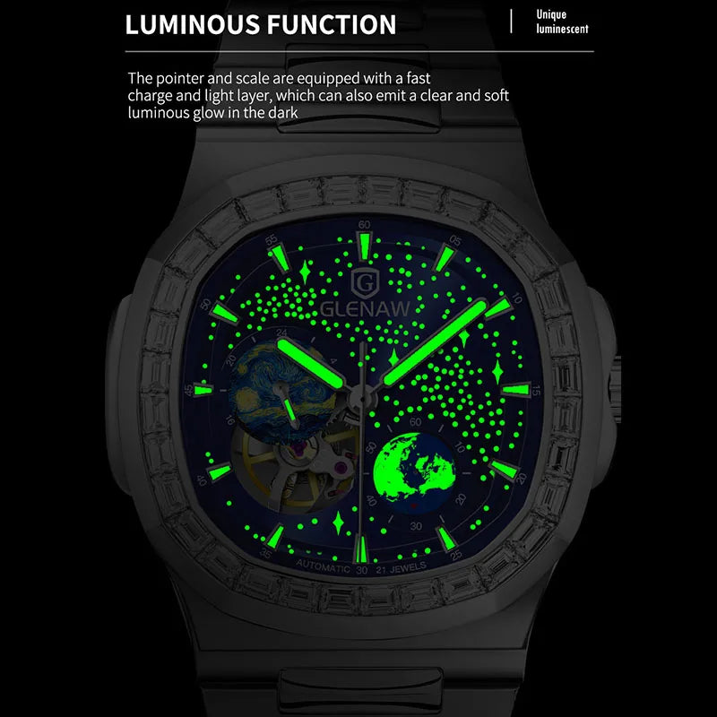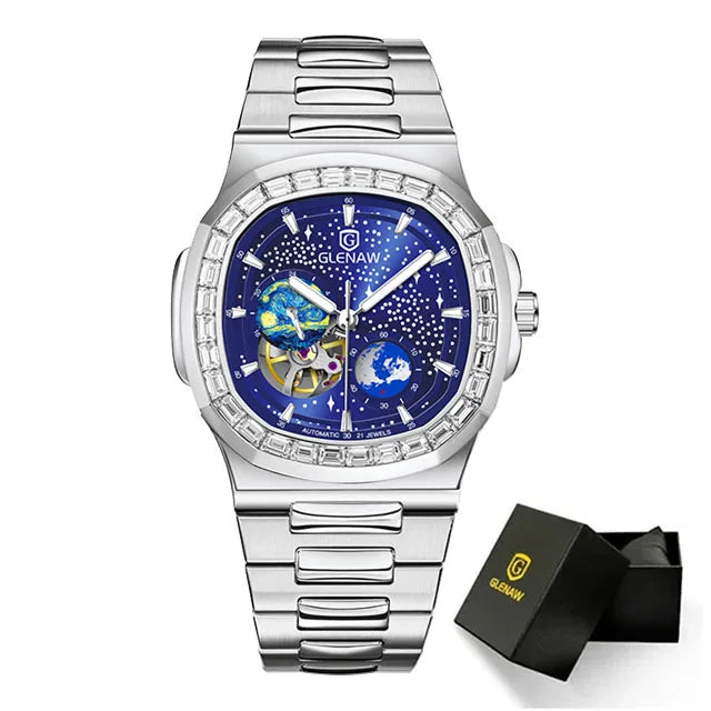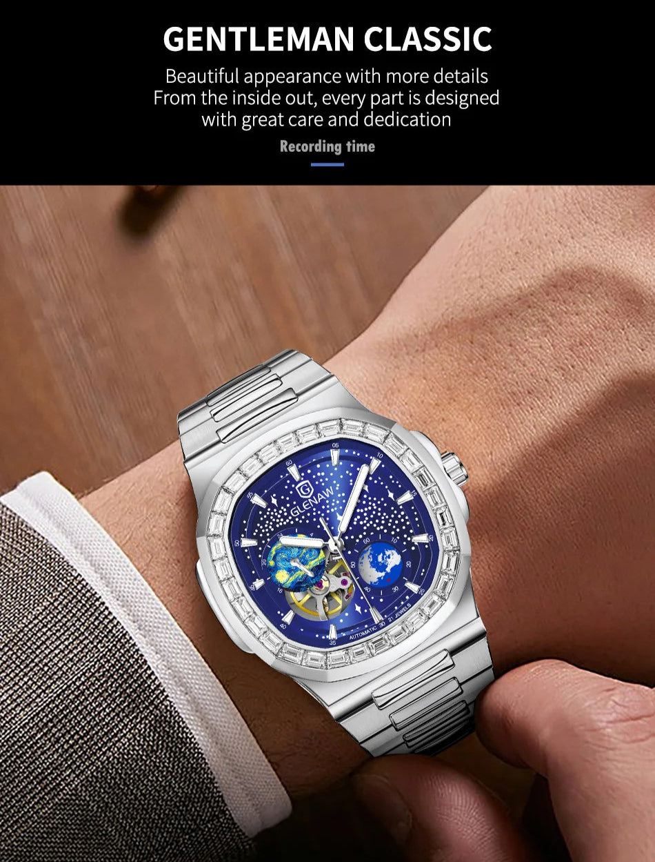 Men's Waterproof Luminous Double-second Rotating Earth Starry Sky Dial Watch