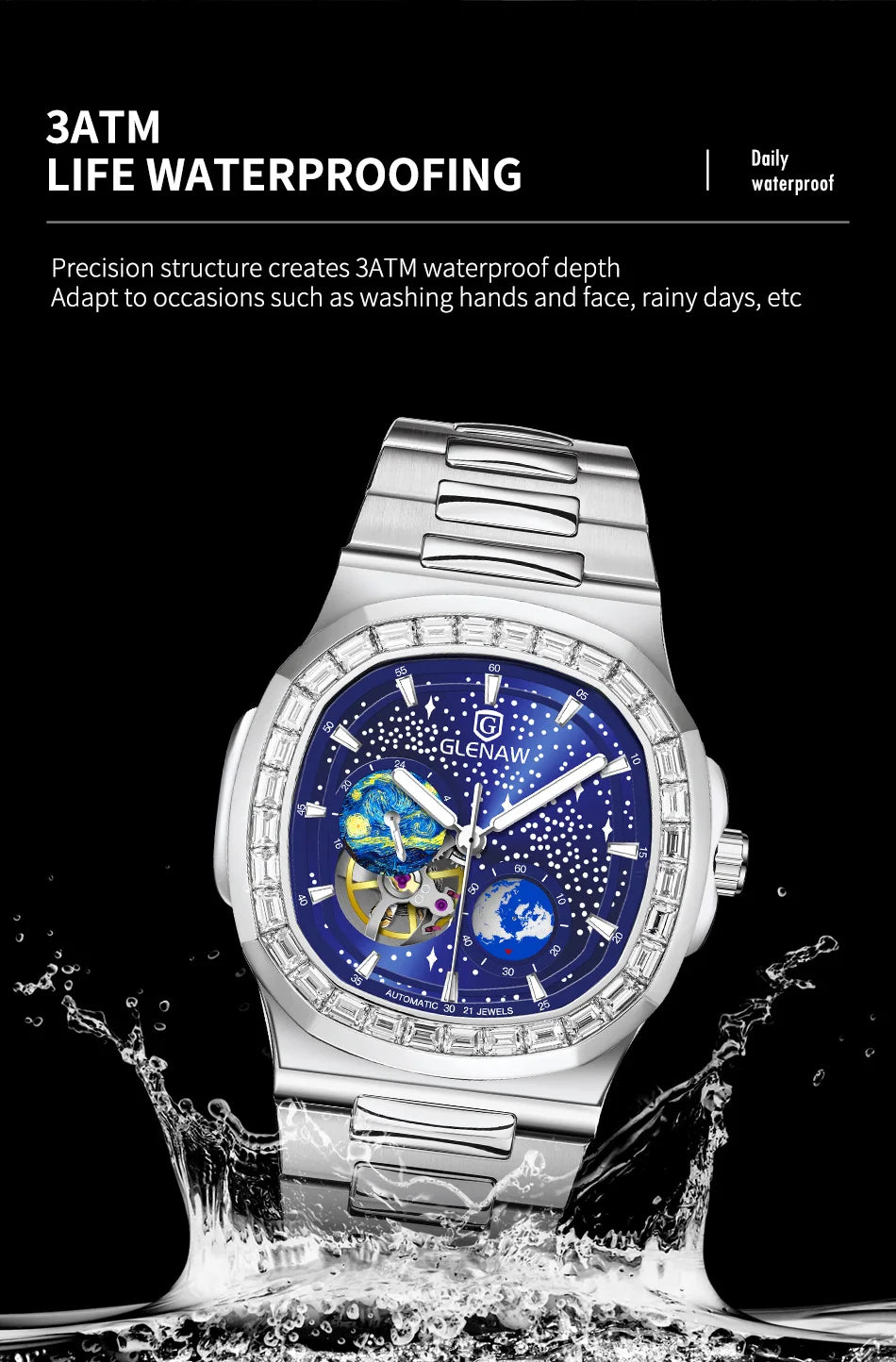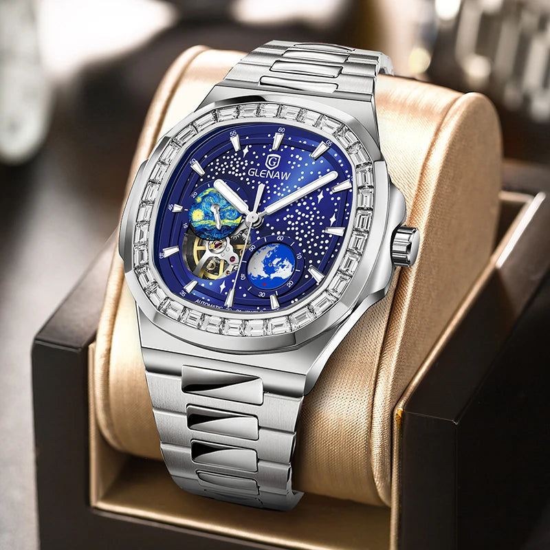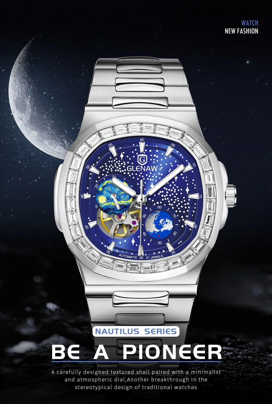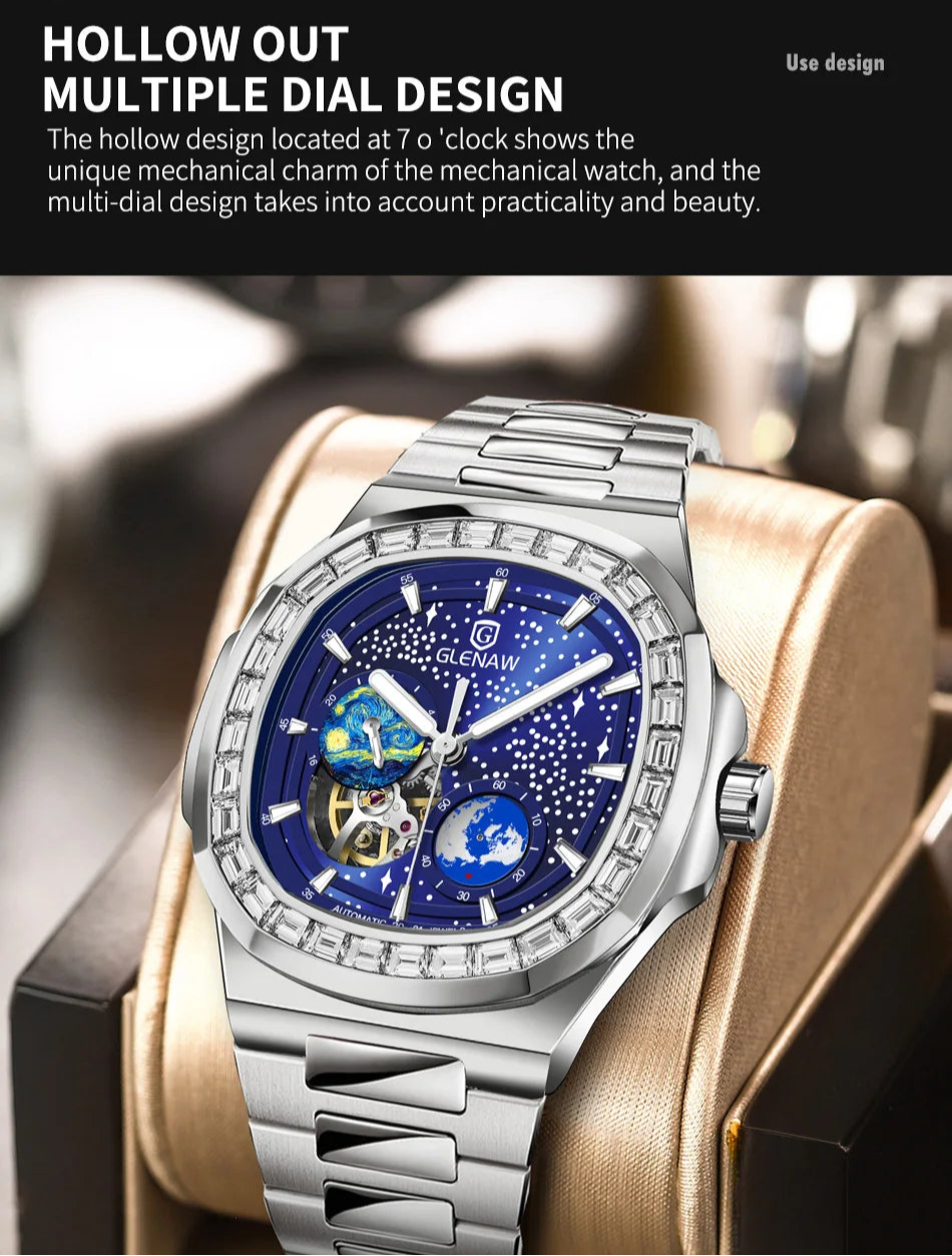 Men's Waterproof Luminous Double-second Rotating Earth Starry Sky Dial Watch