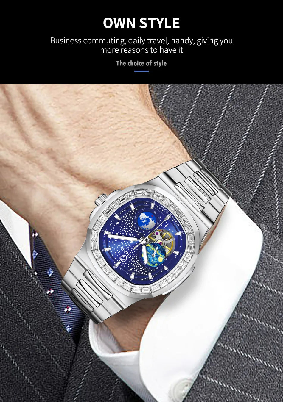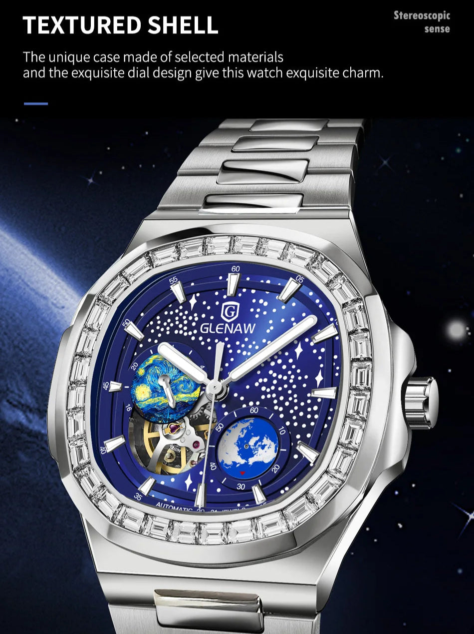 Made of a stainless steel strap and alloy casing that ensures durability and a stylish look, this watch is designed in a space theme. The dial is designed with a rotating earth and a starry sky pattern to look unique and attractive. A fabulous men's watch with water resistance, luminous hands and shock resistance. Buy now!