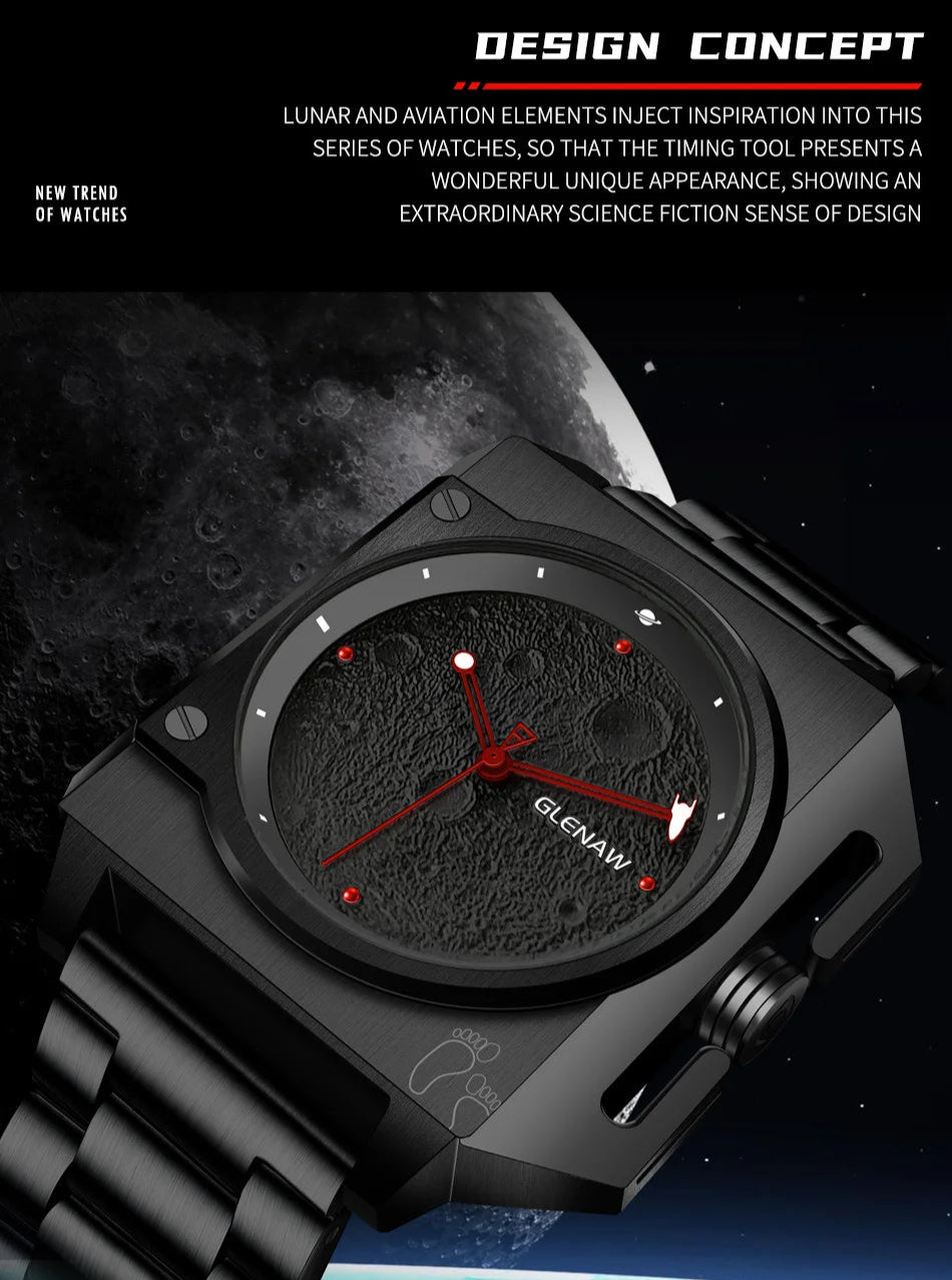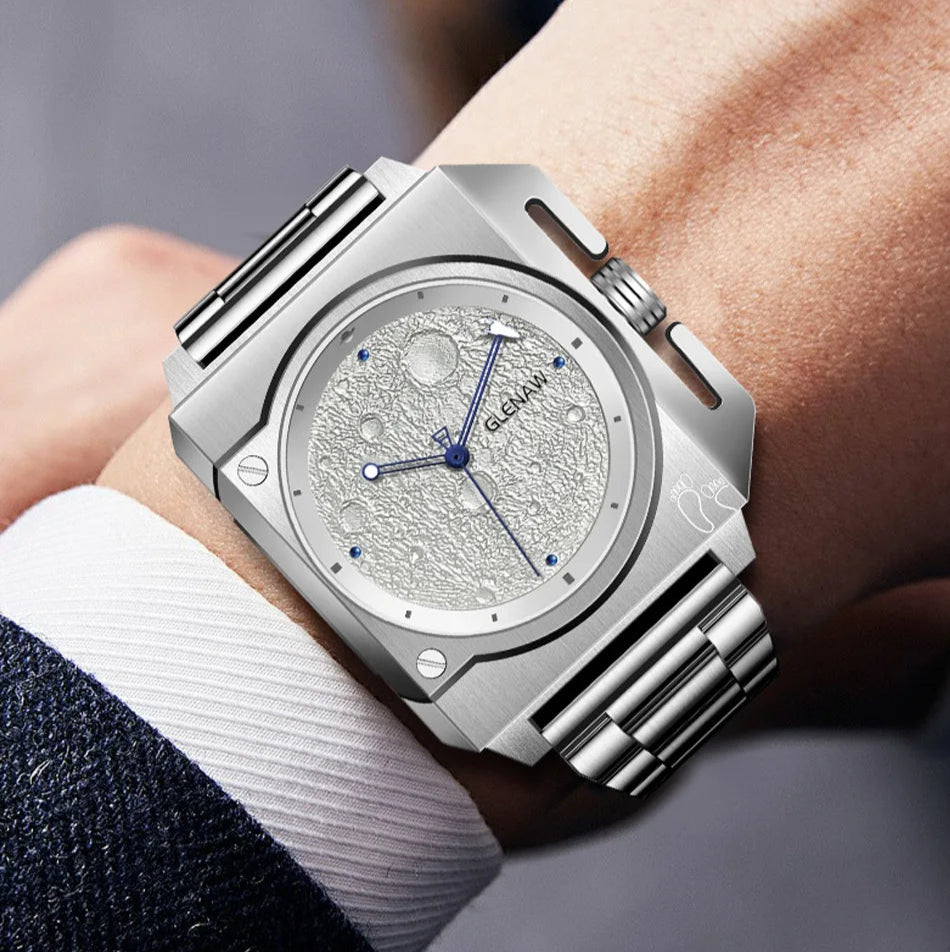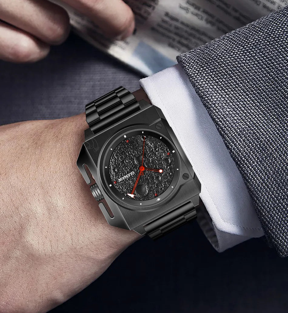 Stainless Steel Mechanical Moon Dial Luminous Spaceship Pointer Watch For Men