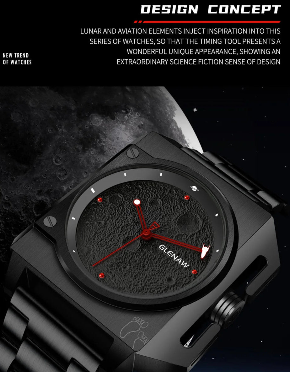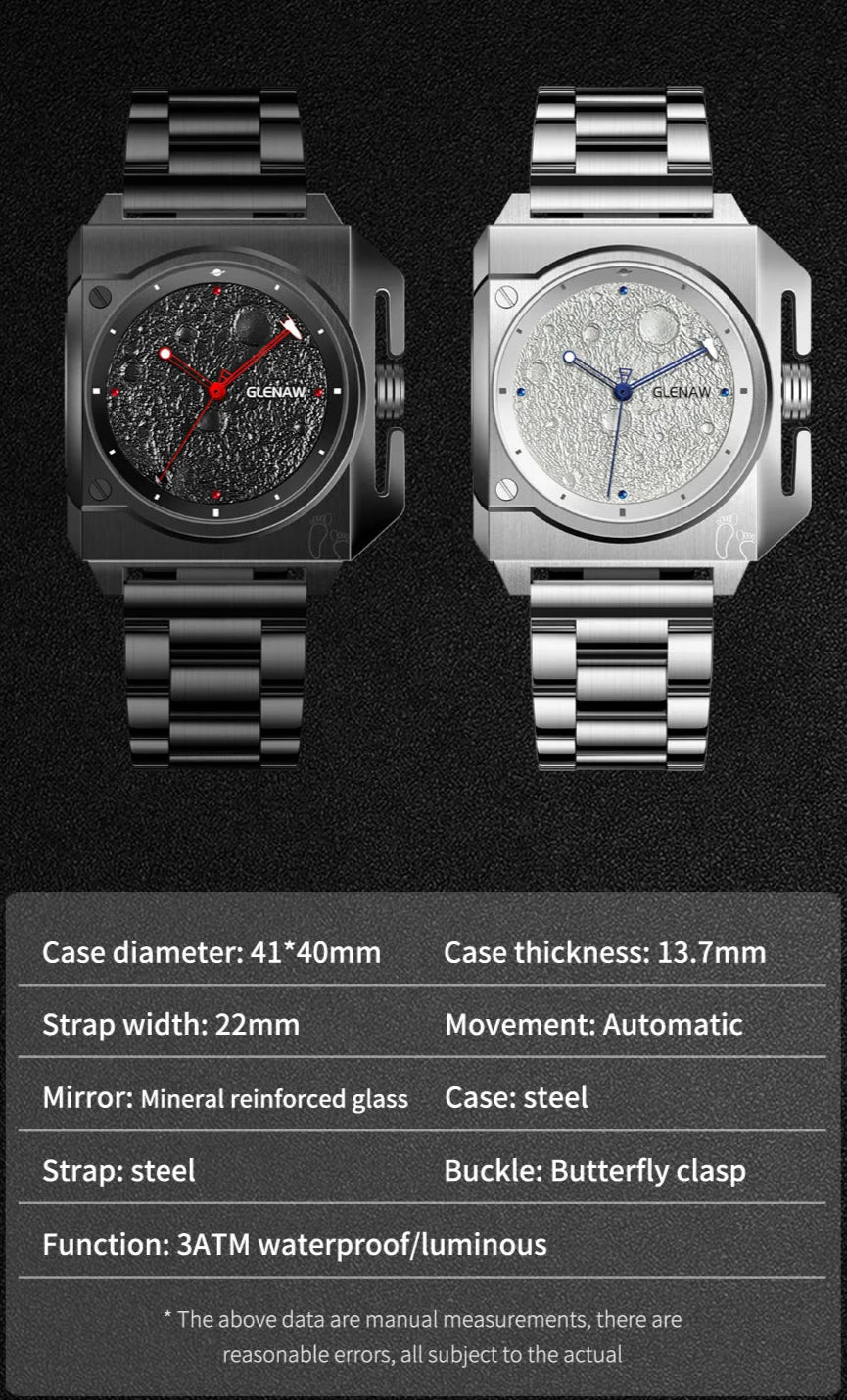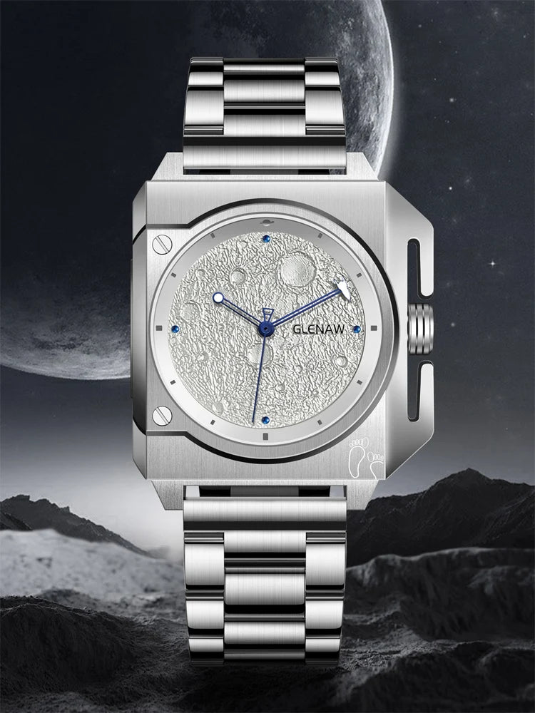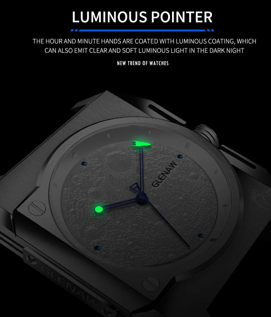 Unique Spaceship Pointer Moon Texture Dial Luminous Mechanical Watch For Men