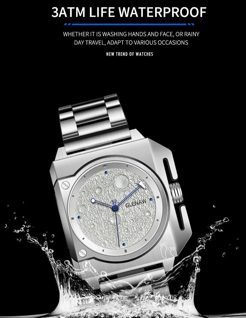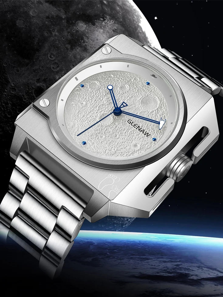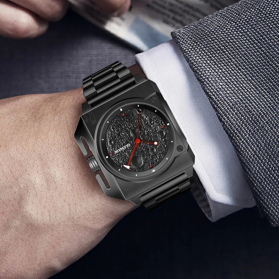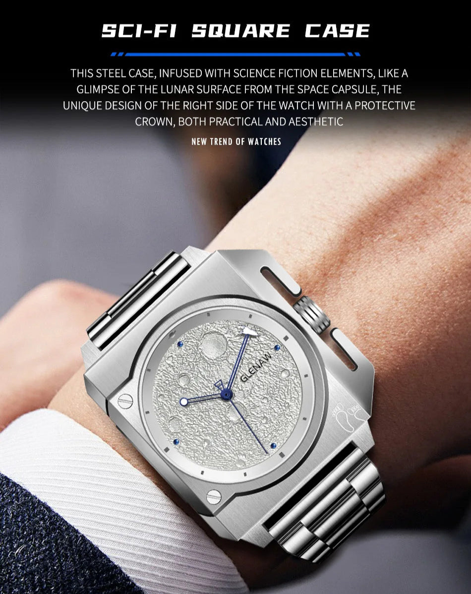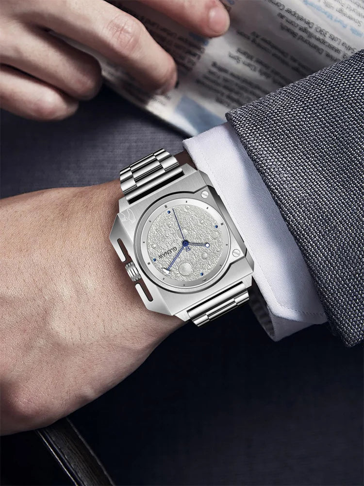 Unique Spaceship Pointer Moon Texture Dial Luminous Mechanical Watch For Men