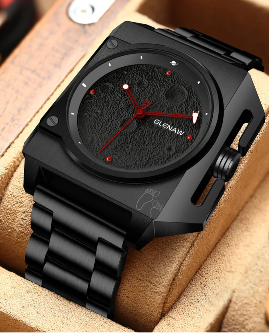 For the space-theme lovers, this men's watch is a great go. The stainless steel strap and casing make it comfortable to wear for long hours. Featuring a moon-textured dial and spaceship pointer, this watch is created in a lunar space theme to excite fashion lovers. Its versatile design makes it a must-have addition to your watch collection.