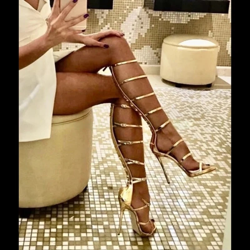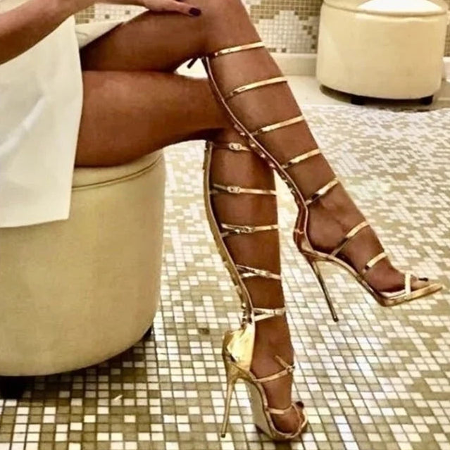 Ladies Golden Open-toe Stiletto High Heels Cover Heel Pumps