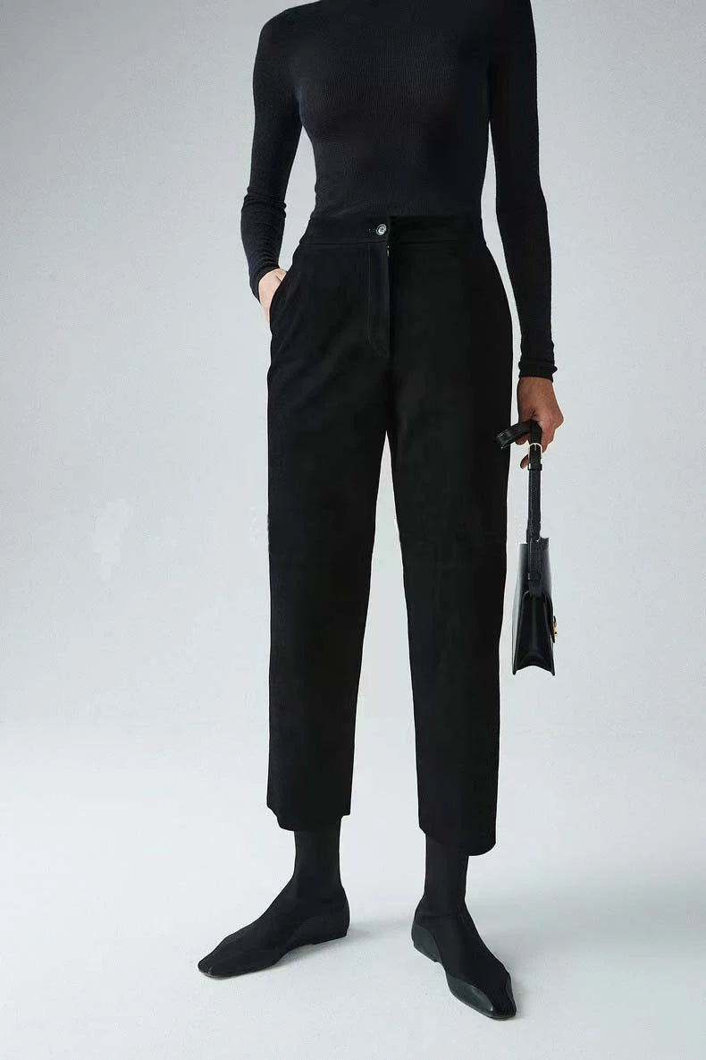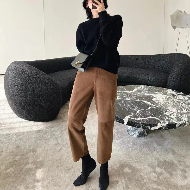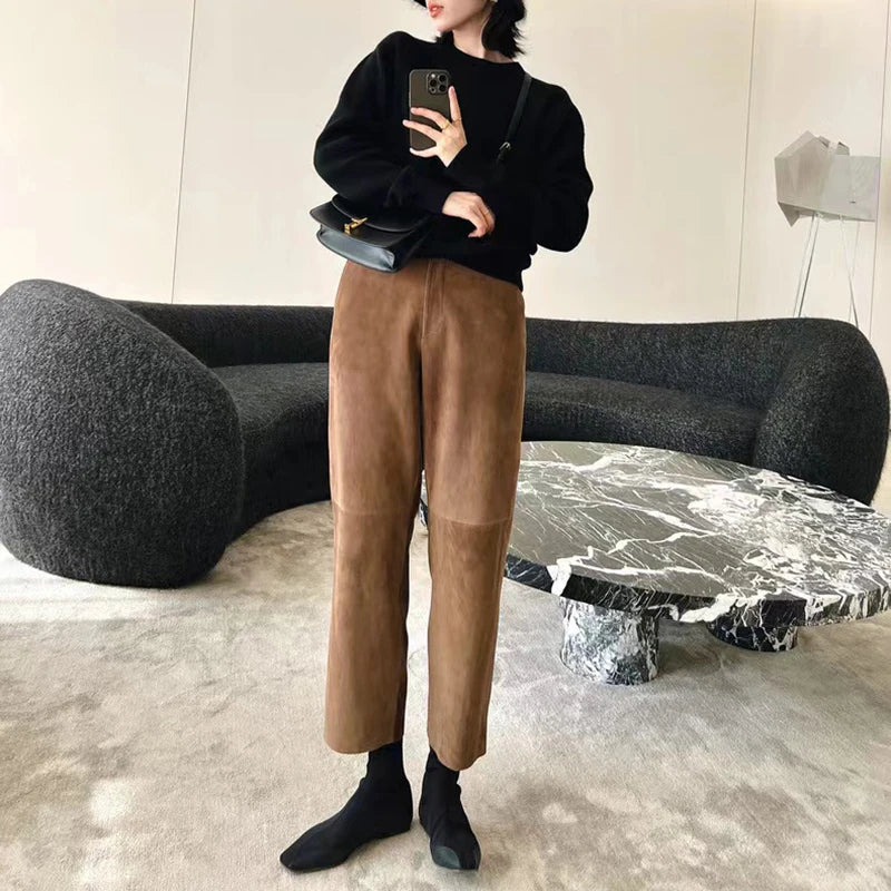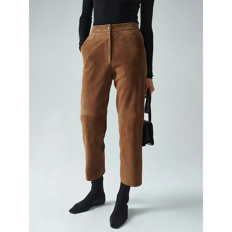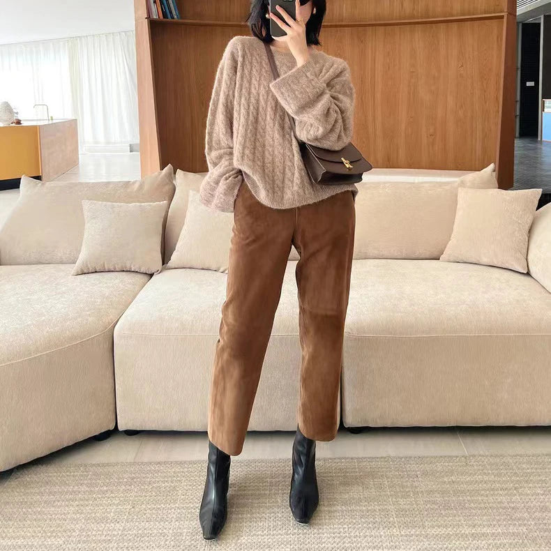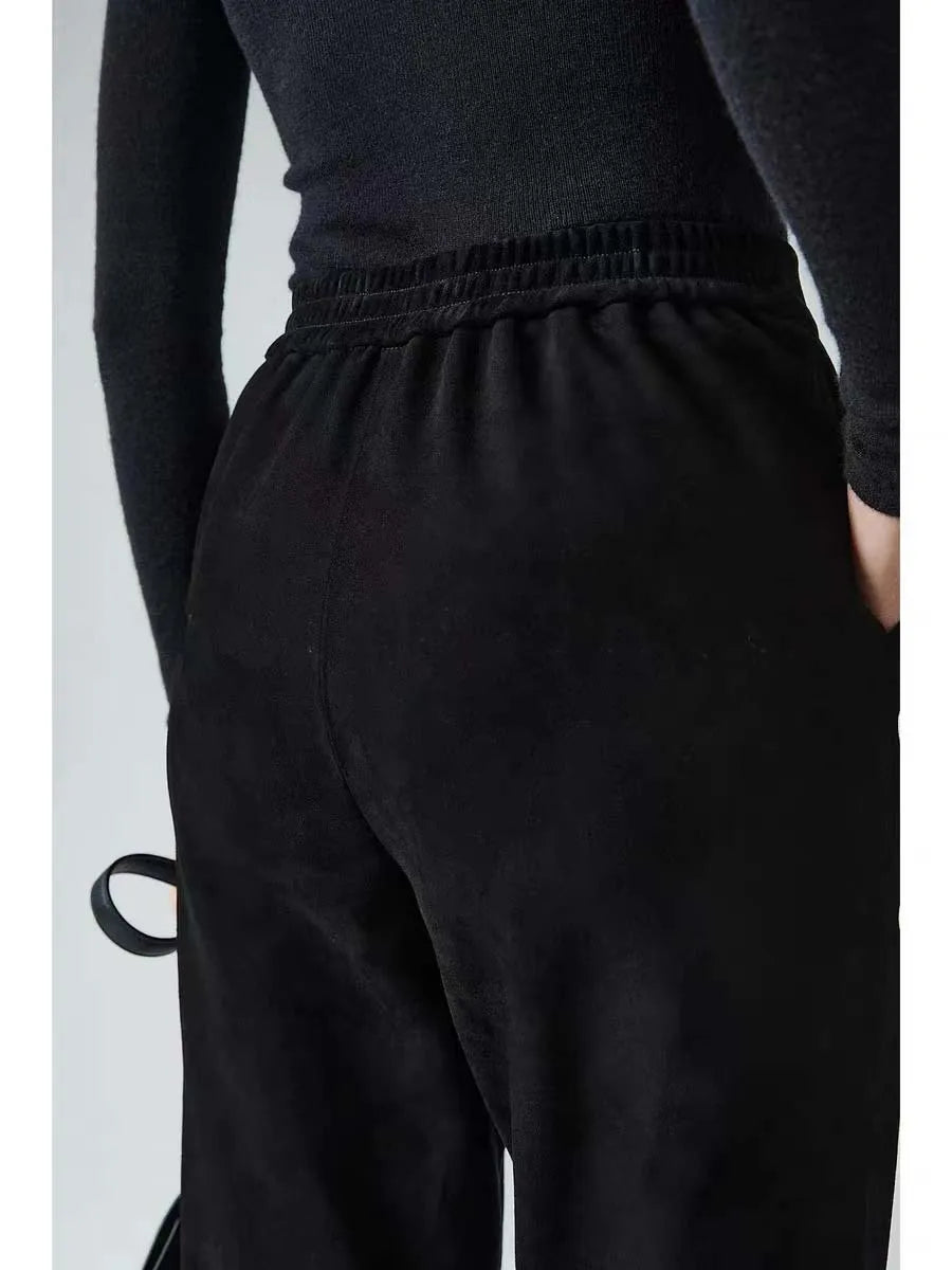 Autumn Winter Women's High Waist Loose Casual Sheepskin Suede Ankle-Length Trousers