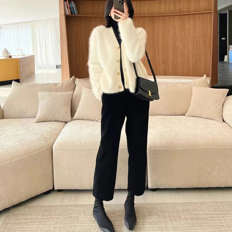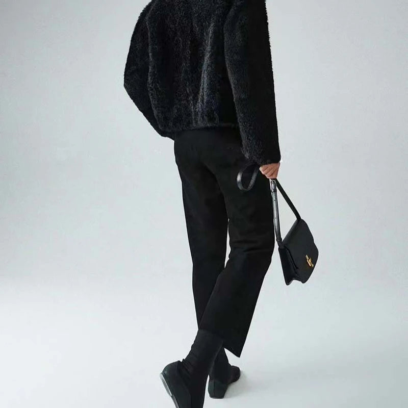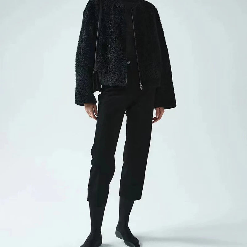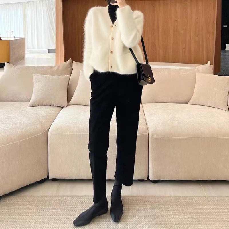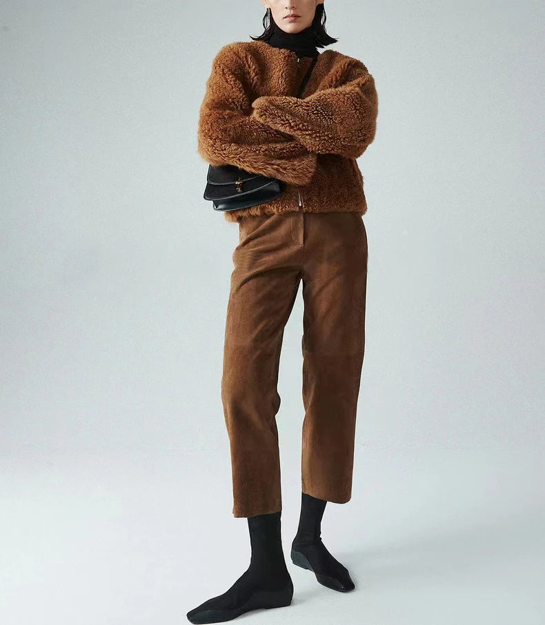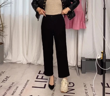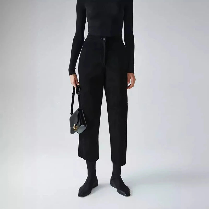 Autumn Winter Women's High Waist Loose Casual Sheepskin Suede Ankle-Length Trousers