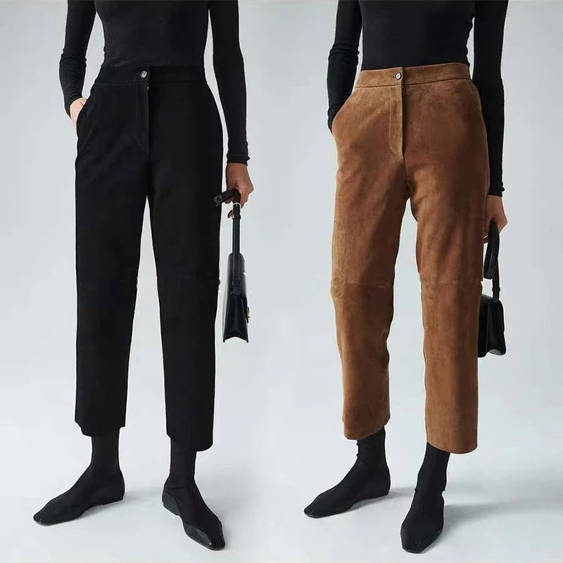 These elegant and stylish women's pants are a must-have in your wardrobe. The sheepskin suede material keeps you cool and comfortable. Designed with a loose fit, ankle-length and high waistline, it will elevate your style. Don't miss it!