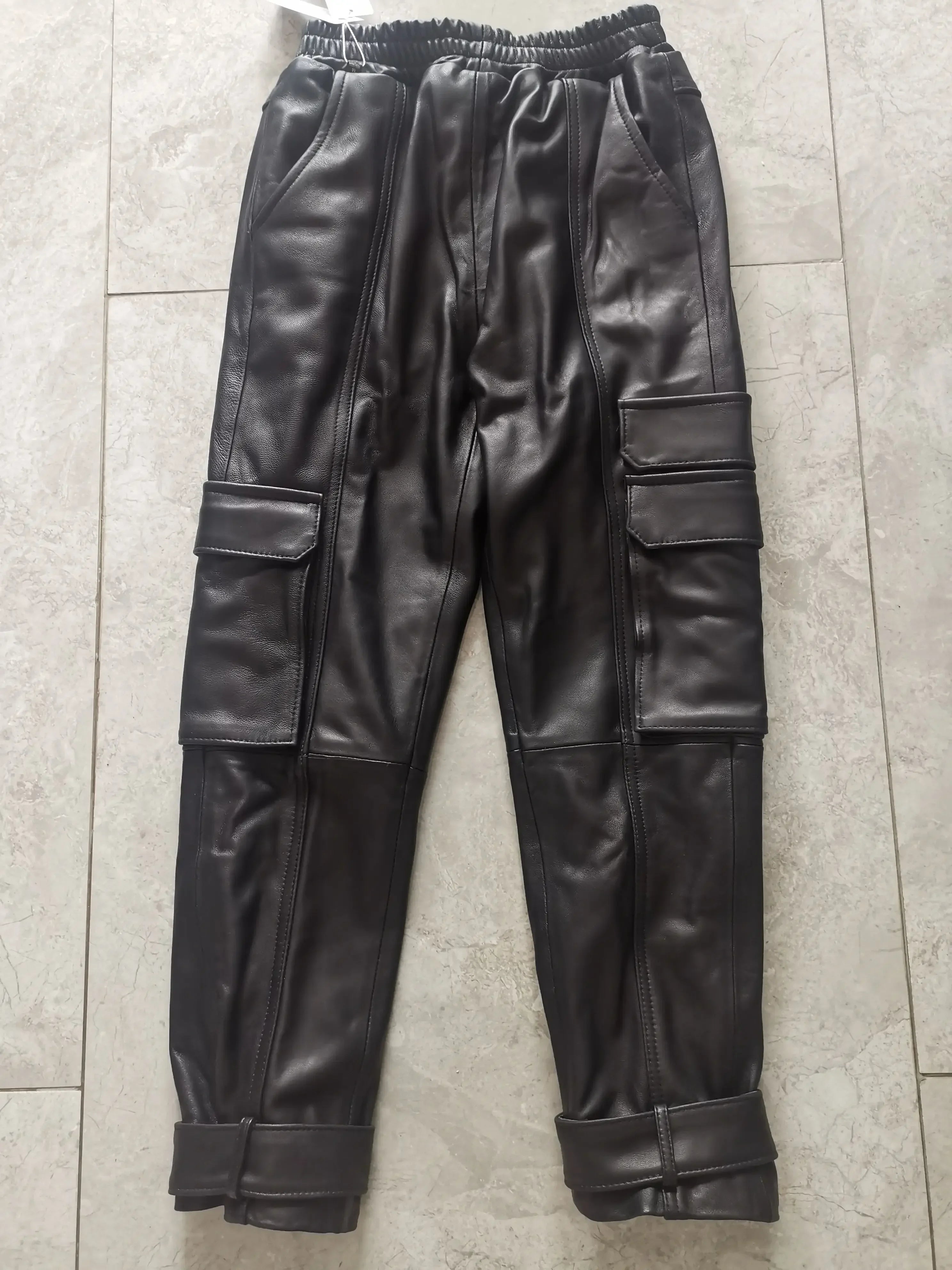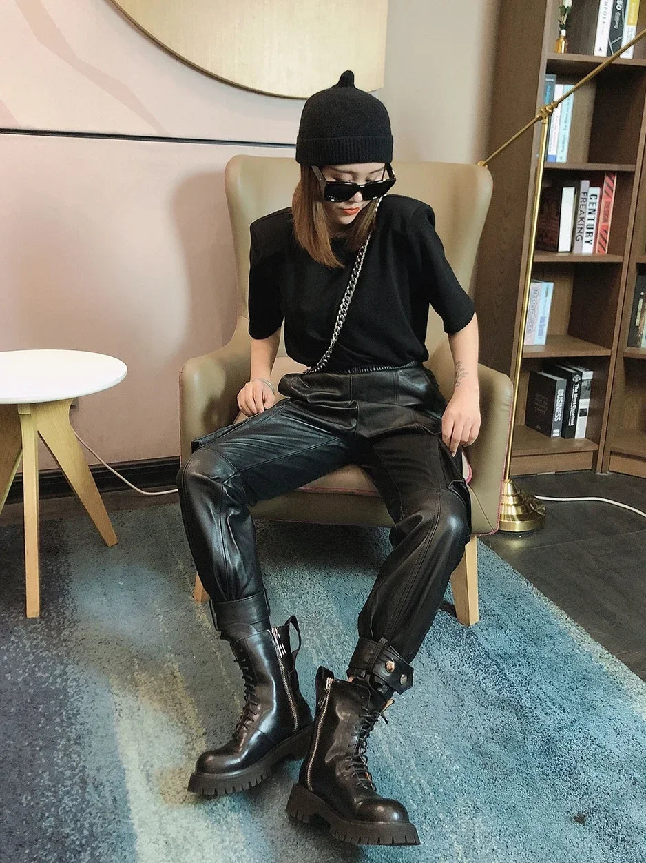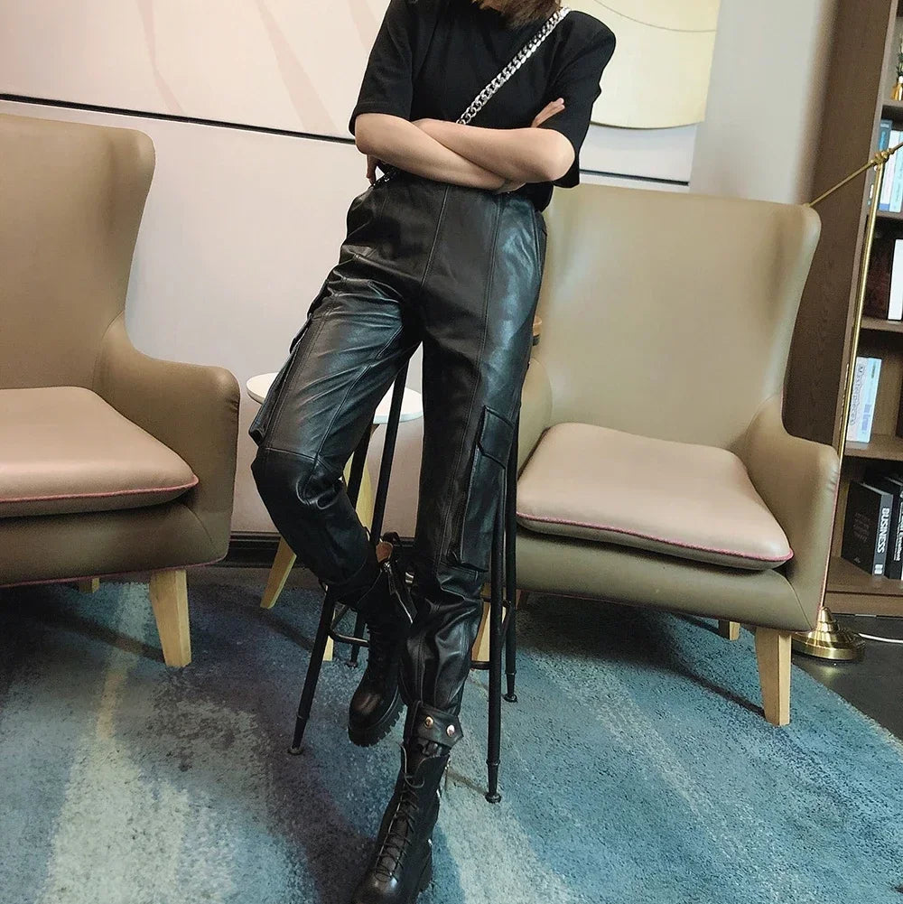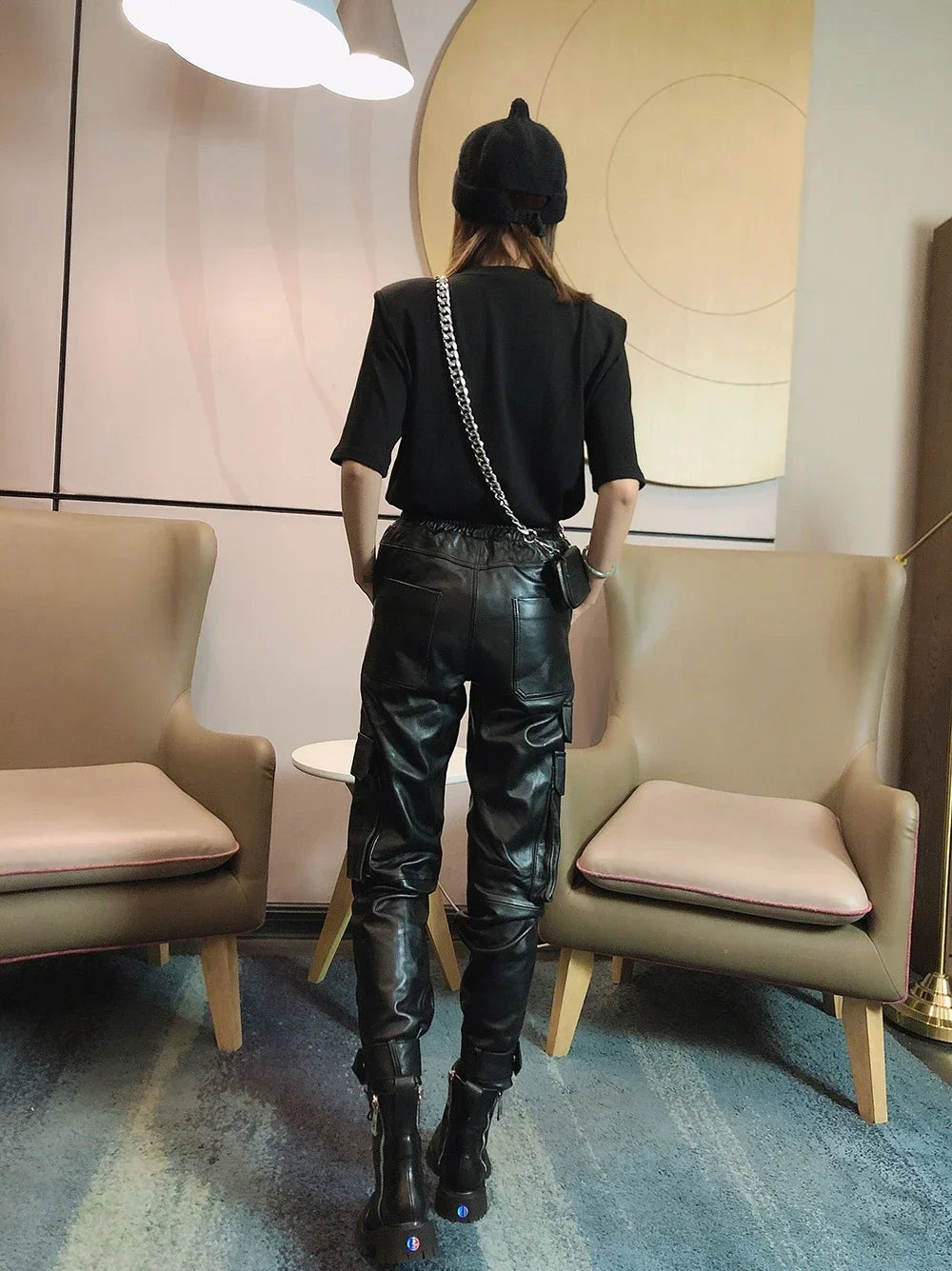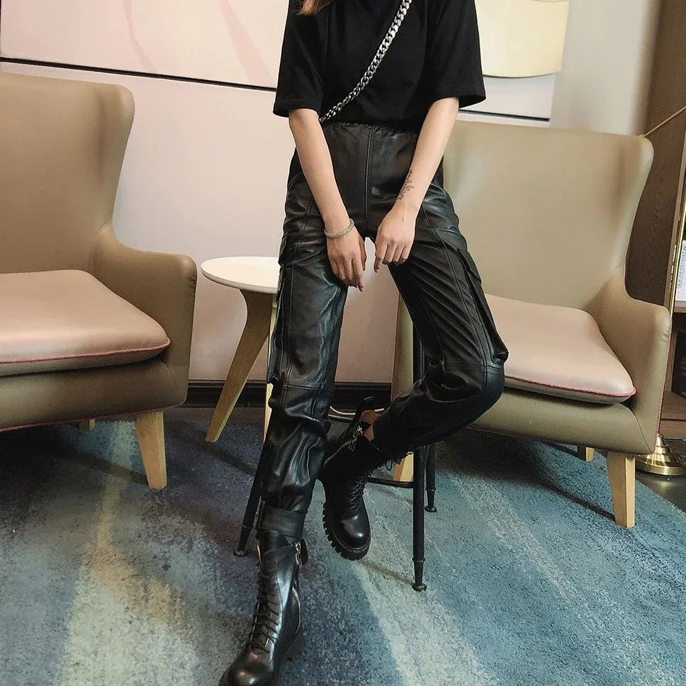 Spring Autumn Streetwear Style Genuine Leather Women's Pants