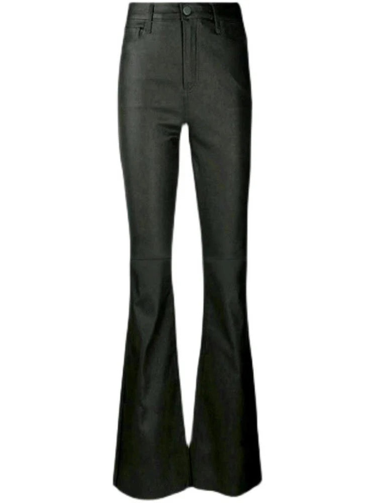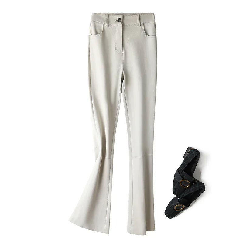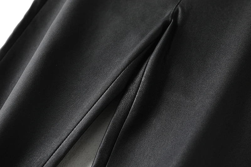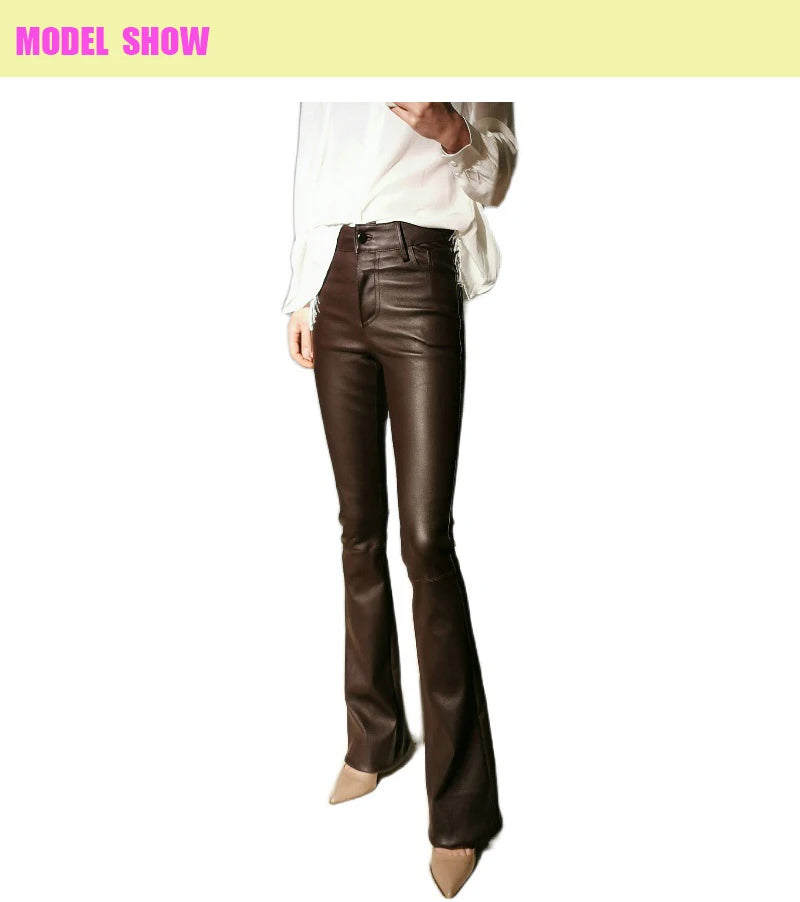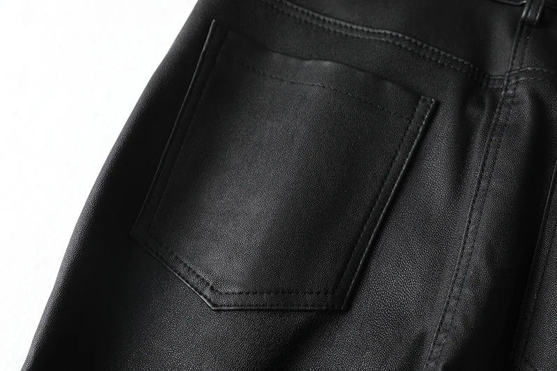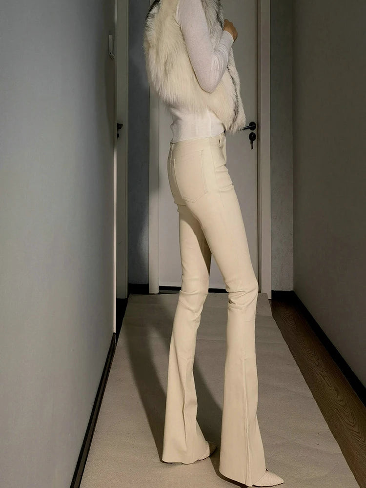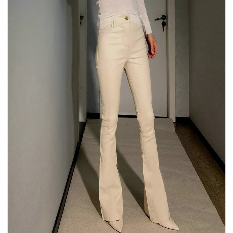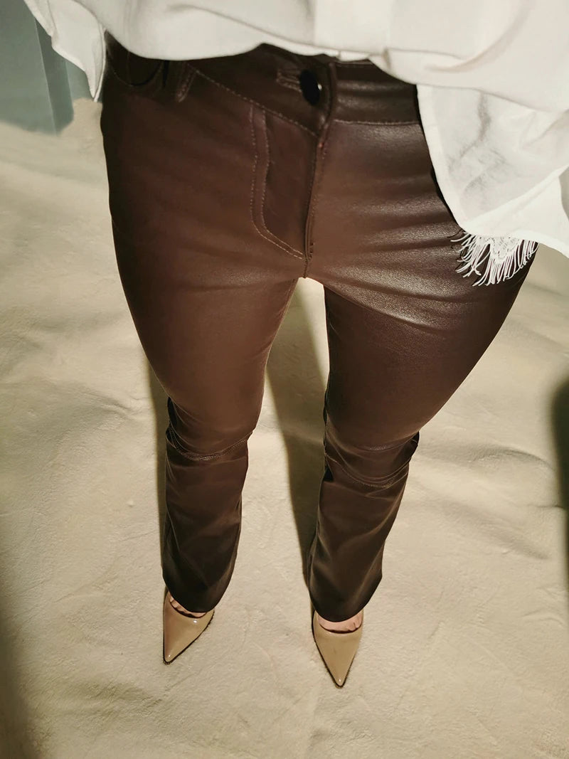 Women's Autumn Winter Mid Waist Skinny Flared Stretch Leather Pants