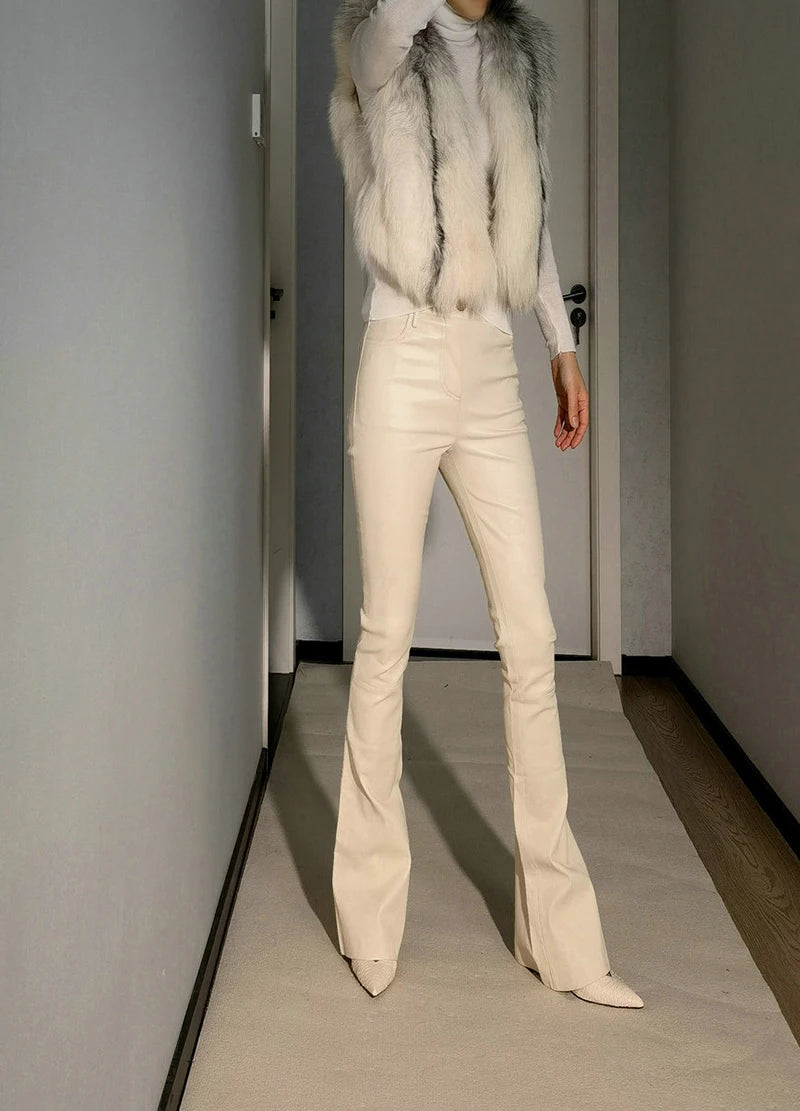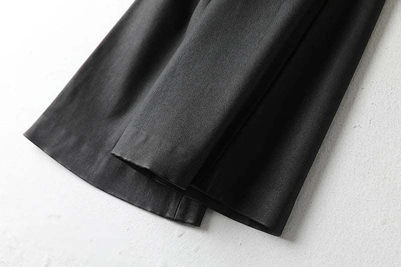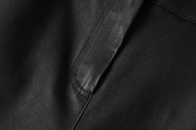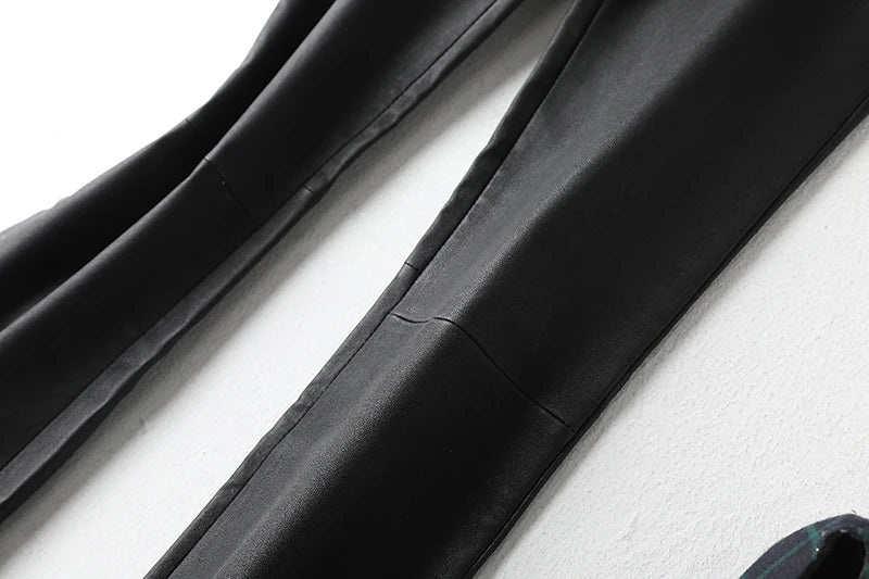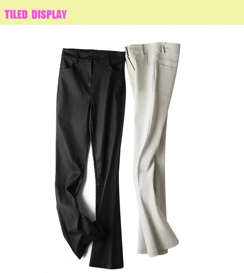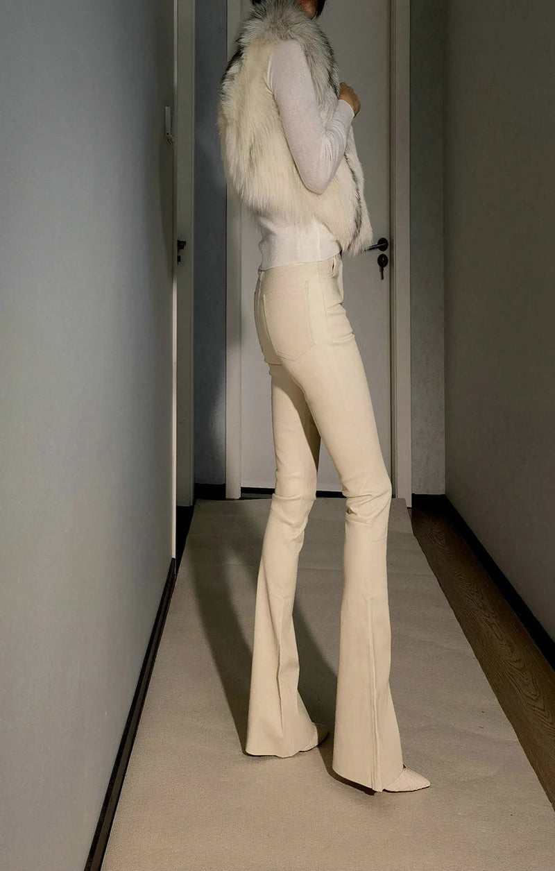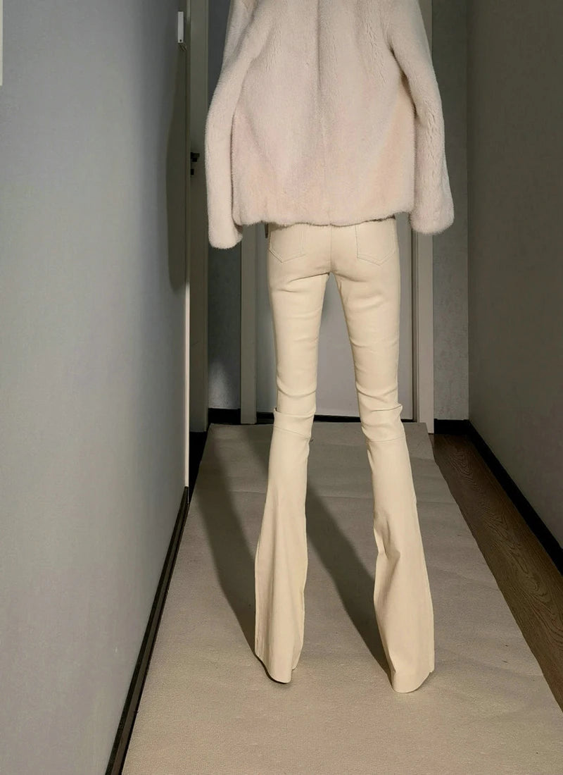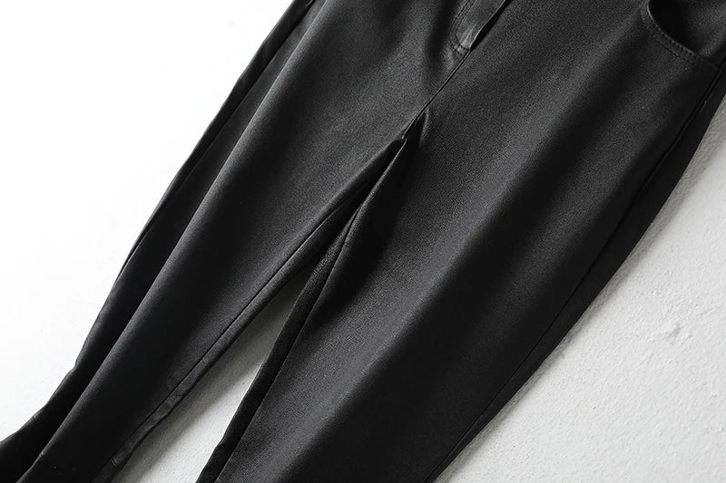 Women's Autumn Winter Mid Waist Skinny Flared Stretch Leather Pants