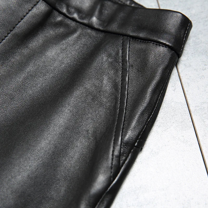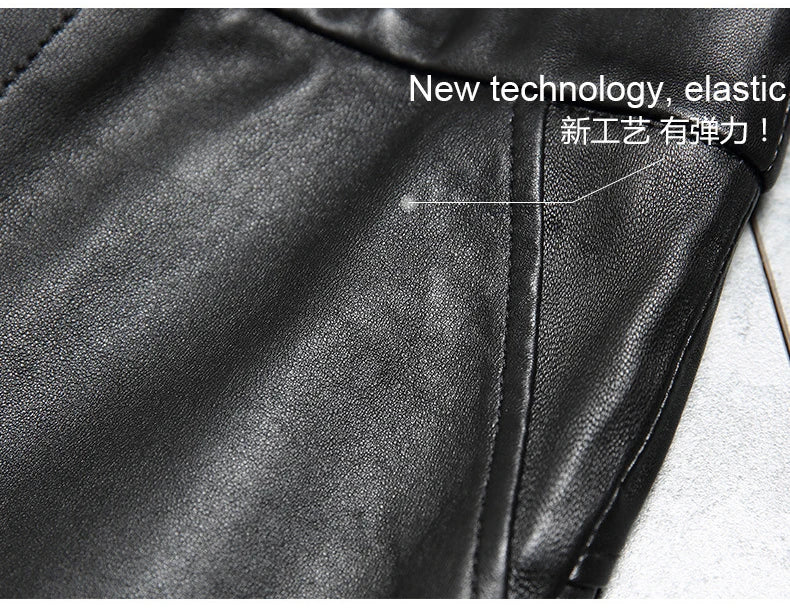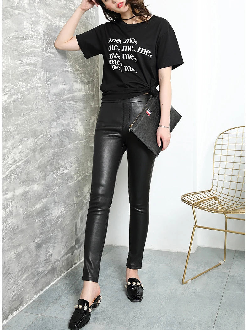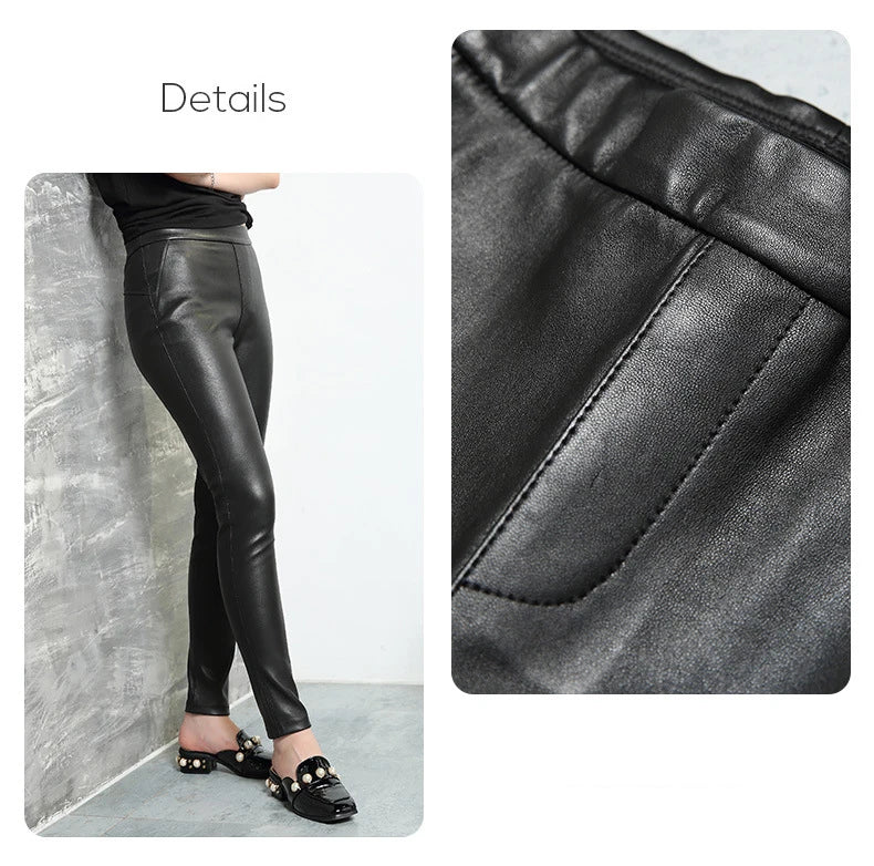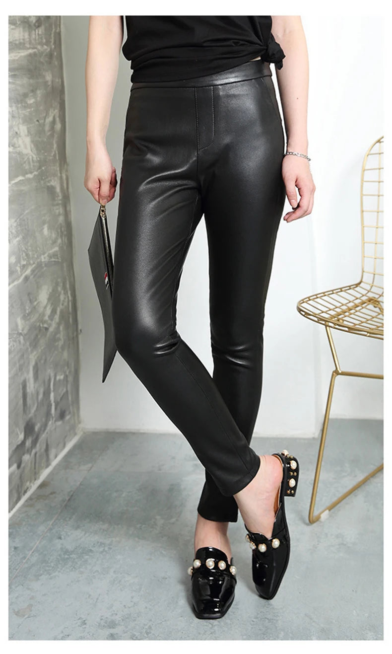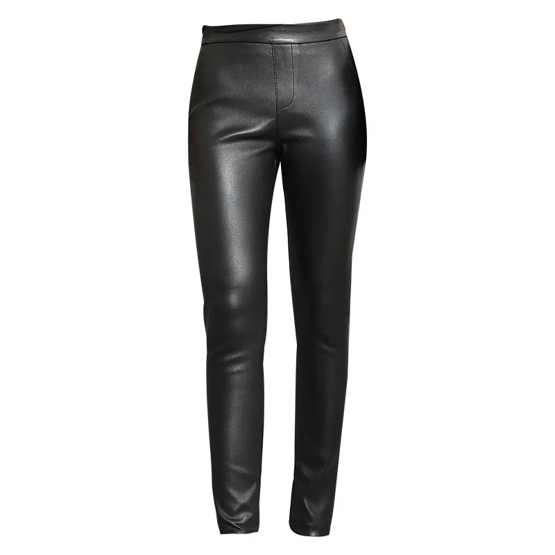 Women's Classic High Waist Tight-Fitting Stretch Sheepskin Skinny Trousers