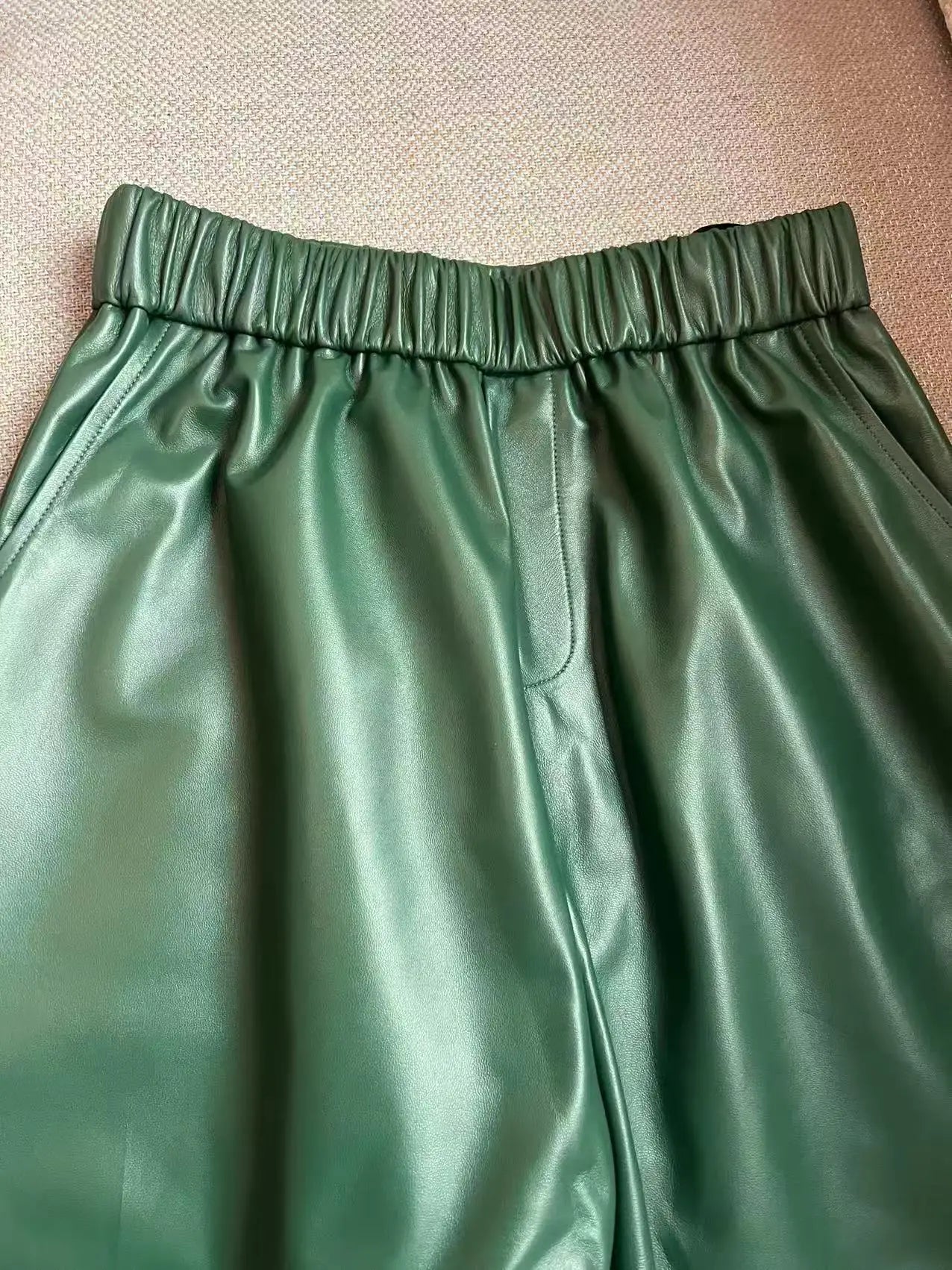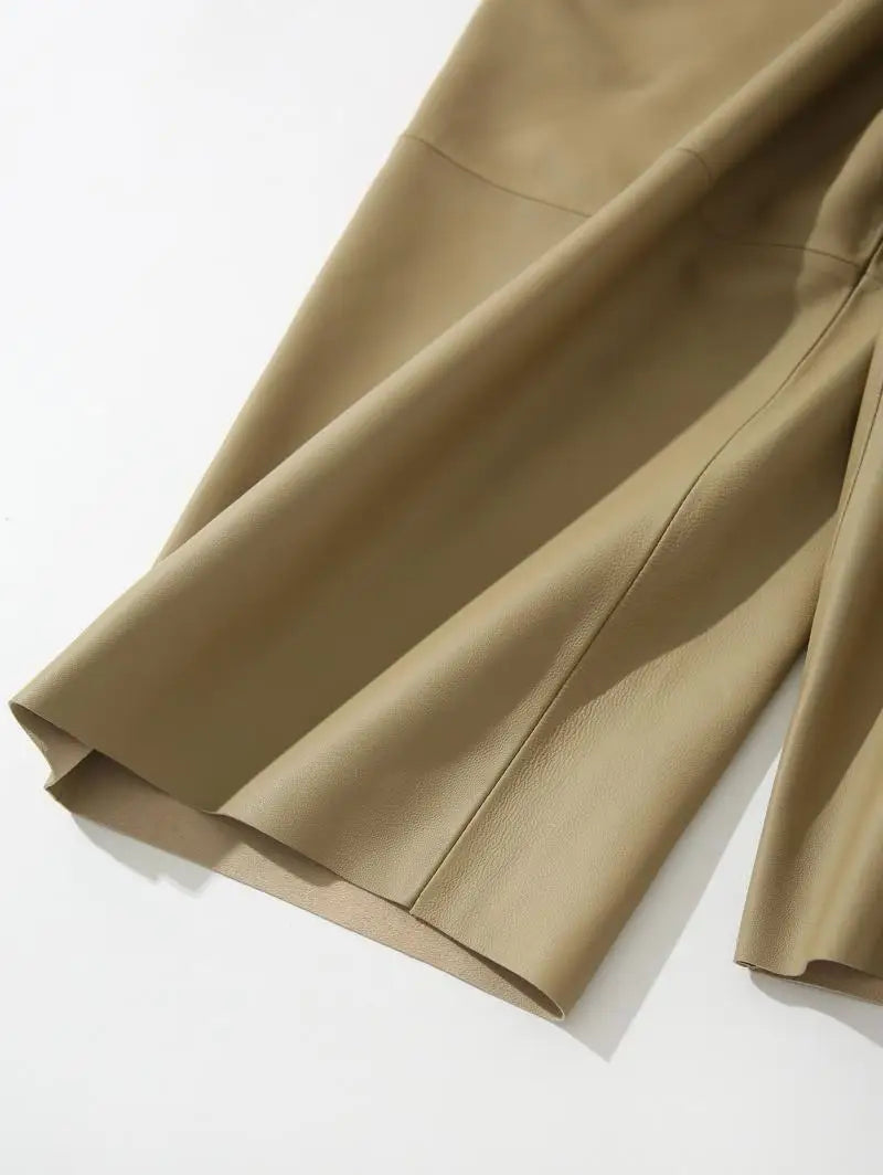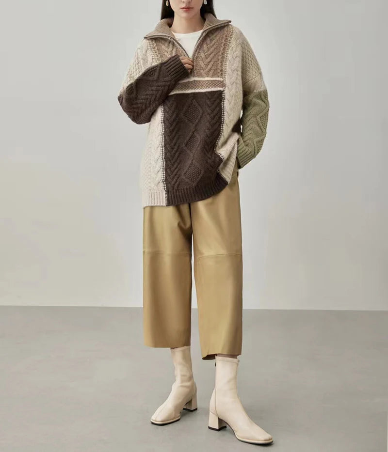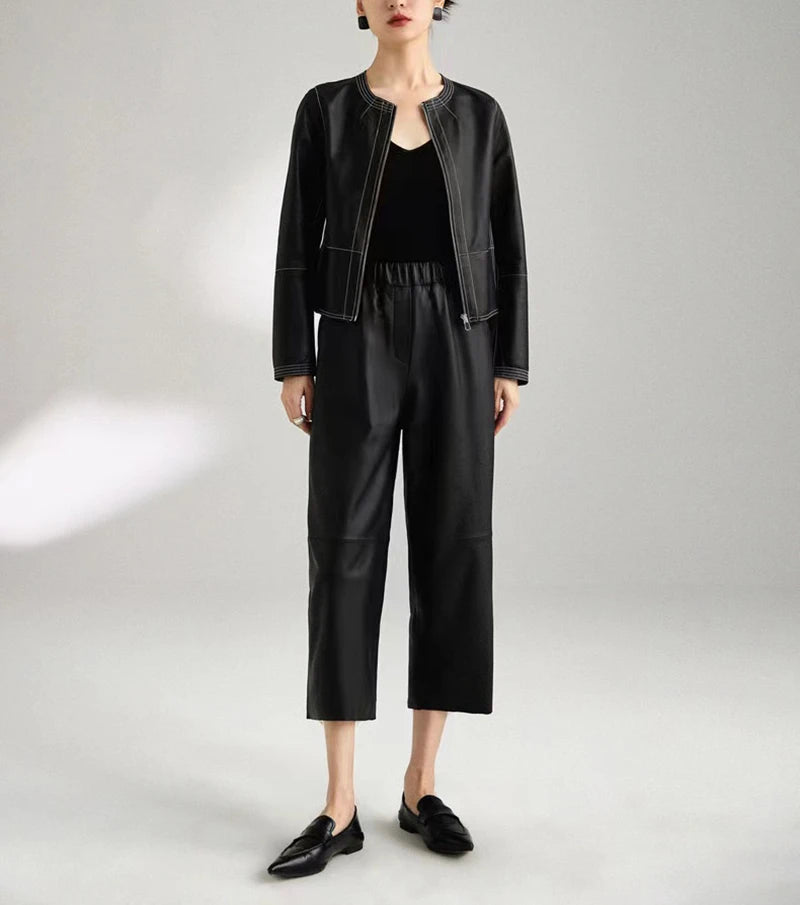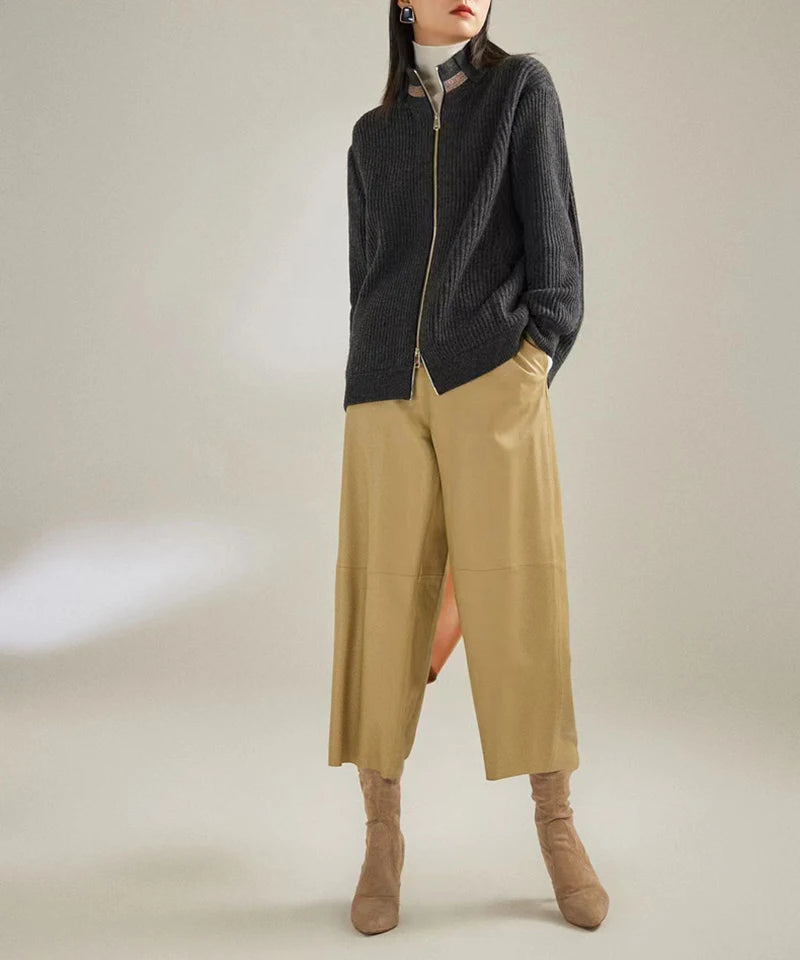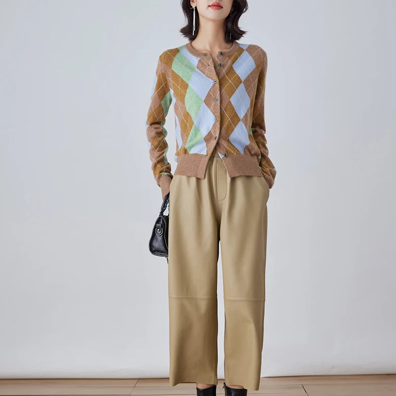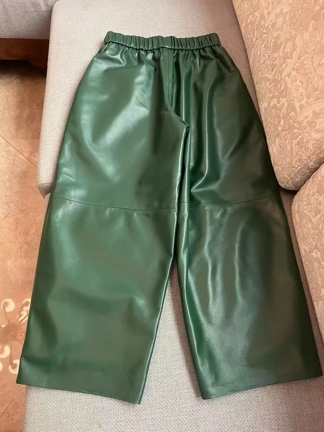 Women's Elastic Waist Sheepskin Wide Leg Harem Ankle Style Cropped Grandma Pants