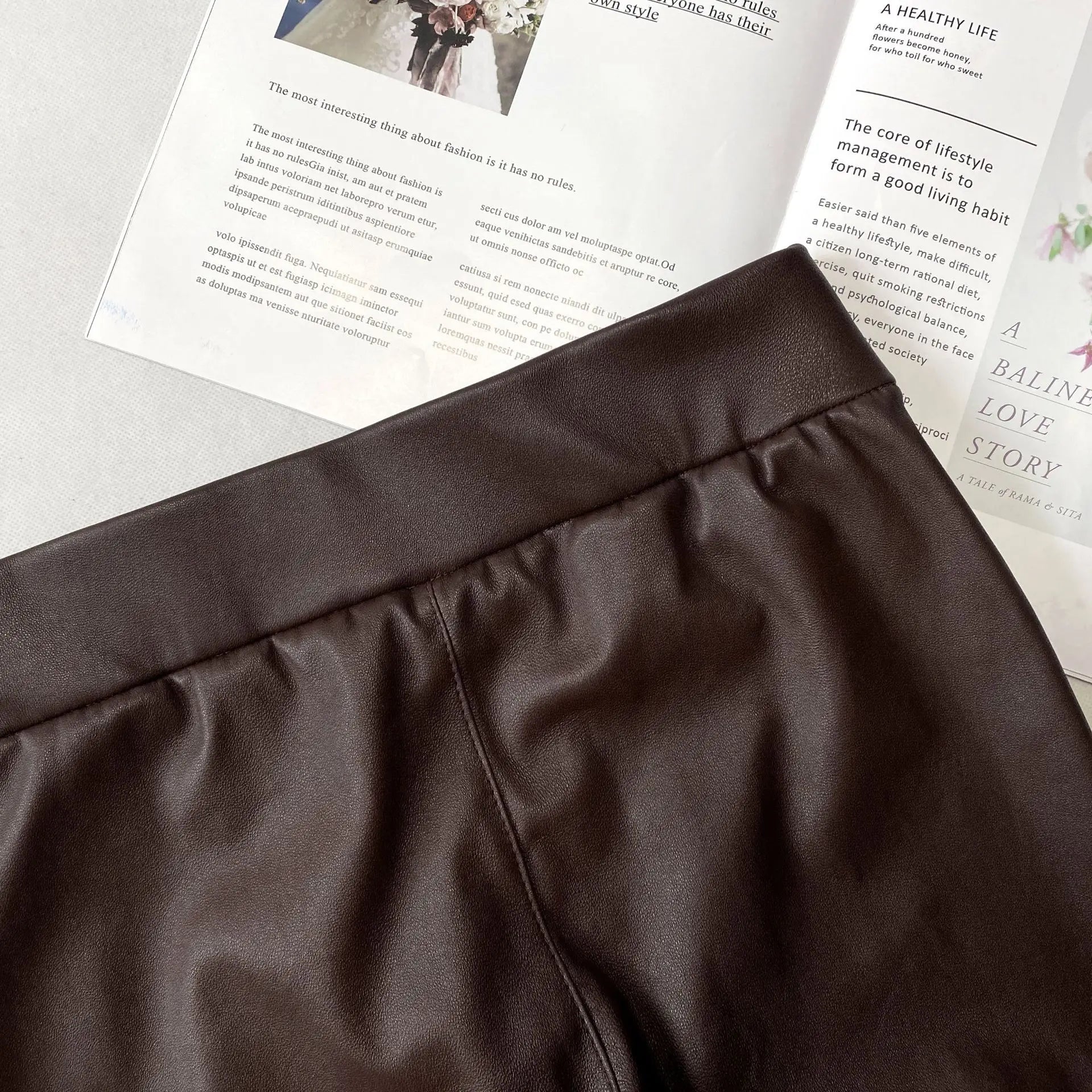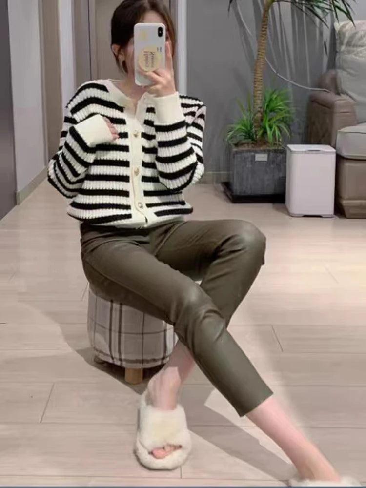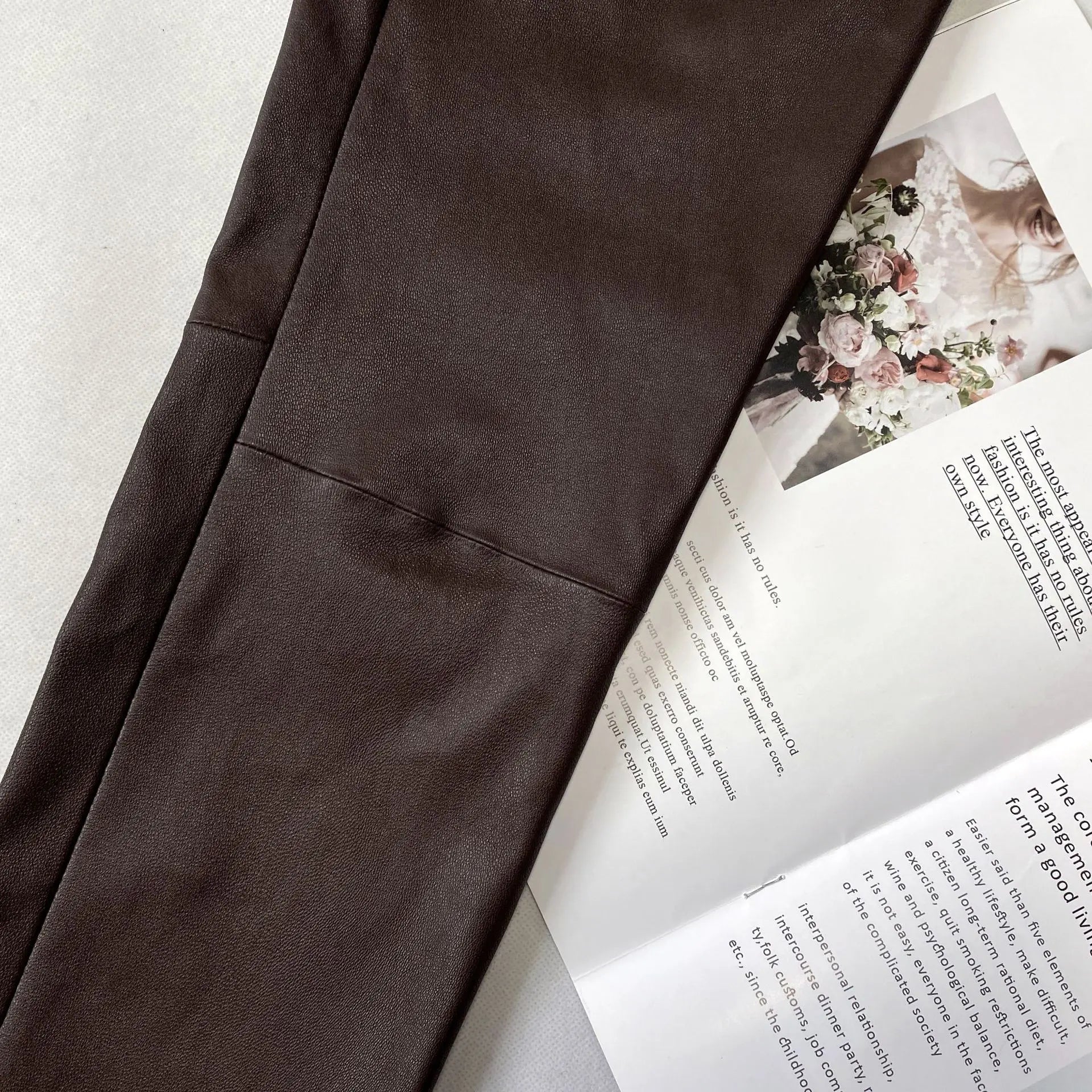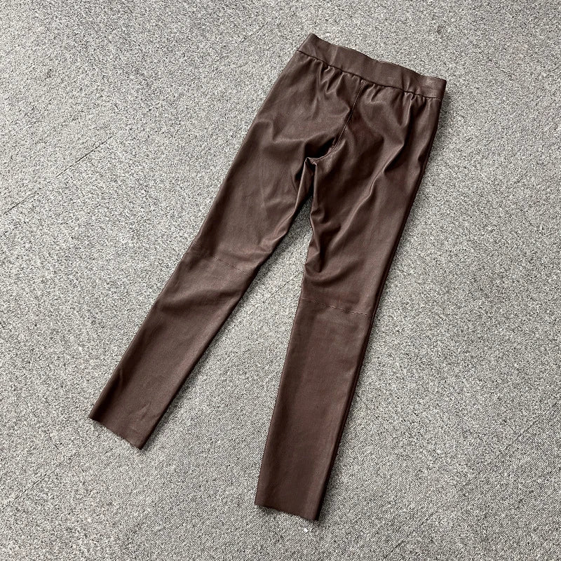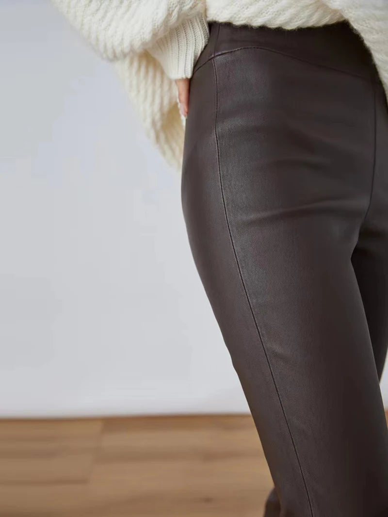 Women's Genuine Sheepskin Leather Simple Casual Elastic Waist Skinny Pants