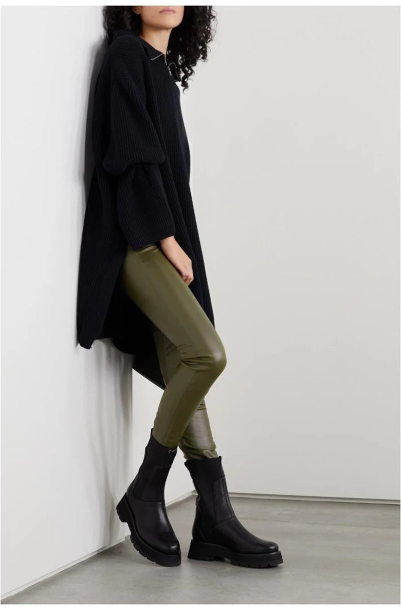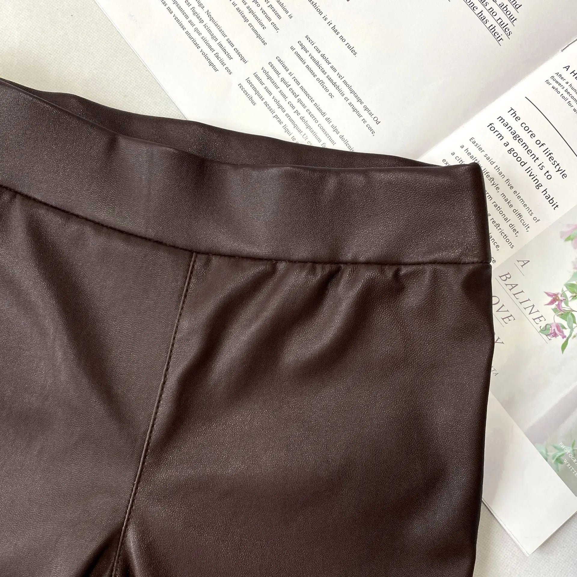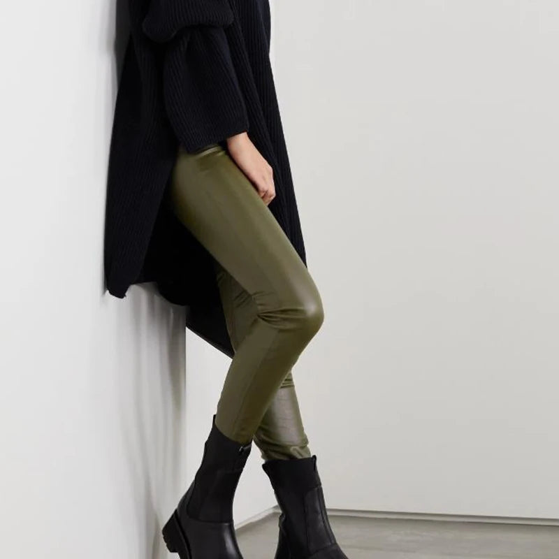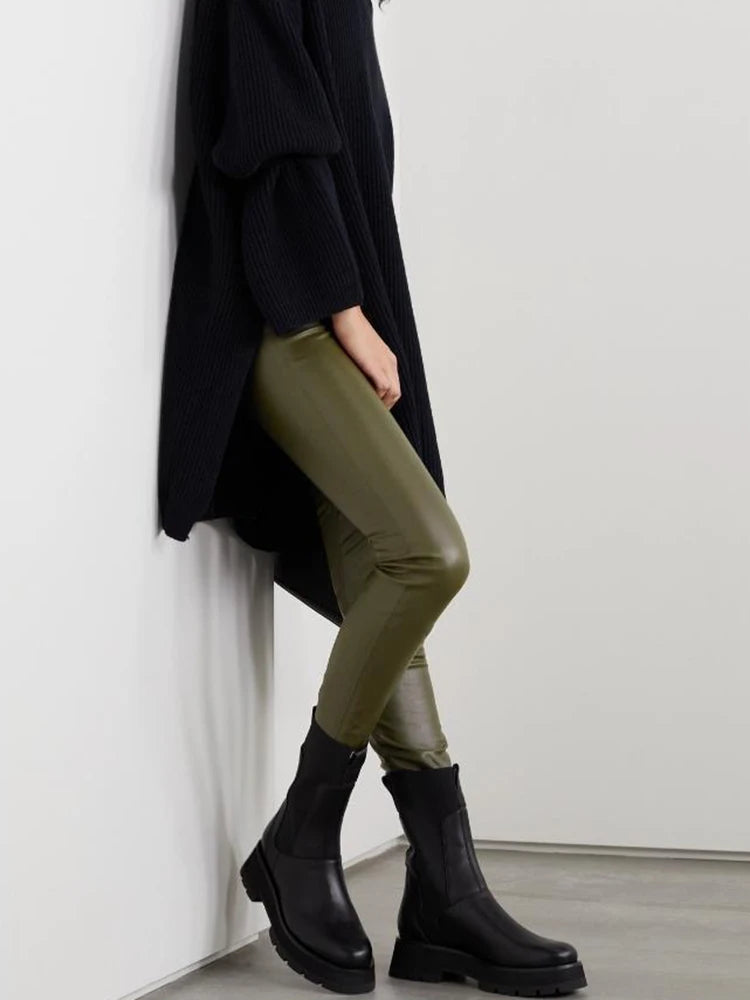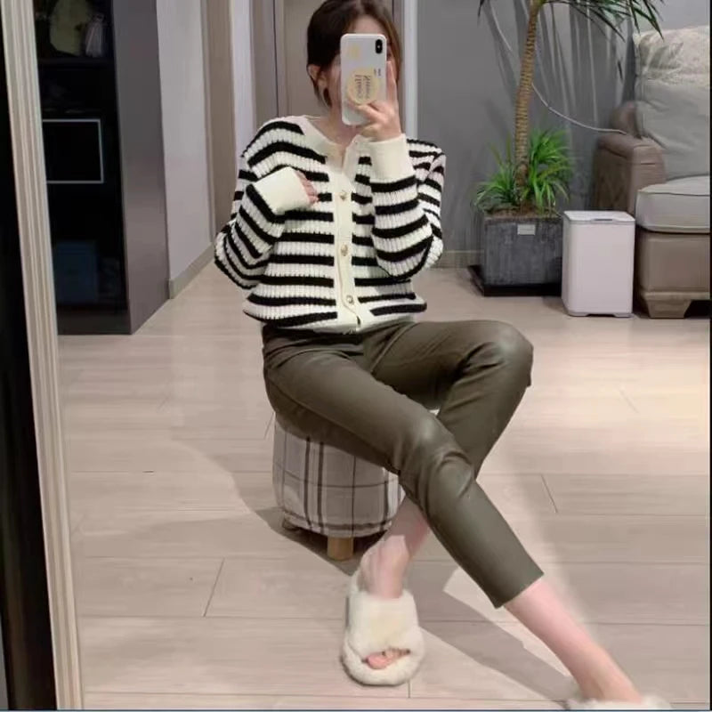 Women's Genuine Sheepskin Leather Simple Casual Elastic Waist Skinny Pants