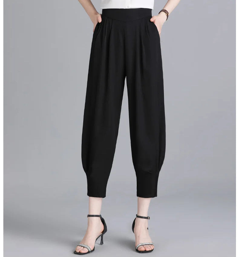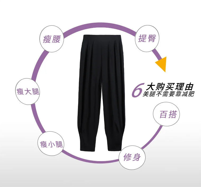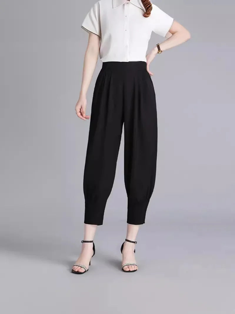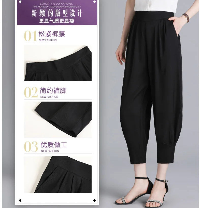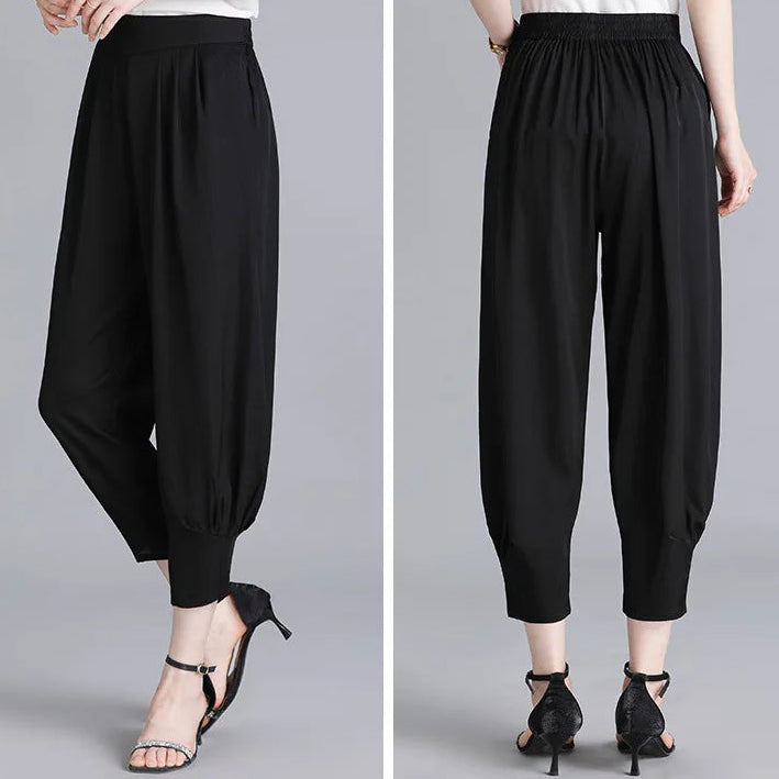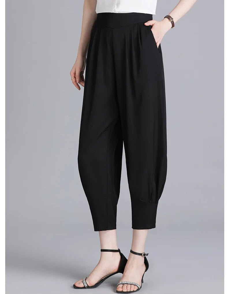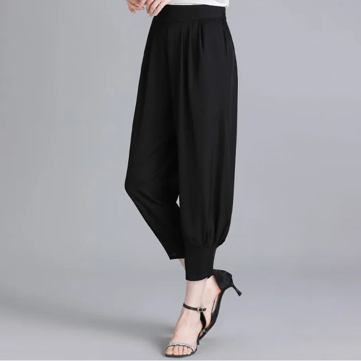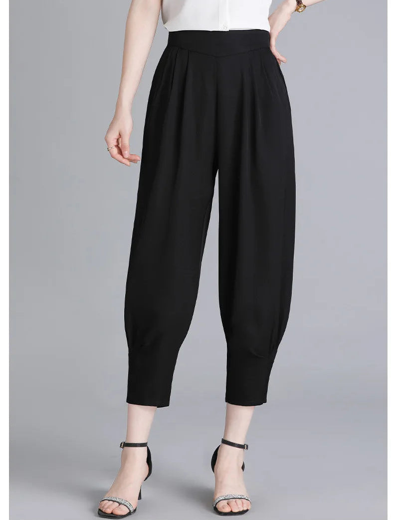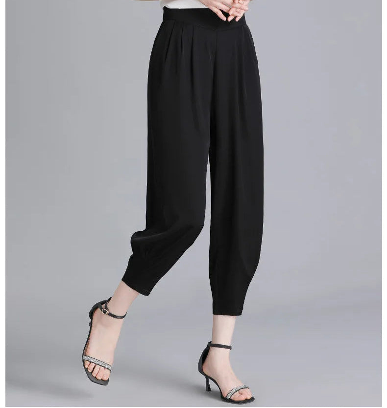 Women's High-Waisted 91% Mulberry Silk Harem Pants for Summer