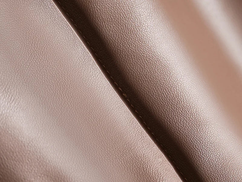 Looking for aesthetic and classy women's pants? Then these straight trousers are for you. Made of sheepskin leather, it is durable and features straight legs and a slight stretch. The solid color finish creates a fashionable and neat look. Get your's now!