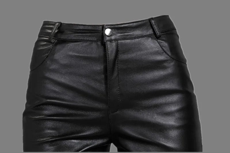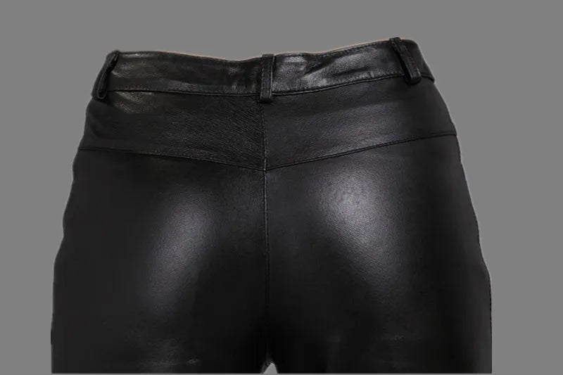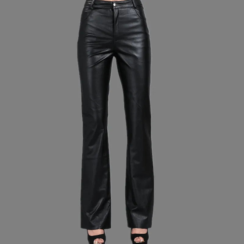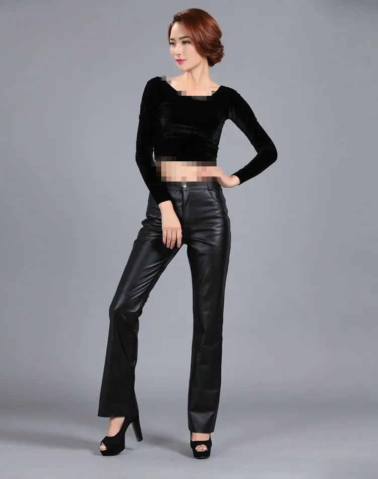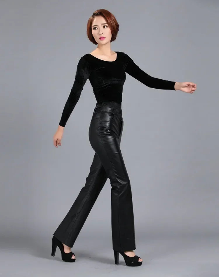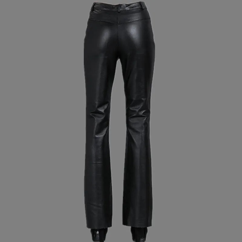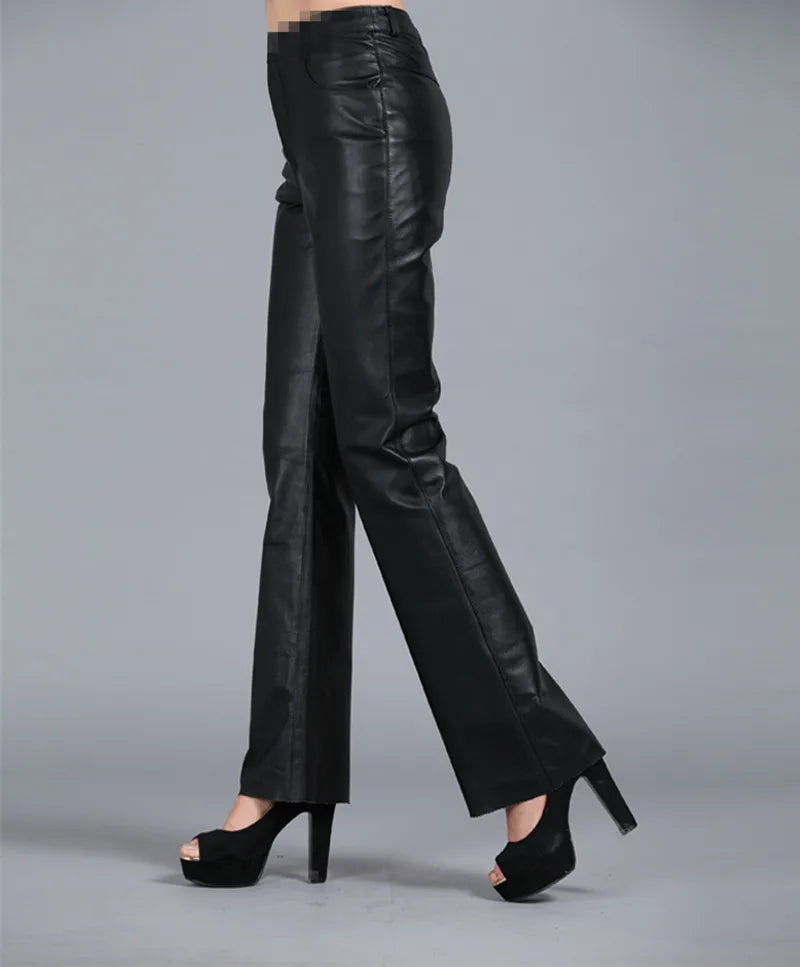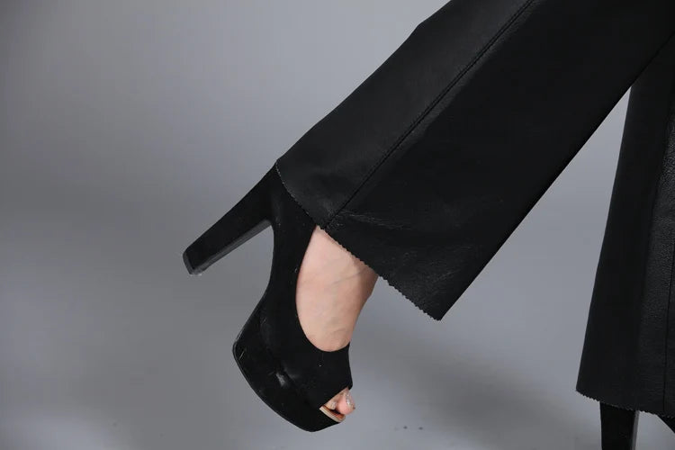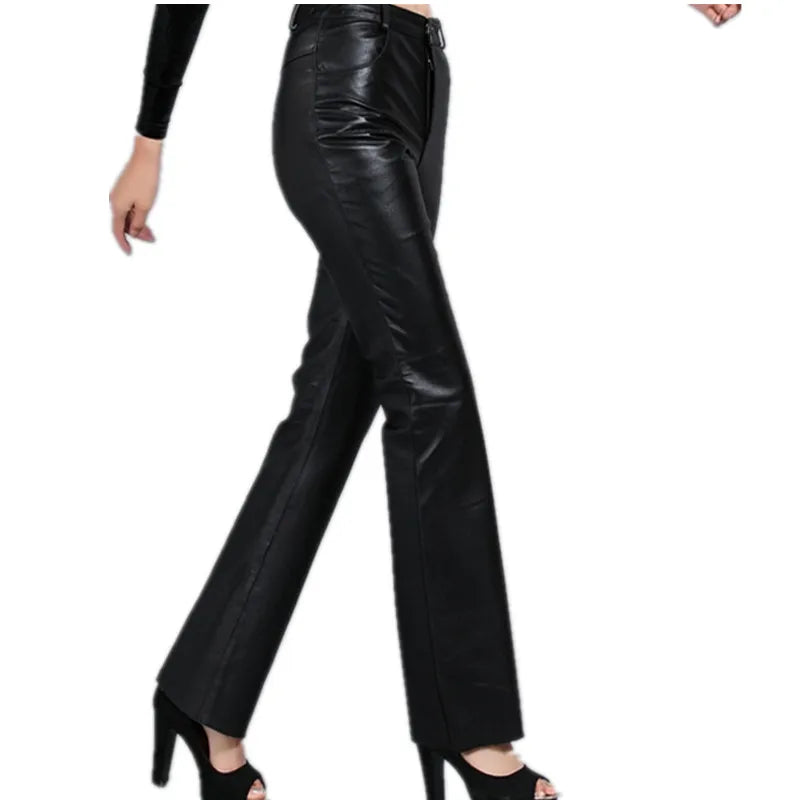 Women's Spring Autumn Flared Casual Sheepskin Leather Pants