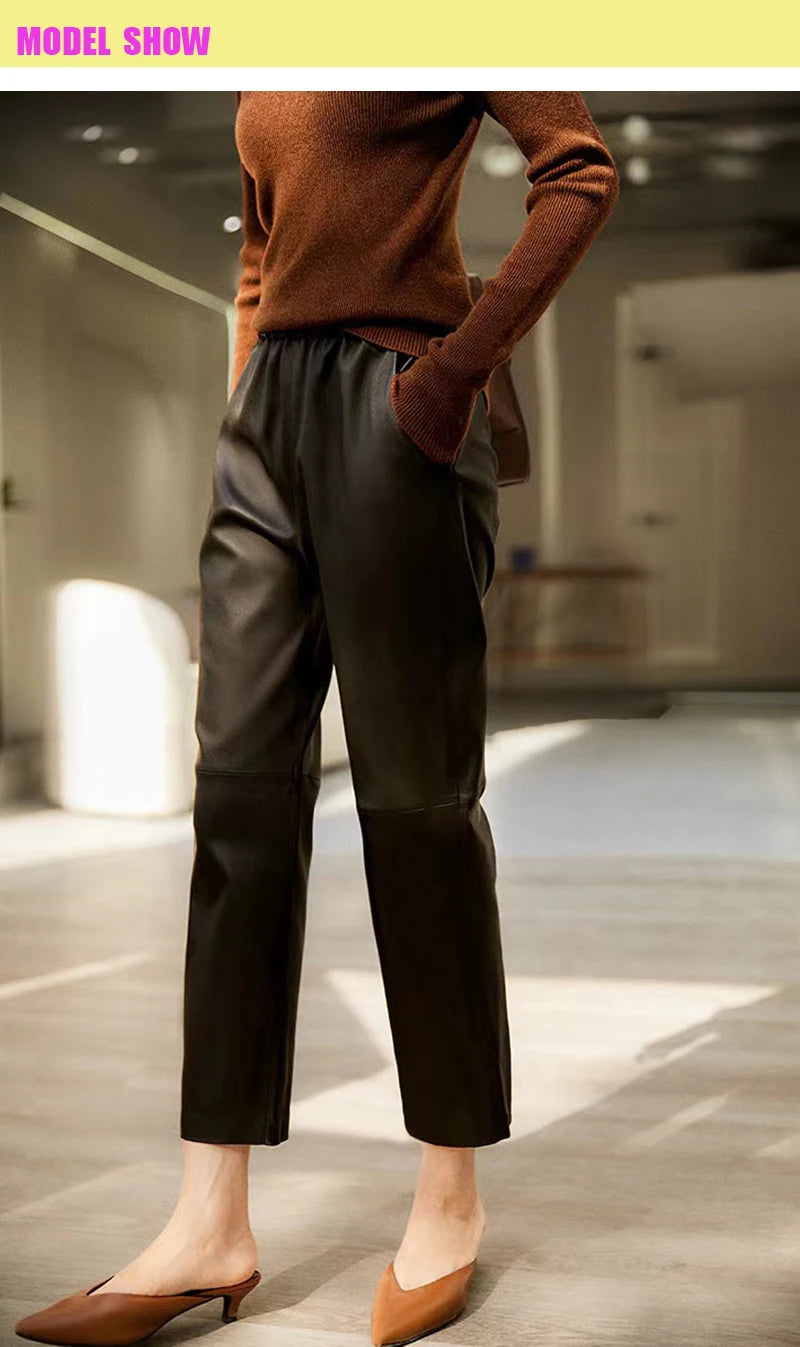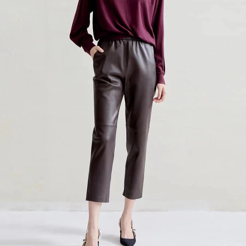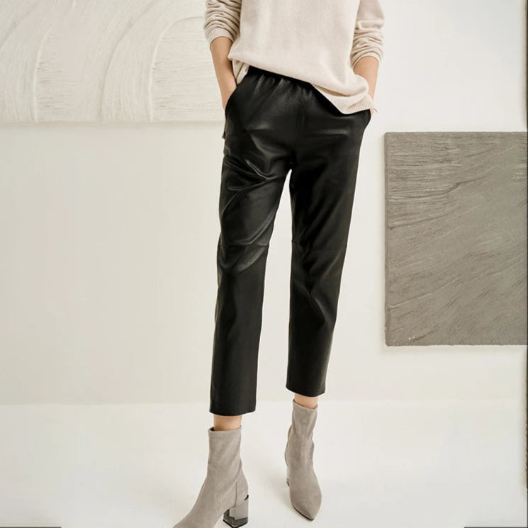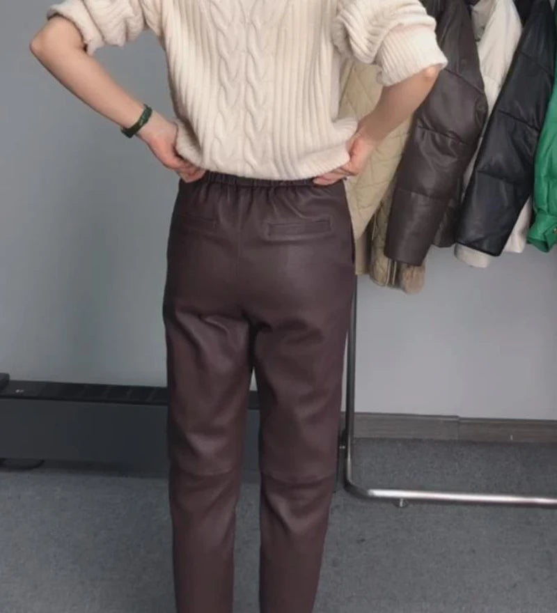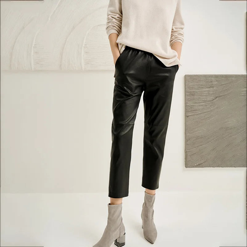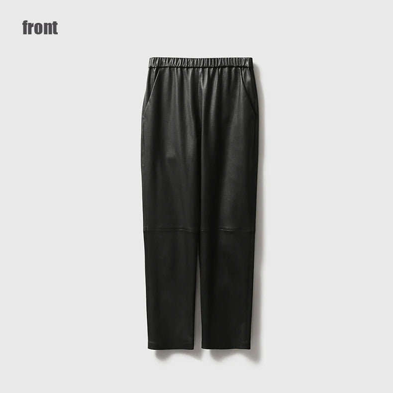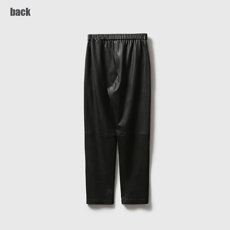 Women's Streetwear Elastic Waist Thin Feet Stretchy Sheepskin Leather Pants