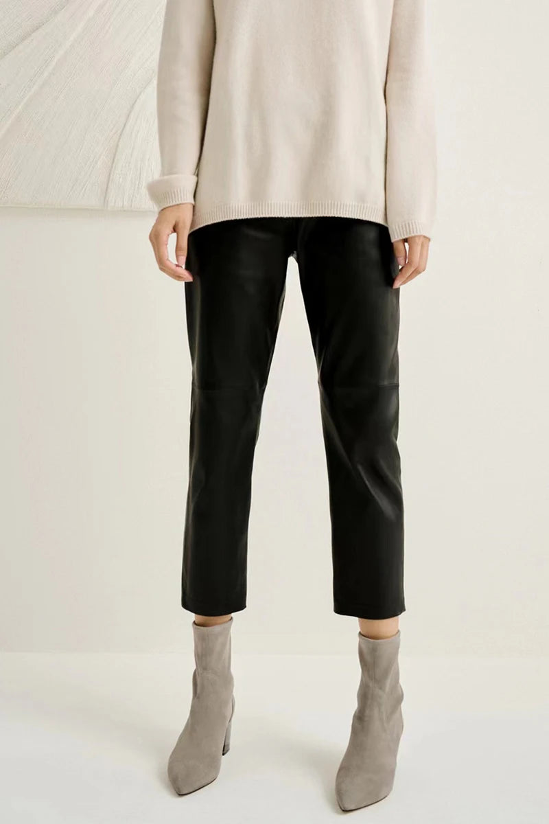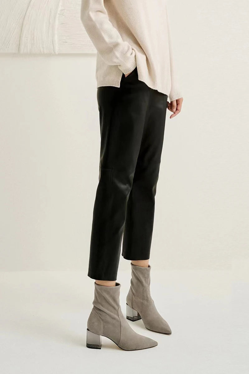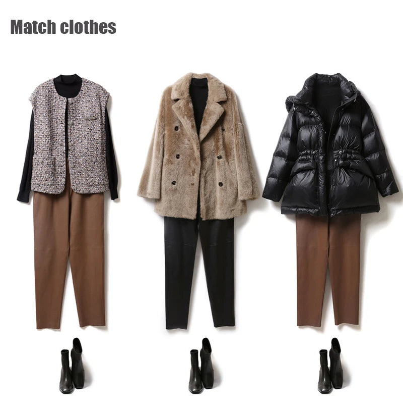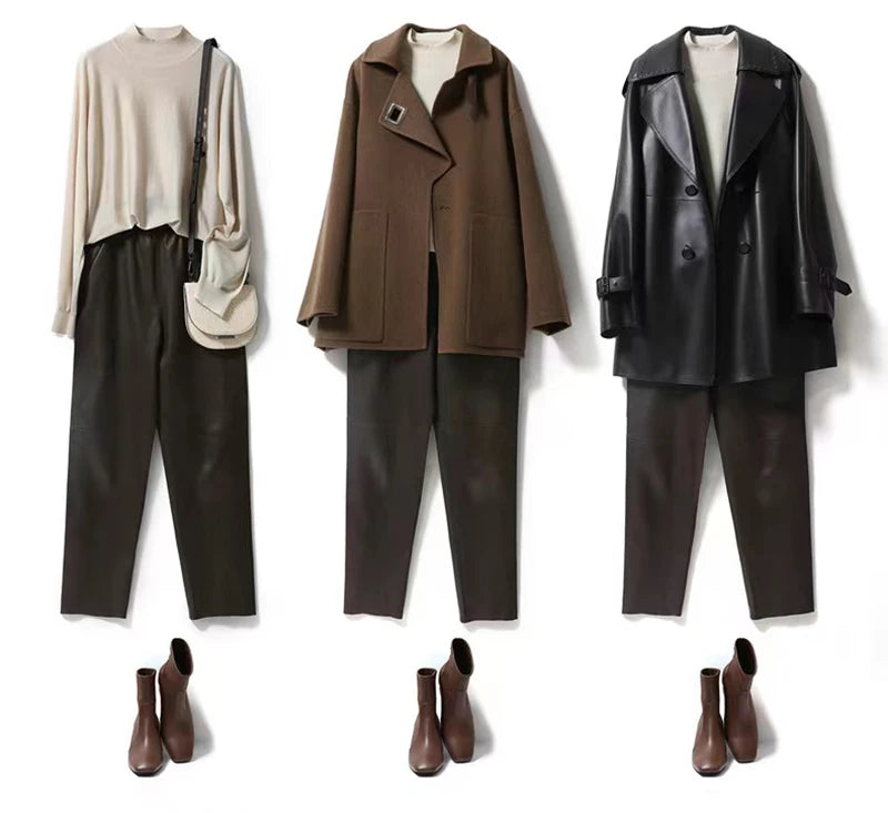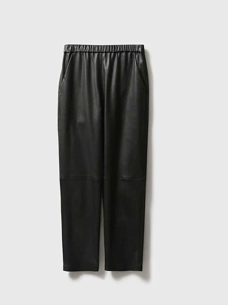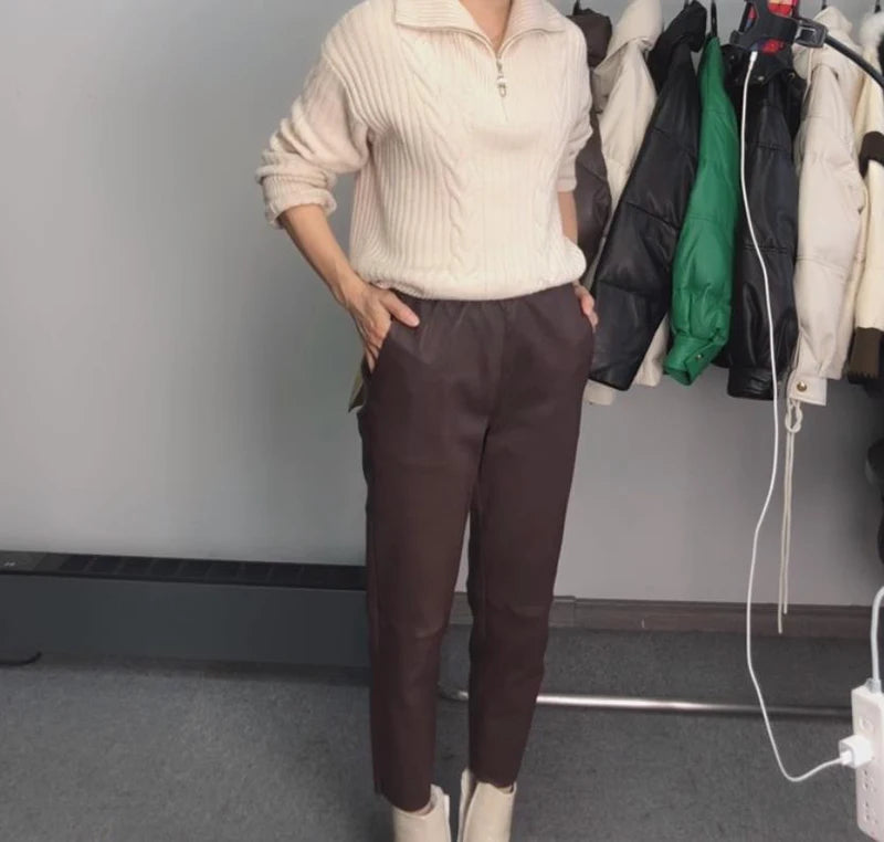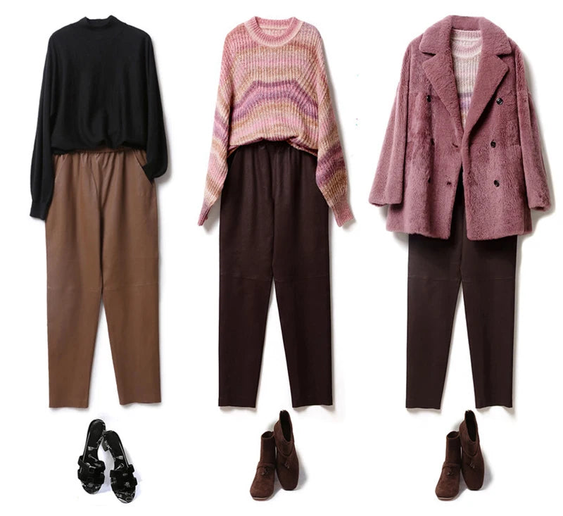 Women's Streetwear Elastic Waist Thin Feet Stretchy Sheepskin Leather Pants