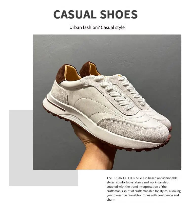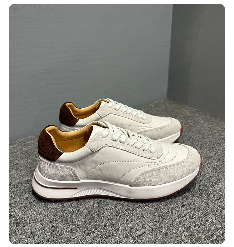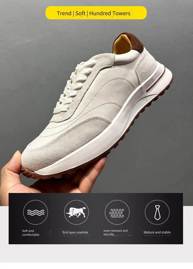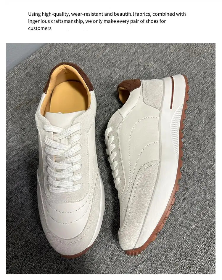 Men's All-Leather Korean Style Chunky Daily Casual Training Sneakers