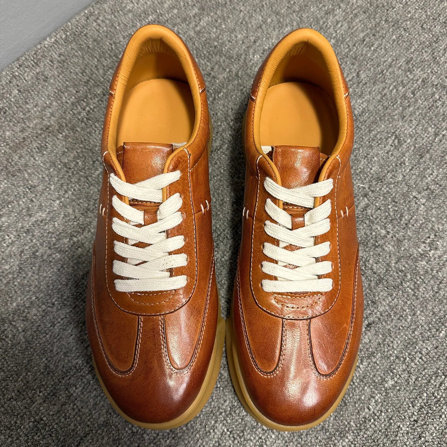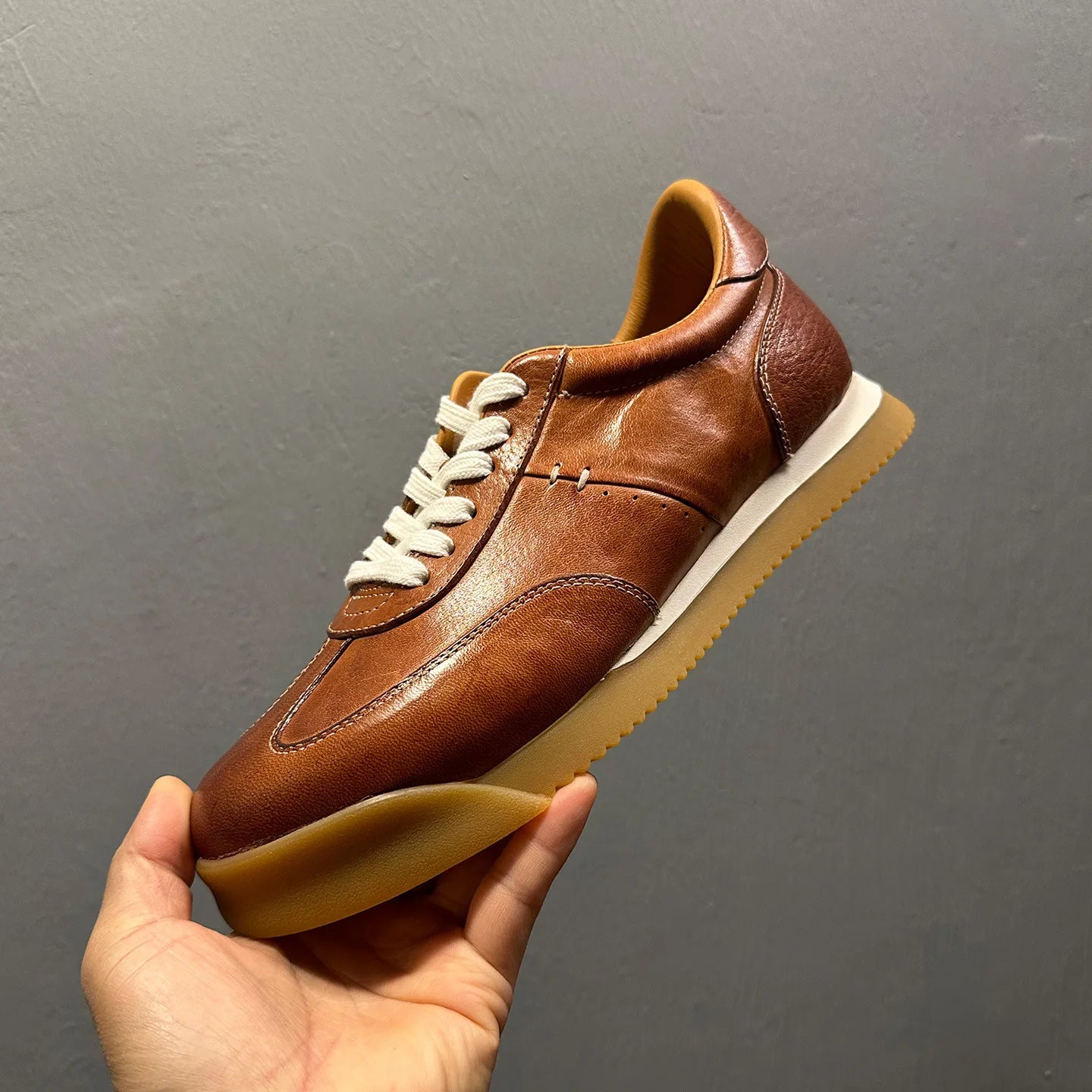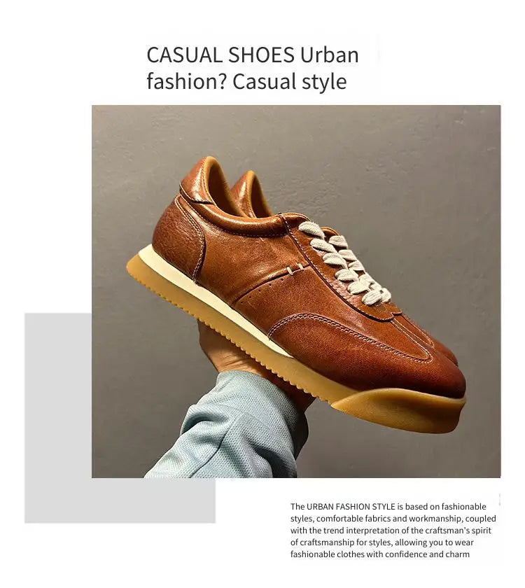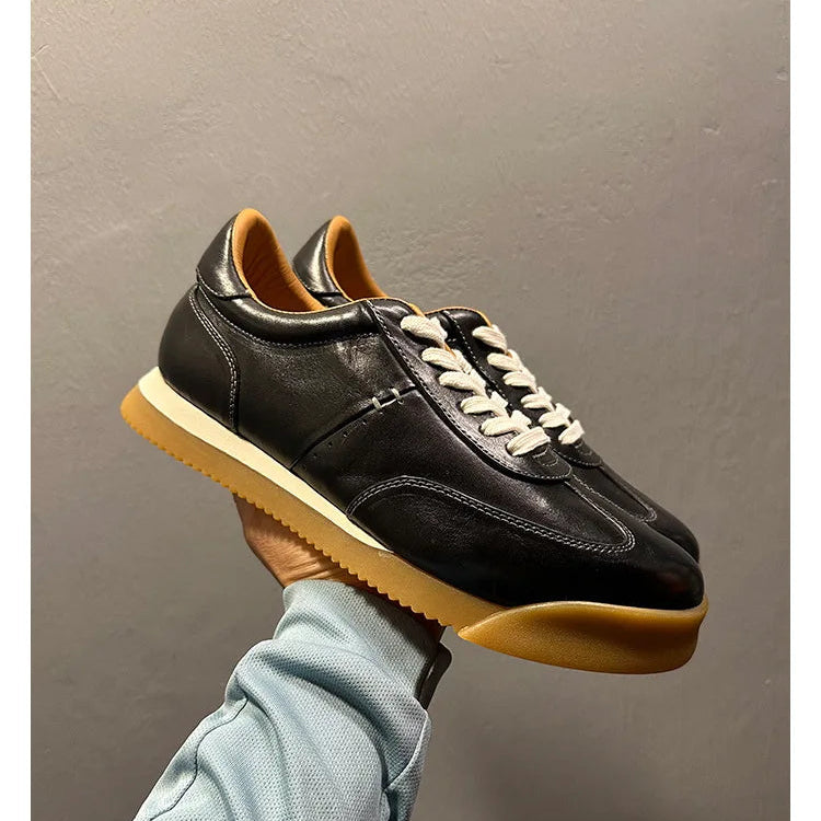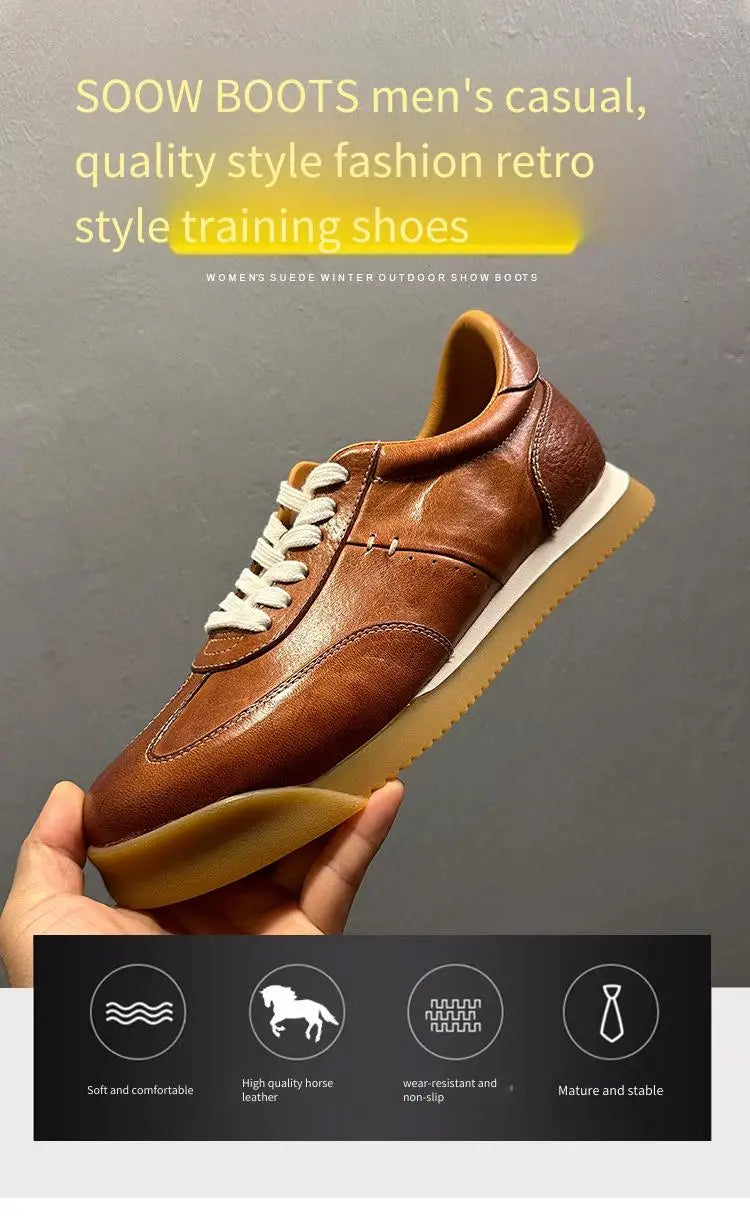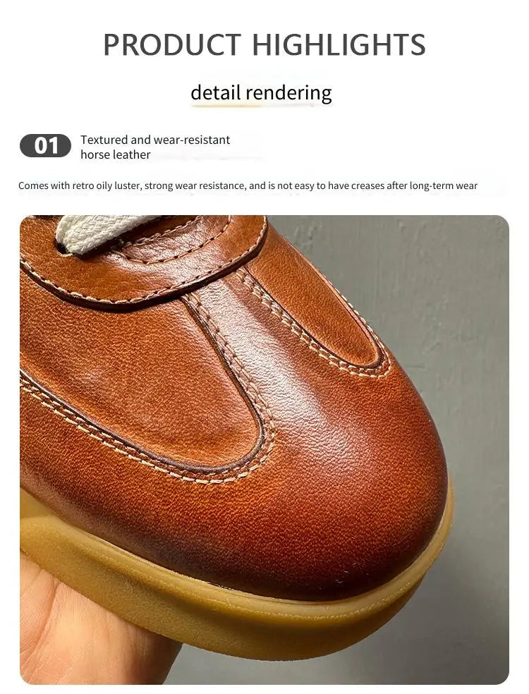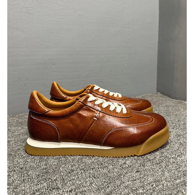 Men's Autumn Winter Retro Lightweight Horsehide Leather Lace-Up Sneakers