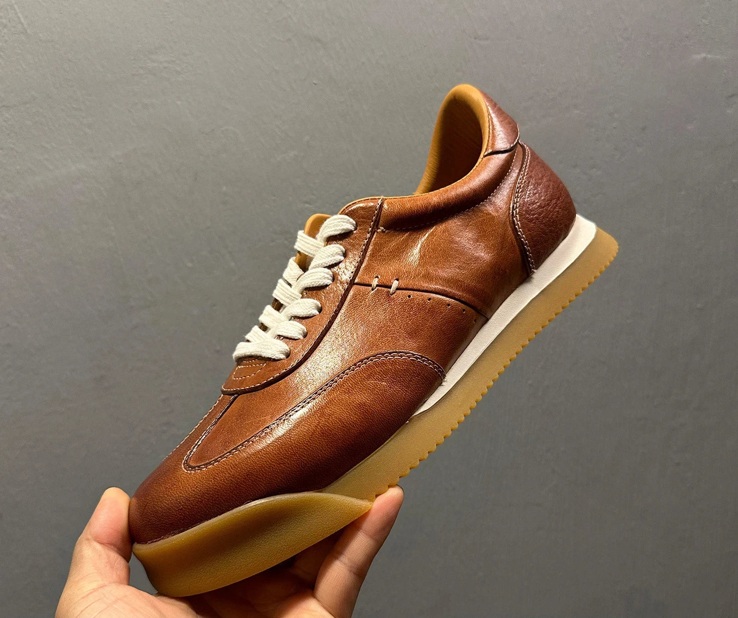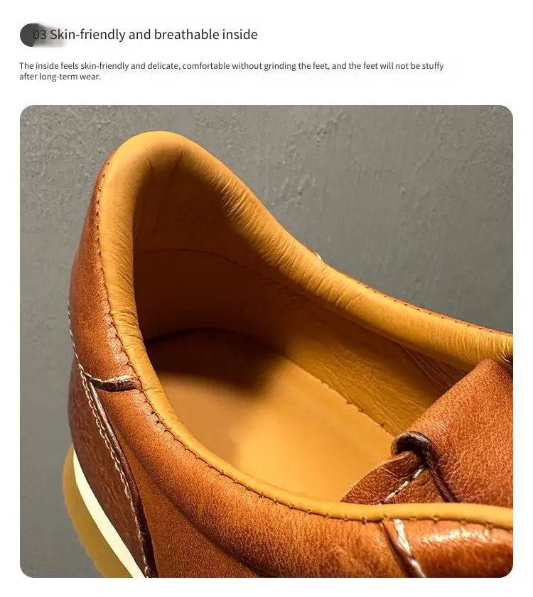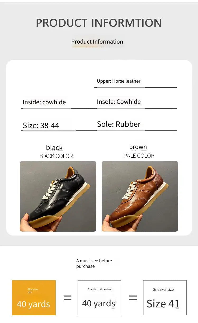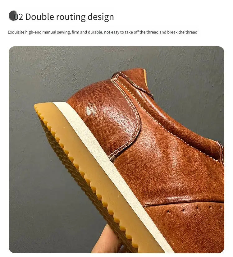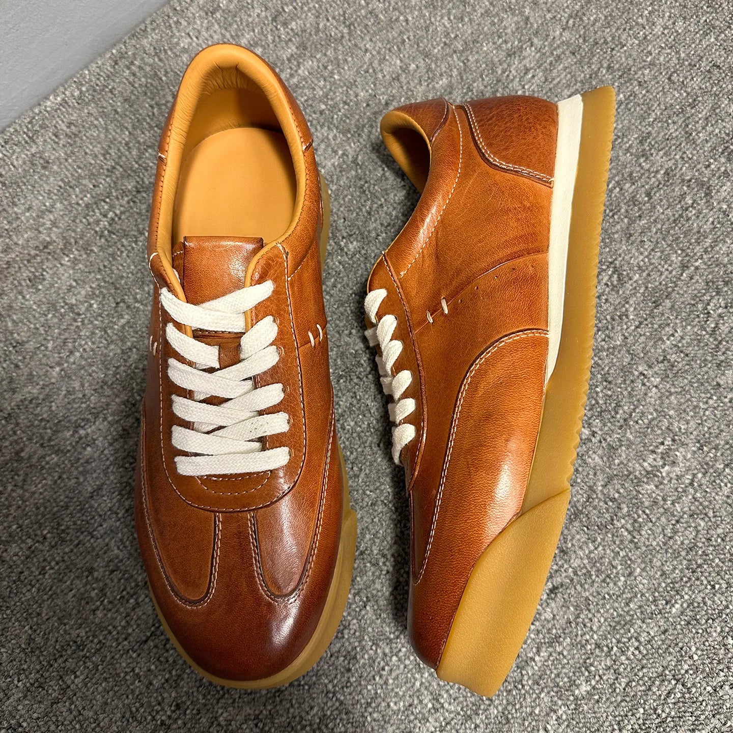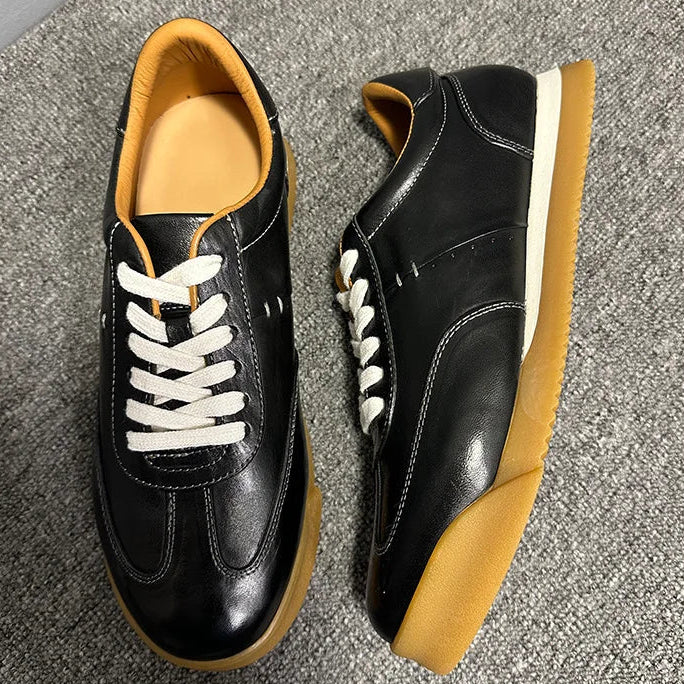 Men's Autumn Winter Retro Lightweight Horsehide Leather Lace-Up Sneakers