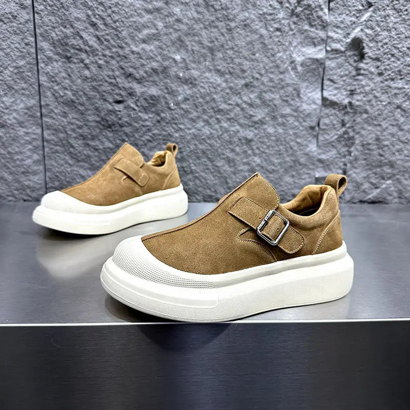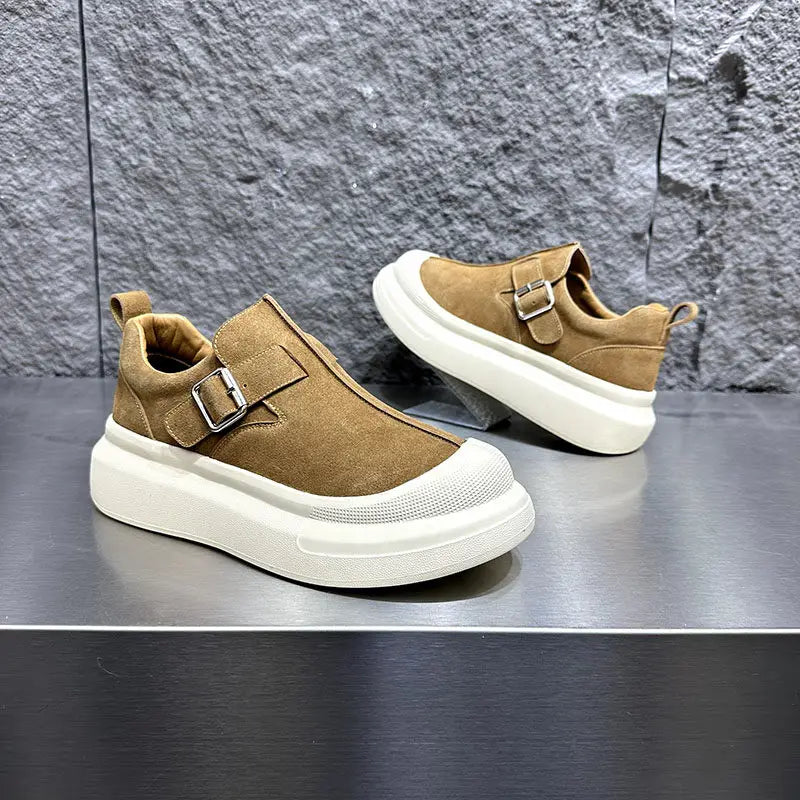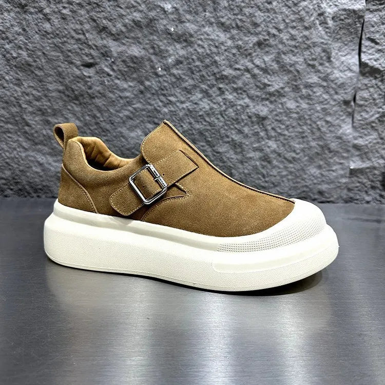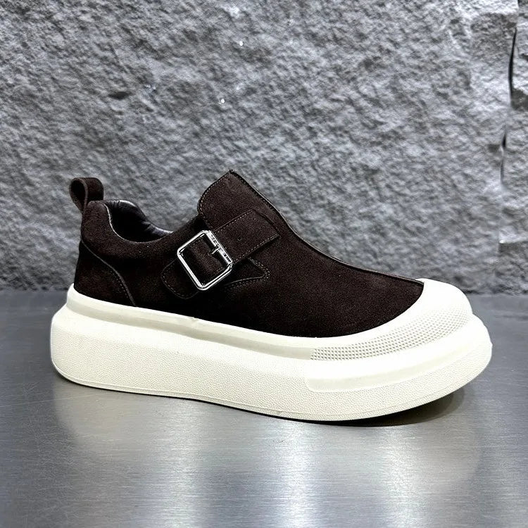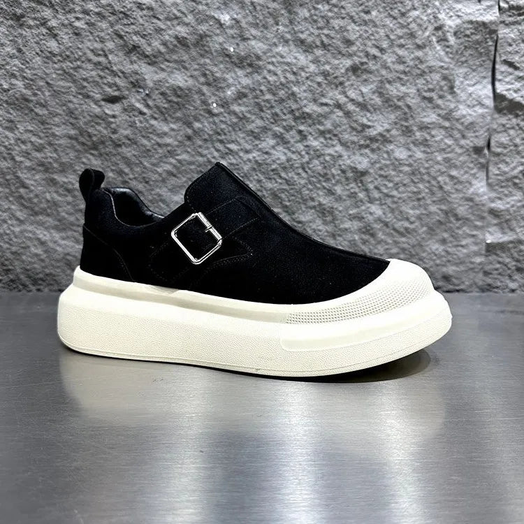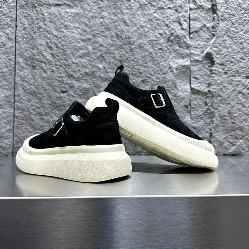 Men's Buckle Thick Platform Round Toe Low Cut Light Weight Skateboard Casual Shoes