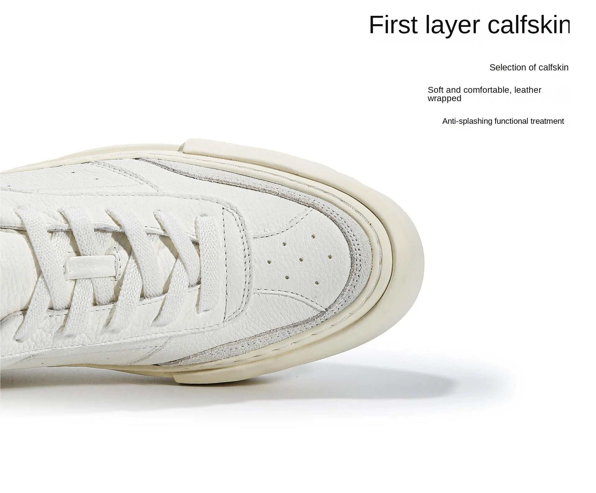 Men's Genuine Leather Thick-soled Casual Sports Low-top Lace-up Sneakers