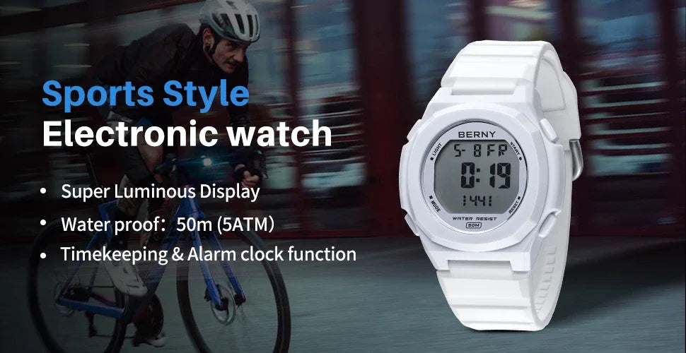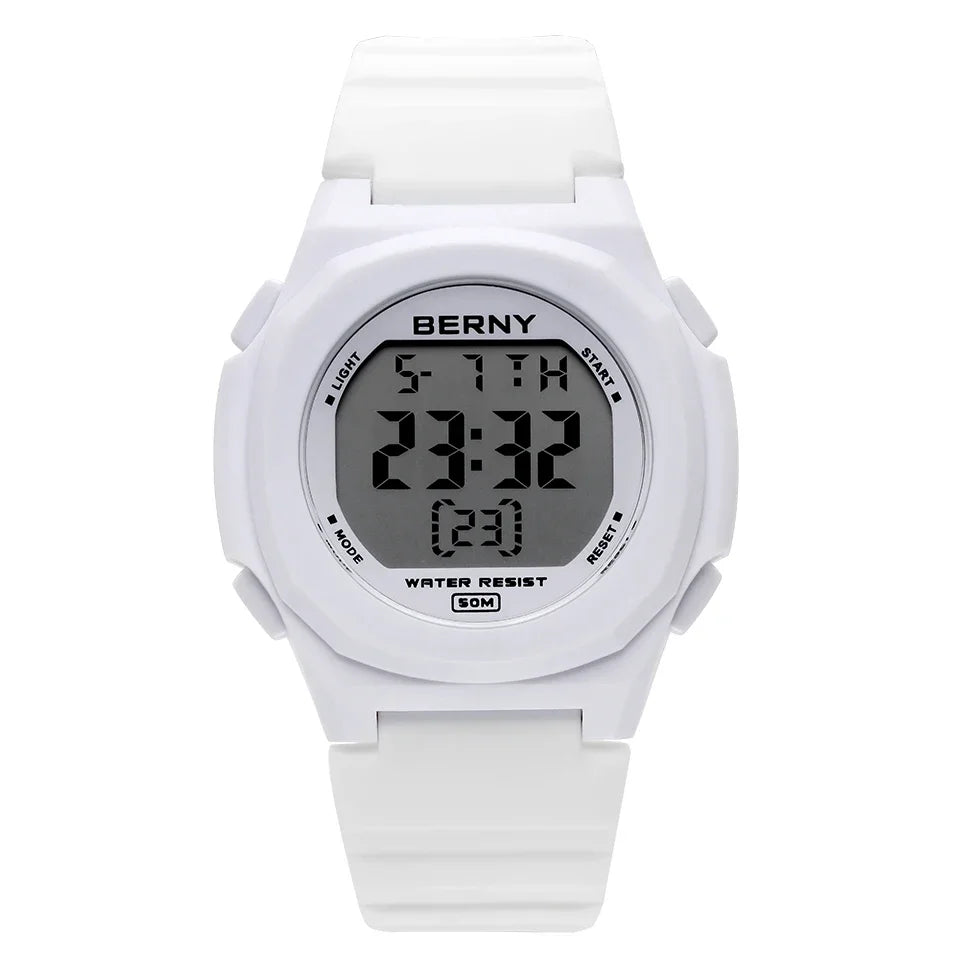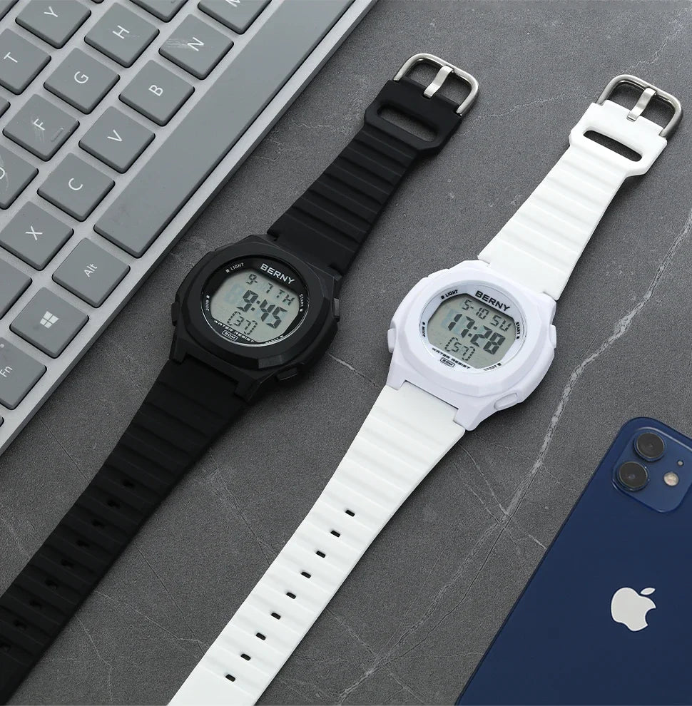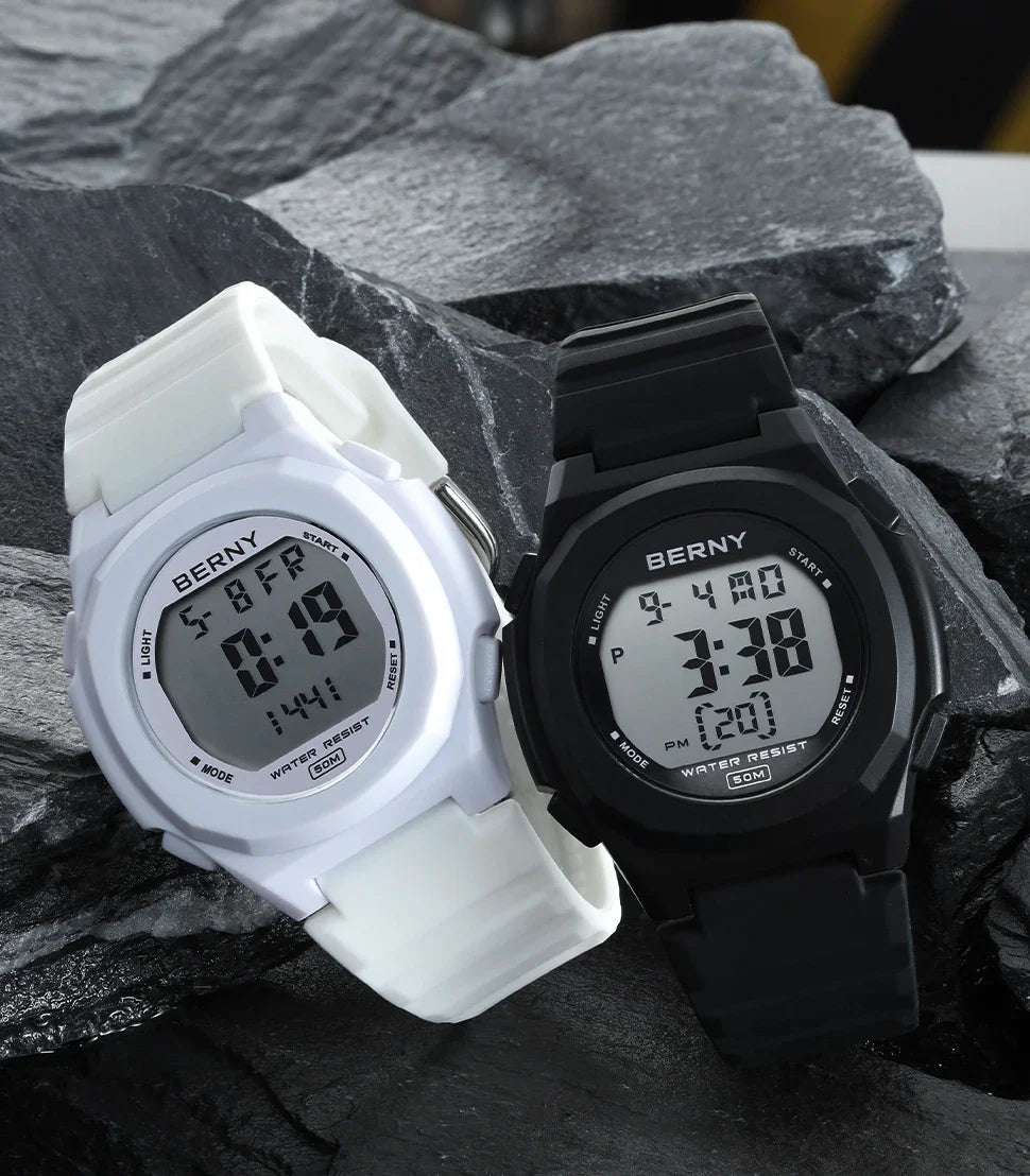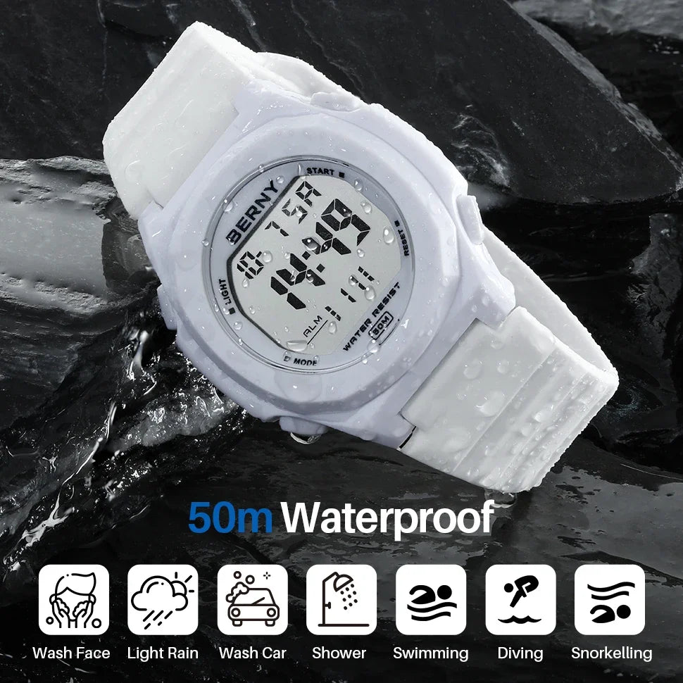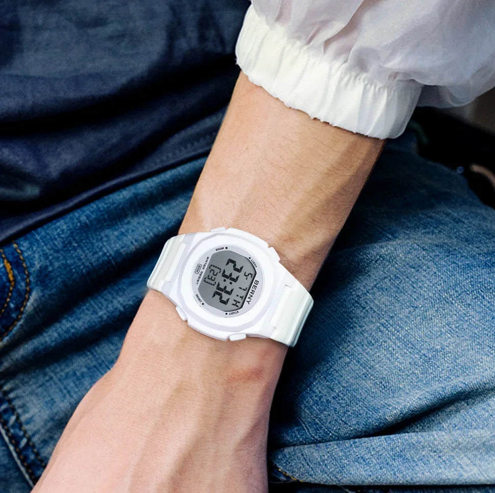 Aesthetic and classy, this men's digital watch is a great accessory for students and sportspeople. The silicone strap exudes sophistication and timeless appeal. A functional watch with a waterproof body and stopwatch and alarm features. Buy now!