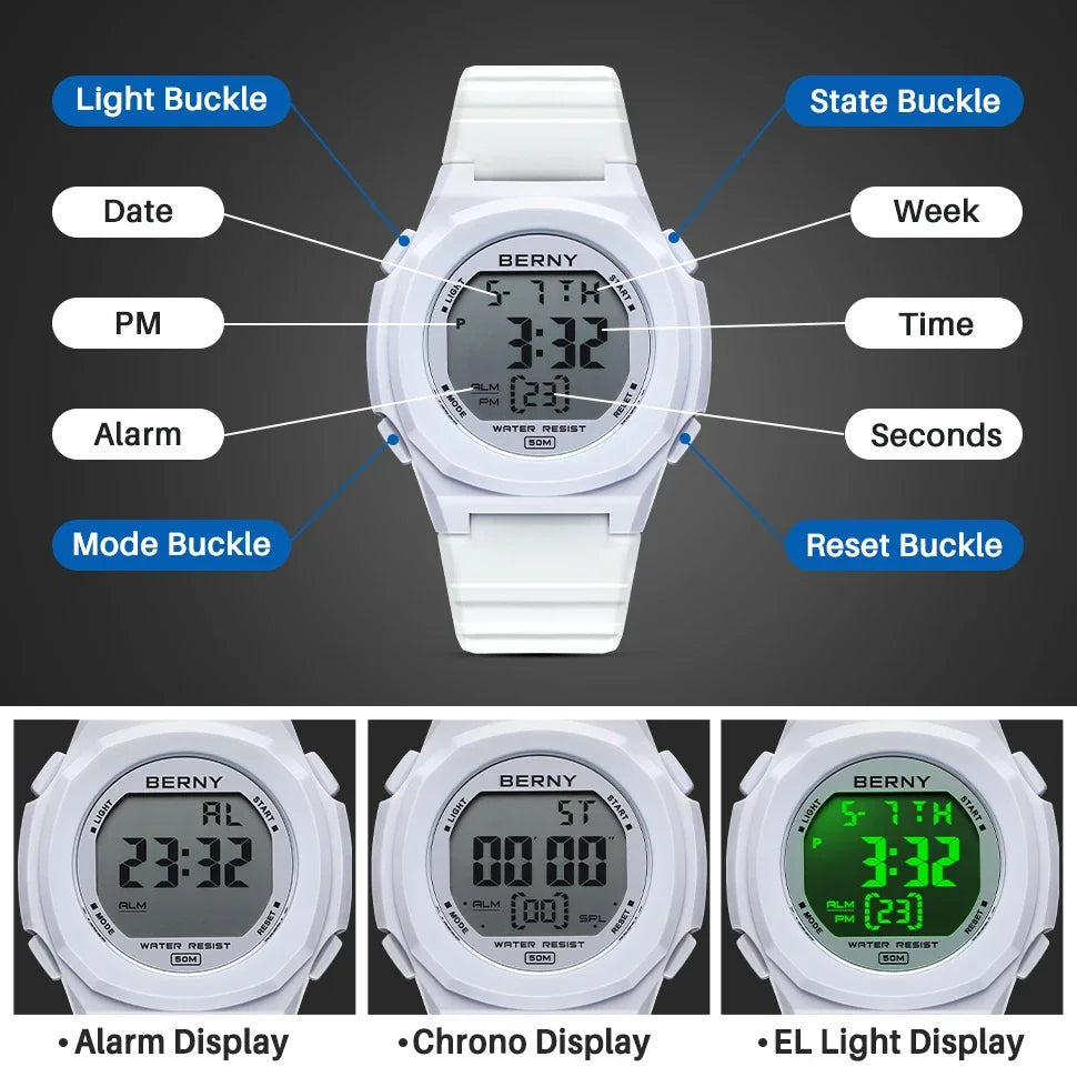 Men's Multifunction Luminous Alarm Waterproof Digital Electronic Sports Wristwatches for Students