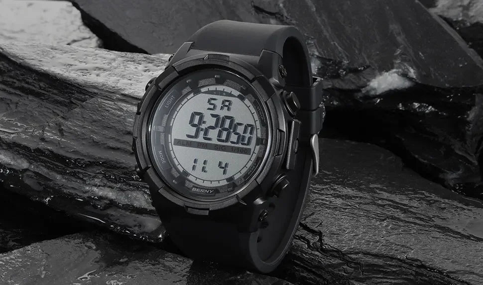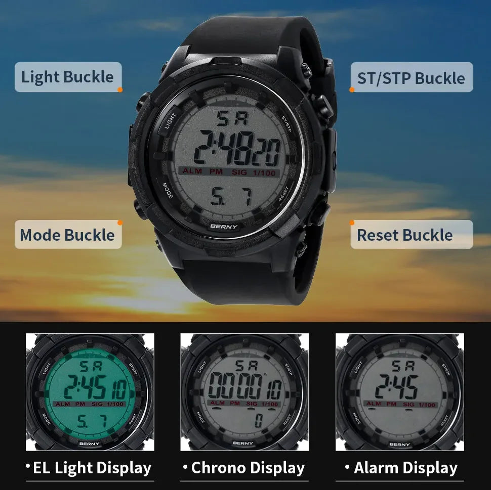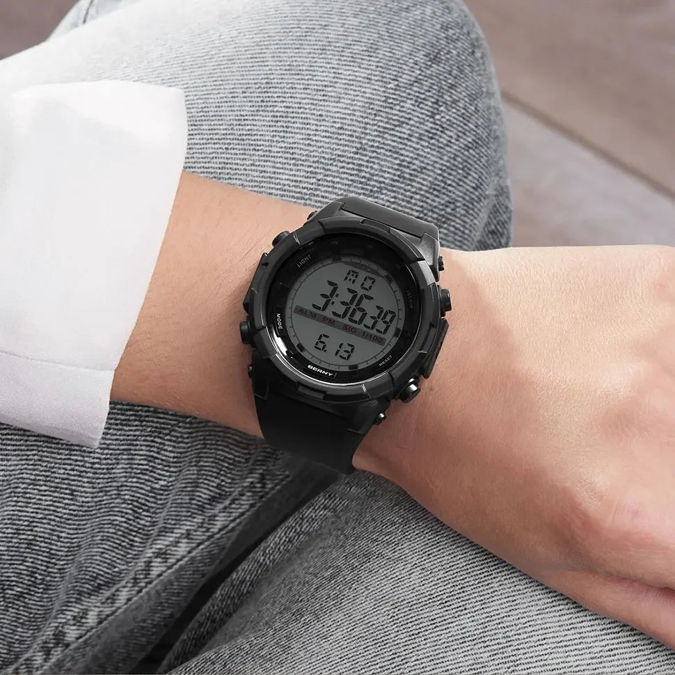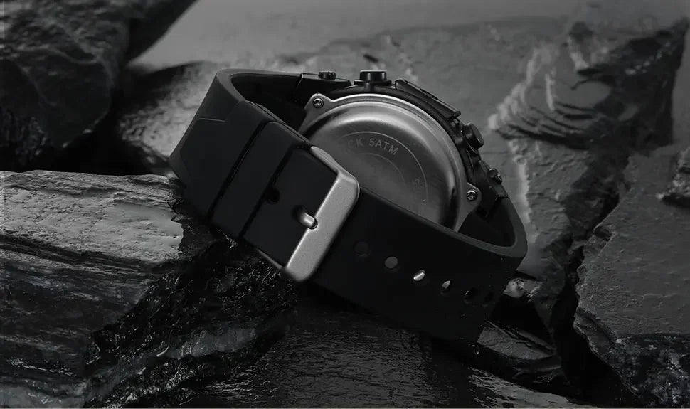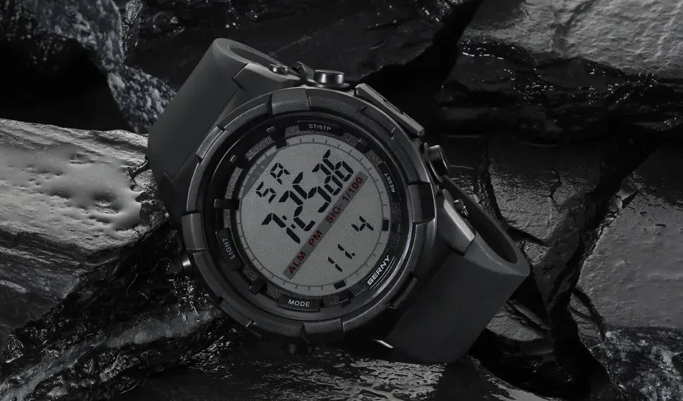 Featuring a silicone strap that is comfortable to wear and a 49mm large dial, offering both durability and style, this digital men's watch is for sportsmen. The digital display, alarm and calander features are intuitive. Quality, perfect craftsmanship and smart look makes this watch a great accessory!