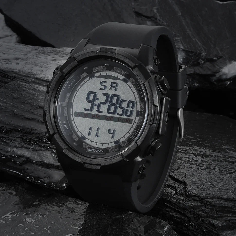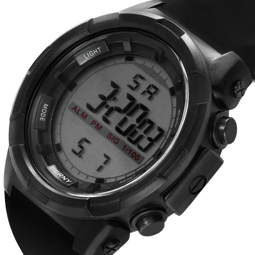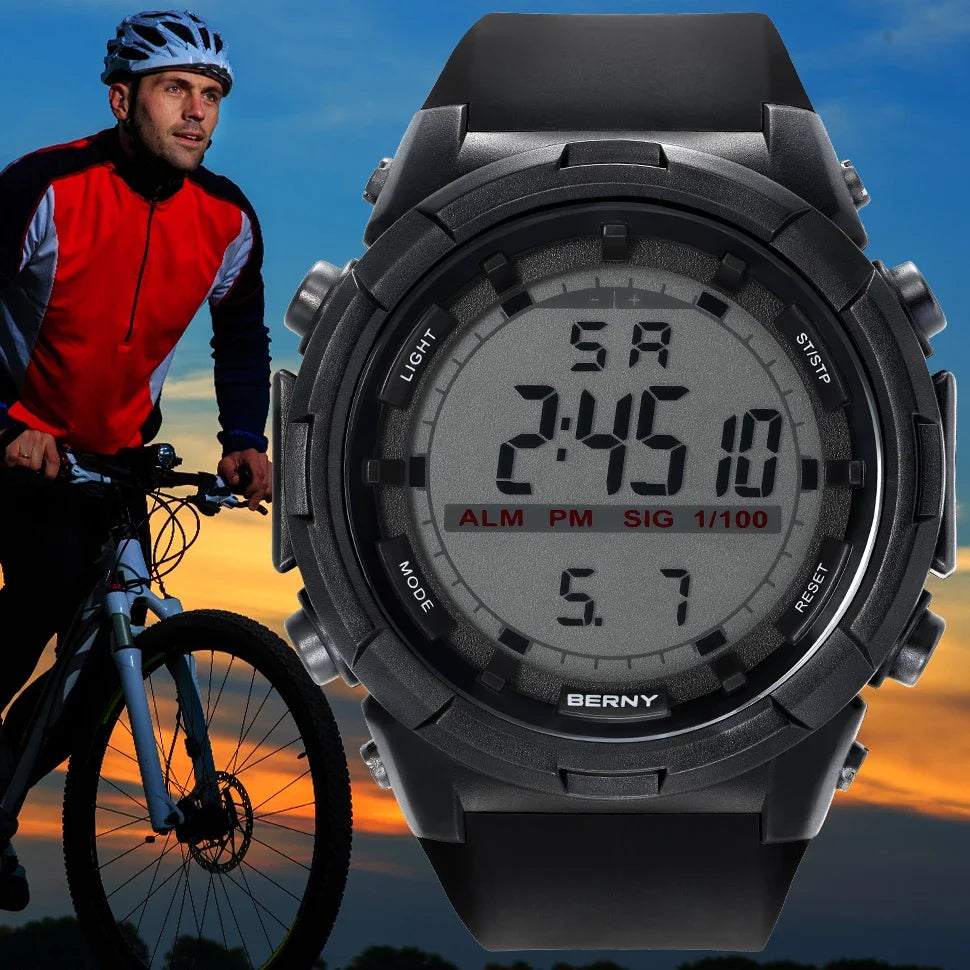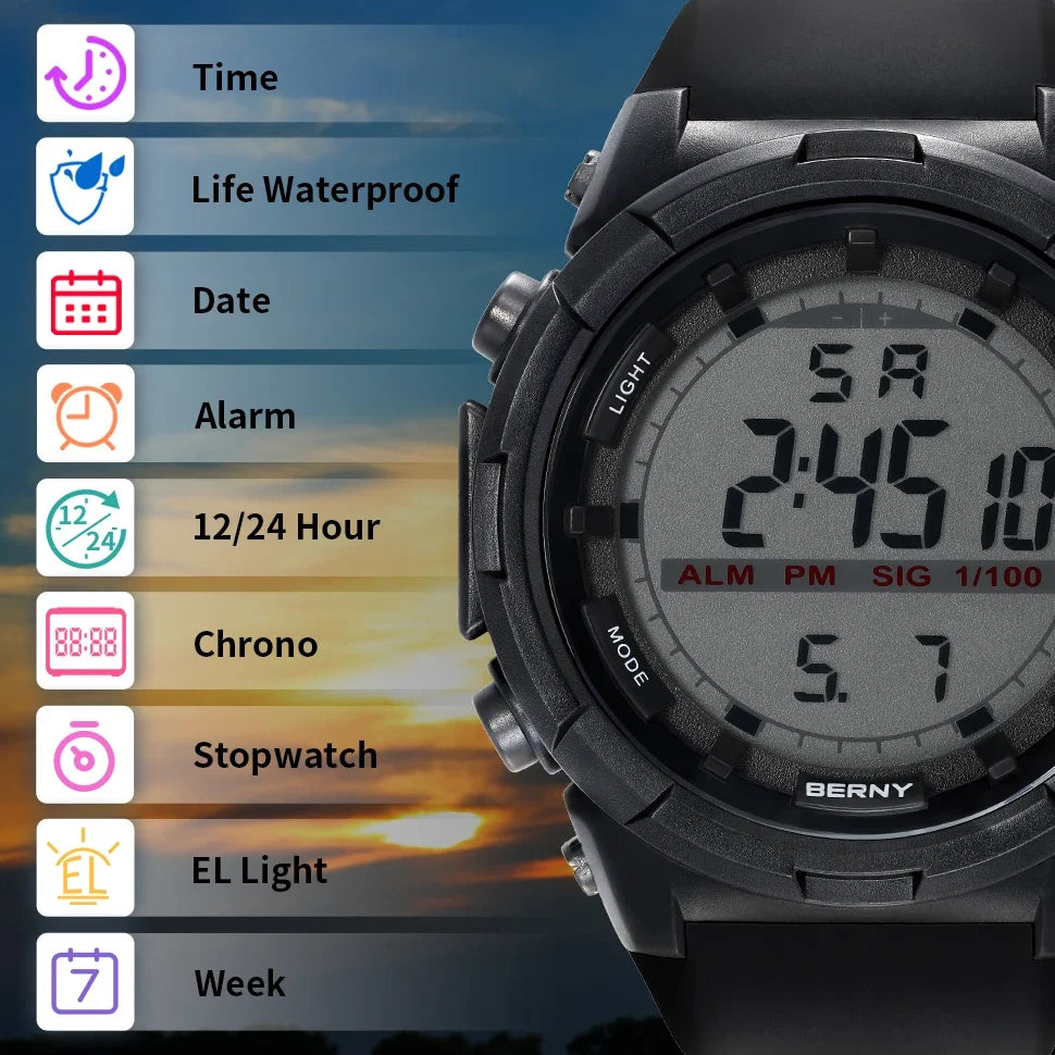 Featuring a silicone strap that is comfortable to wear and a 49mm large dial, offering both durability and style, this digital men's watch is for sportsmen. The digital display, alarm and calander features are intuitive. Quality, perfect craftsmanship and smart look makes this watch a great accessory!