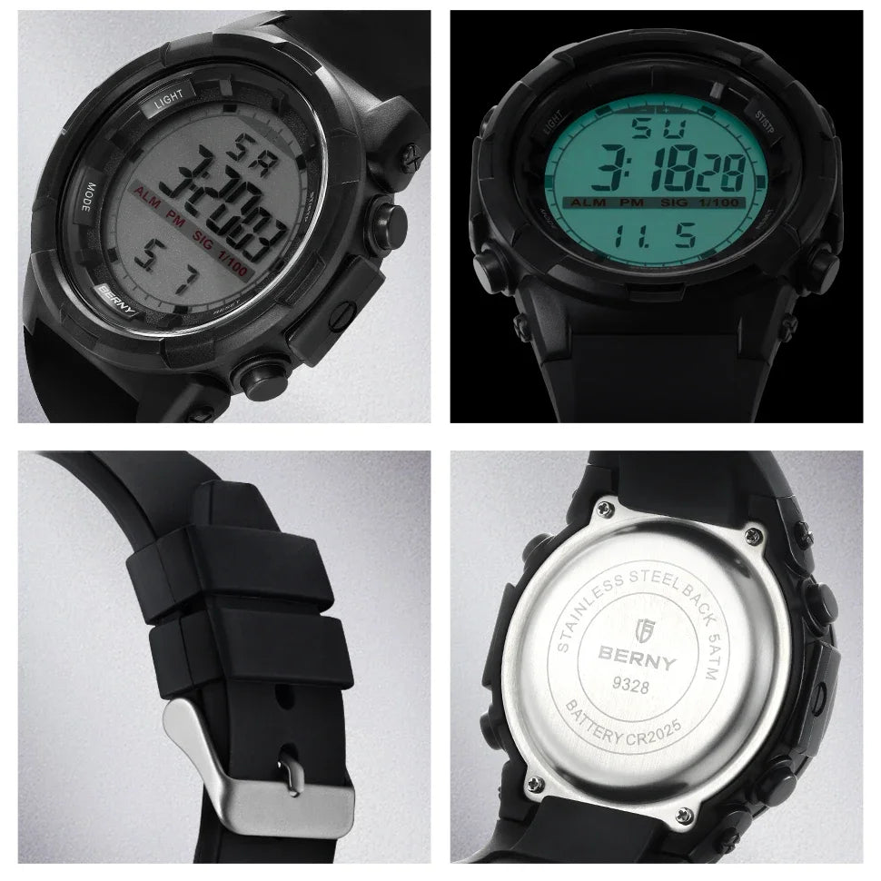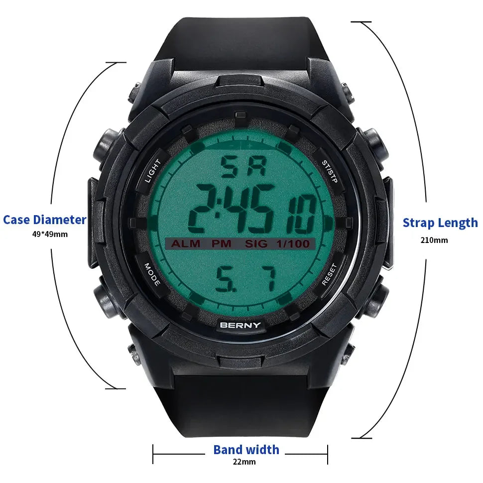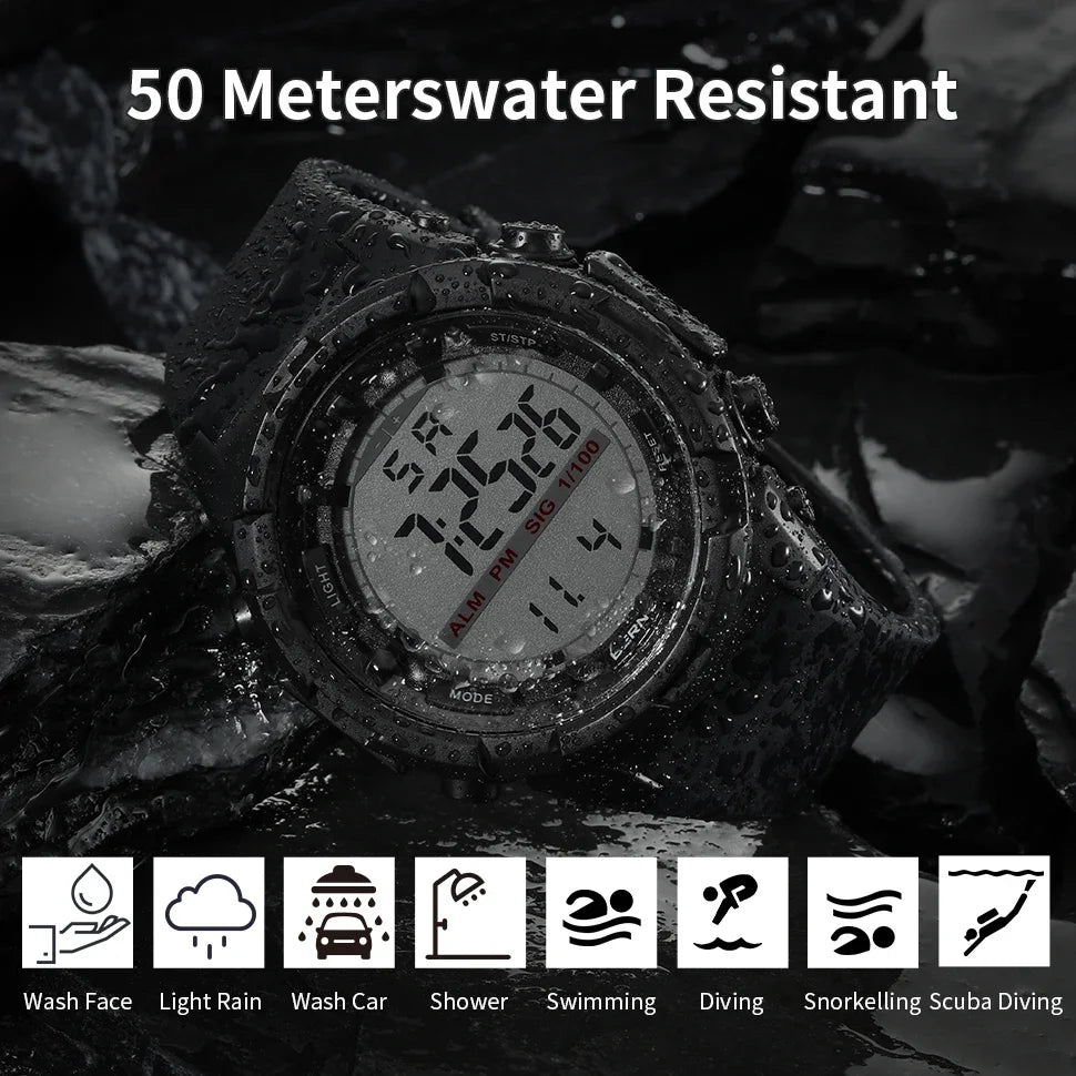 Silicone Luminous 49mm 5ATM Waterproof Alarm Calendar Digital Electronic Sports Watch for Men