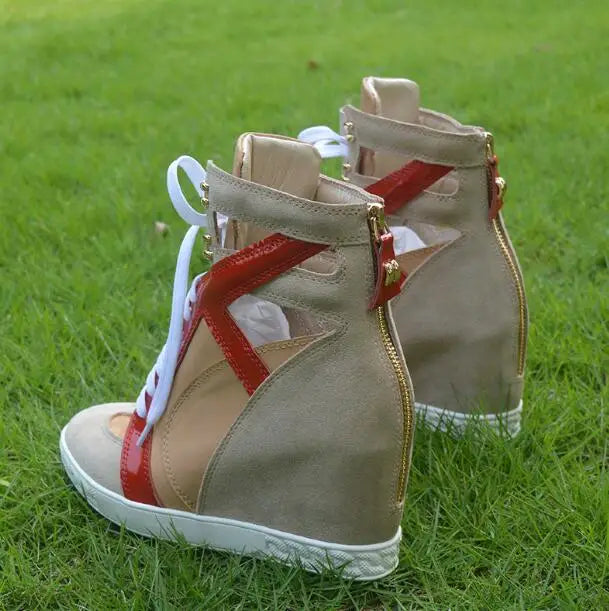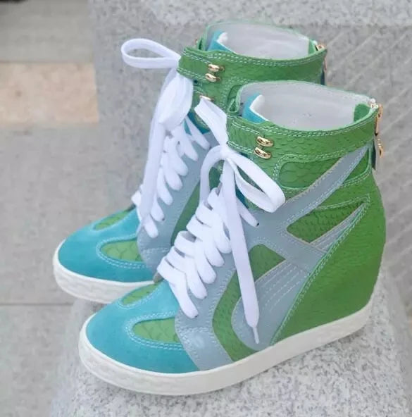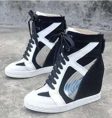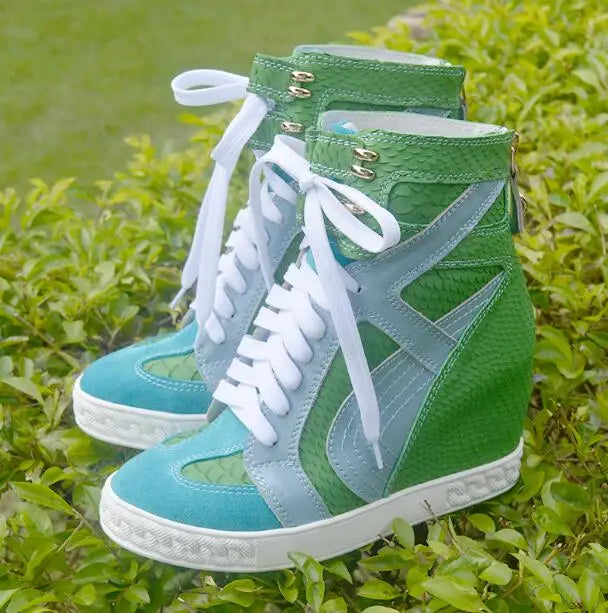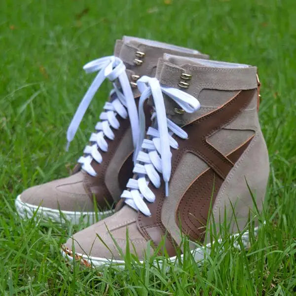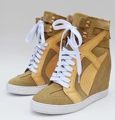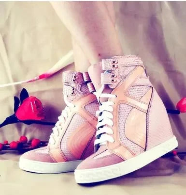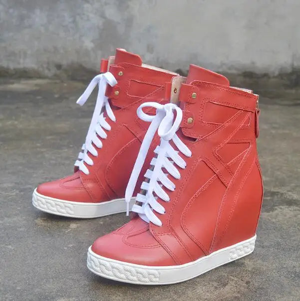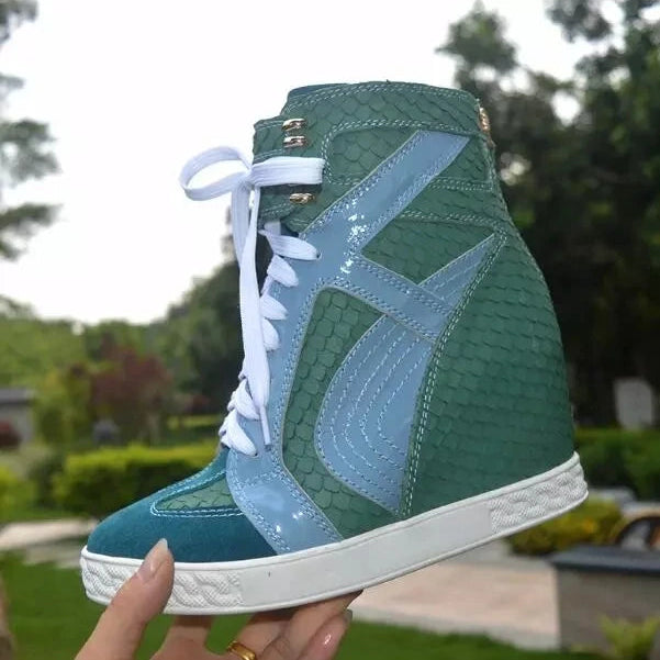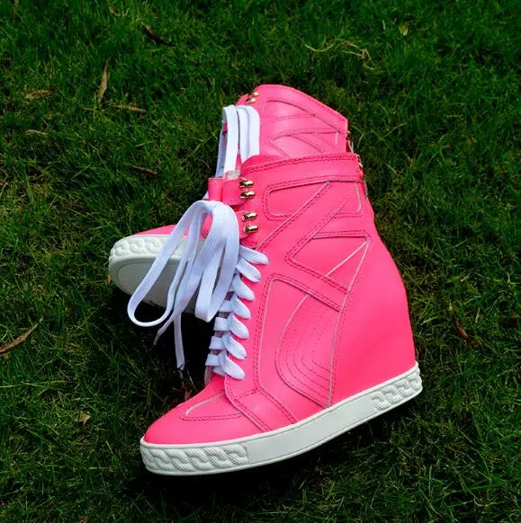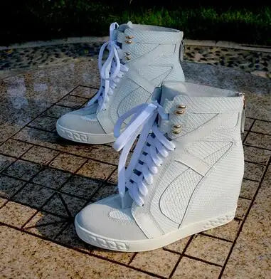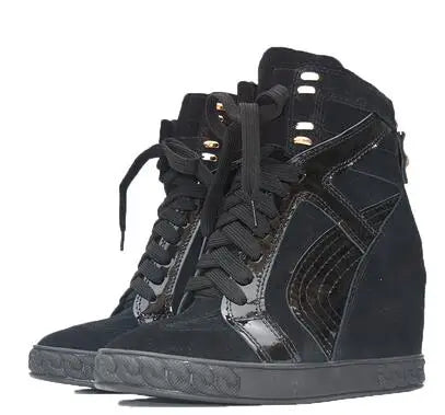 Girls 80mm Height Increasing Wedge Round Toe Lace Up Casual Ankle Boots