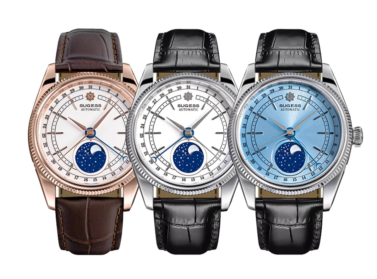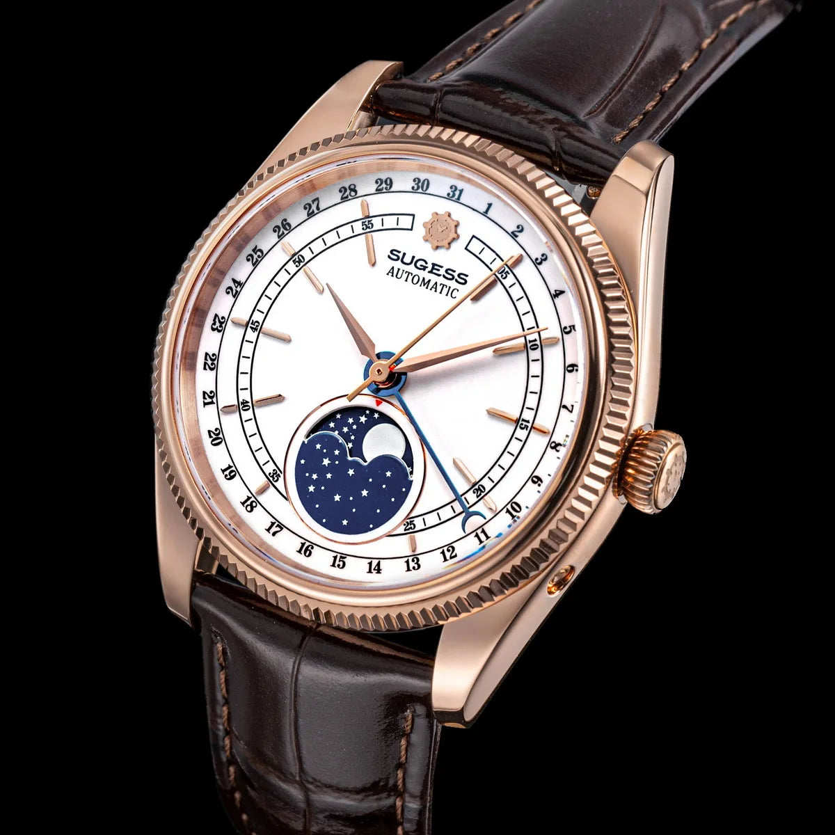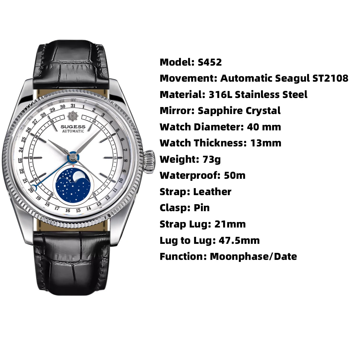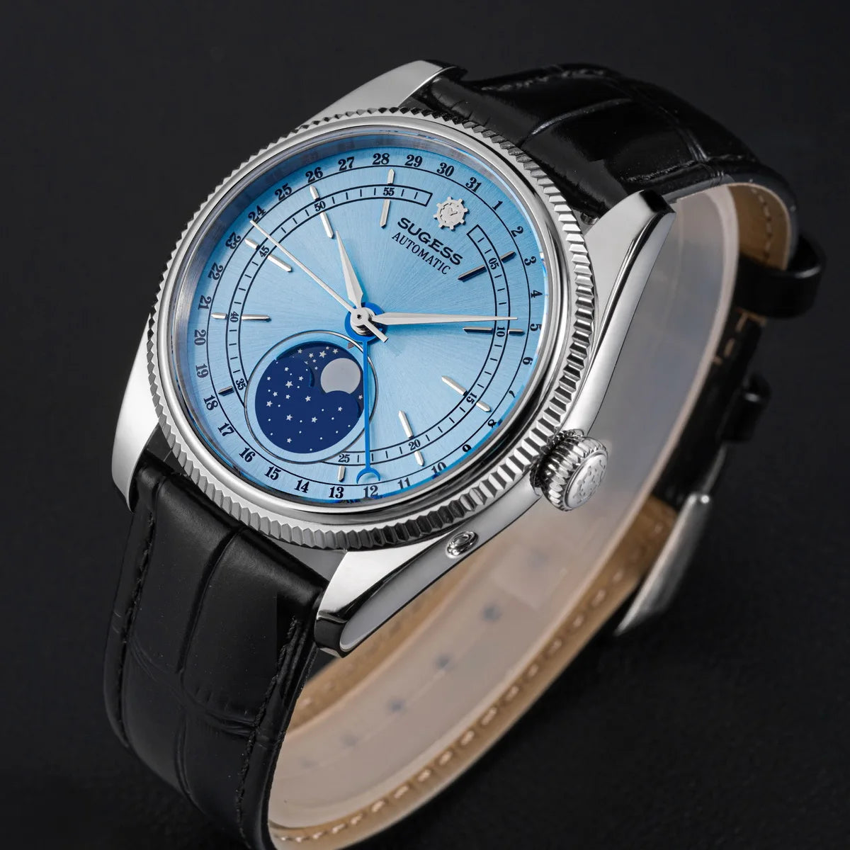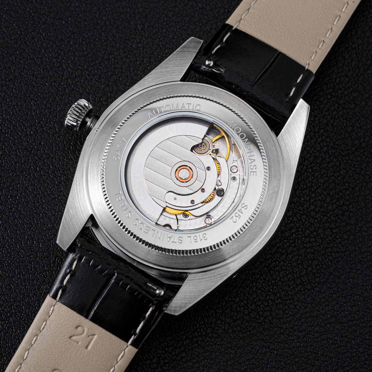 40mm Men's Automatic Mechanical ST2108 Movement MoonPhase Water Resistant Watch