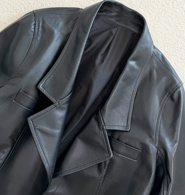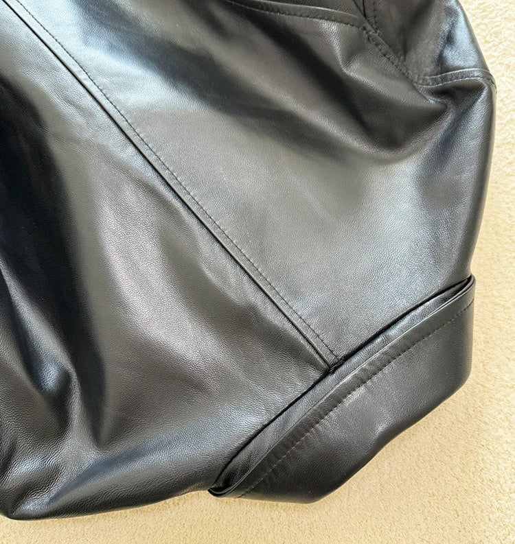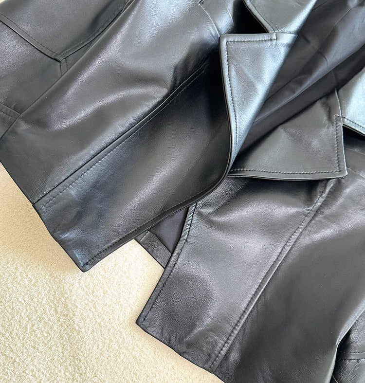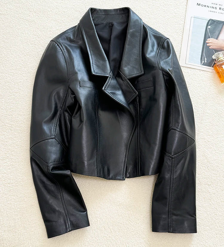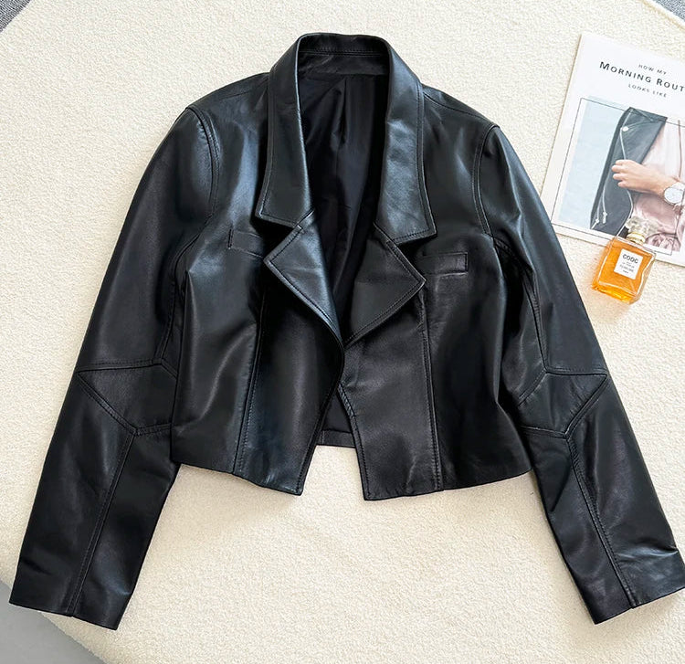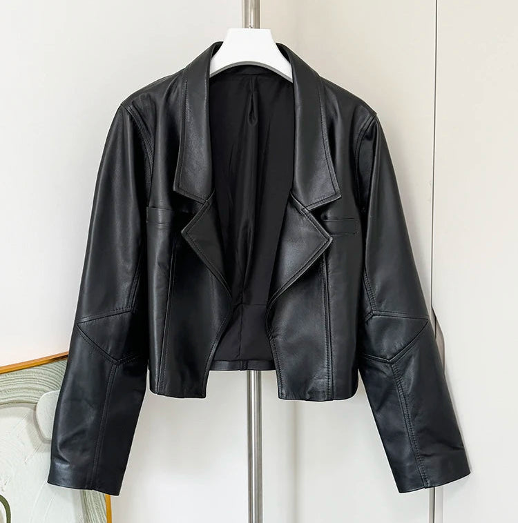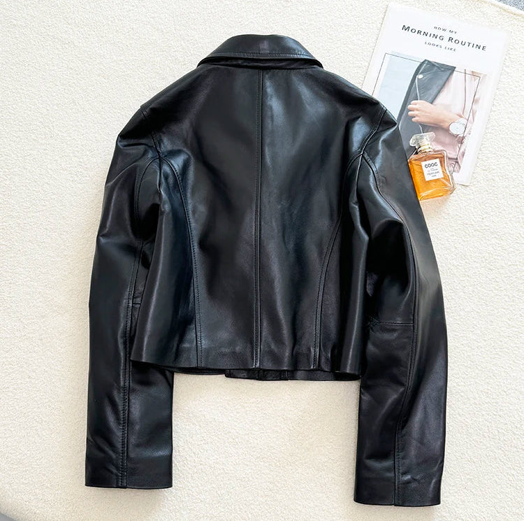 Korean Real Sheepskin Leather Loose Short Jacket for Women