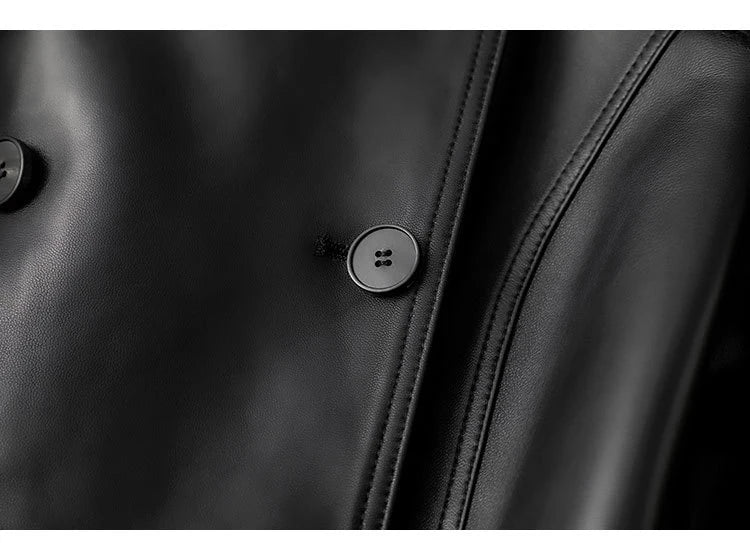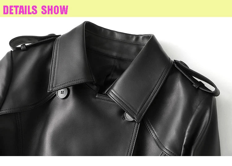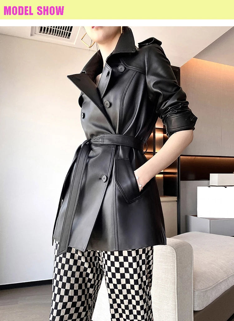 This women's double-breasted trench coat is designed in a simple, solid color finish, keeping in mind the latest trends. Made with quality sheepskin leather, it is durable and looks appealing. The belted waistline and the lapel collar make you look more stylish and trendy. Get your's now!