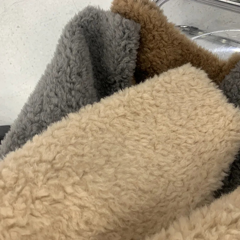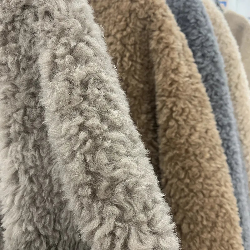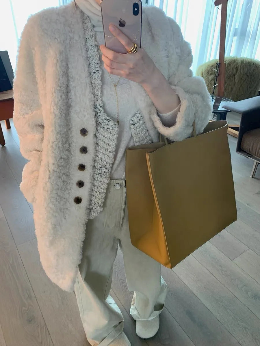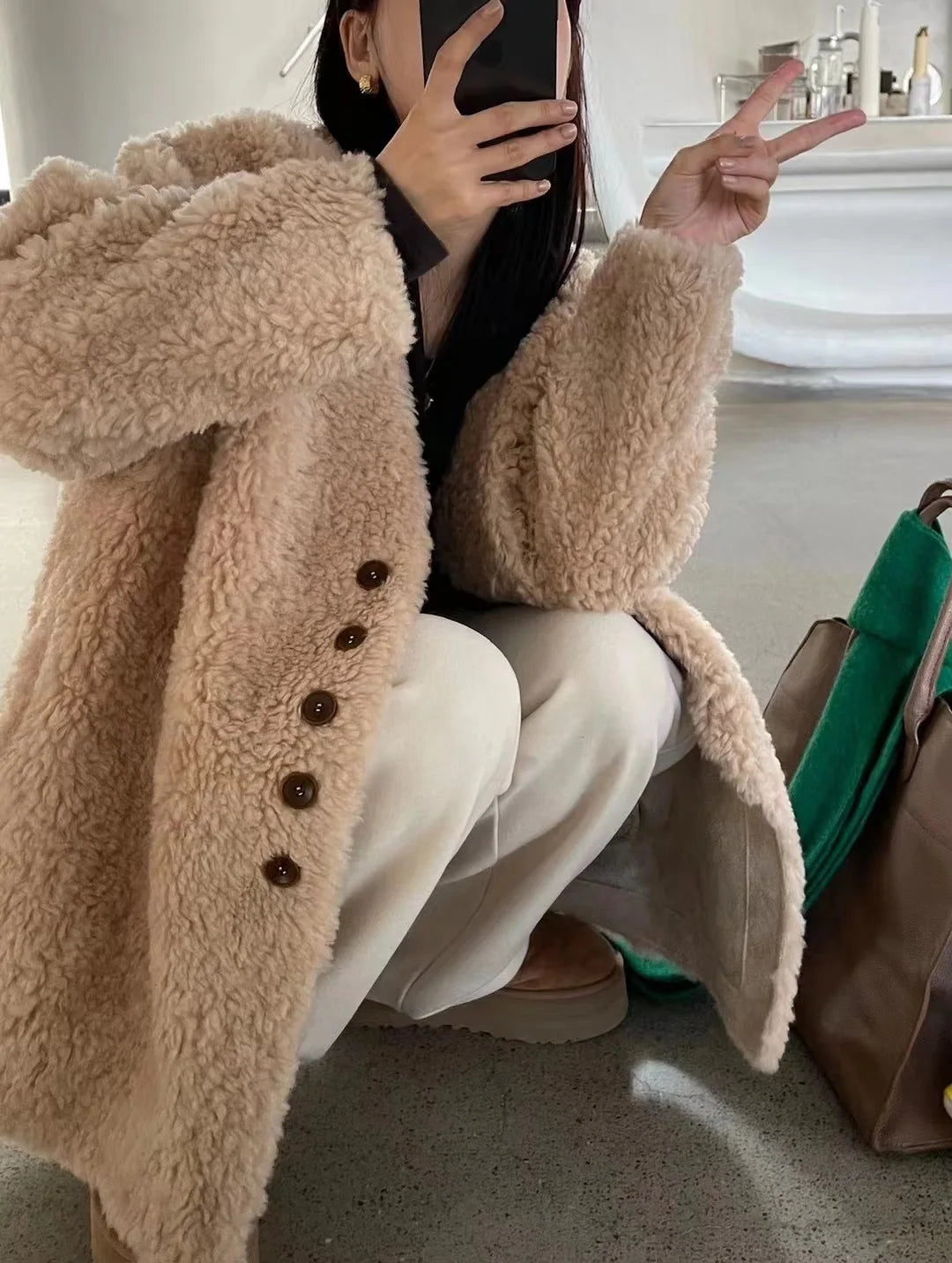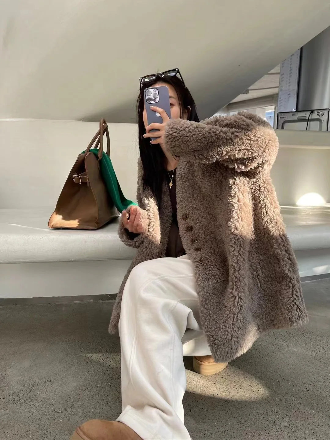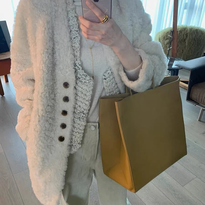 Women's Lamb Fur Autumn Winter V-Neck Single Breasted Loose Shearing Jacket