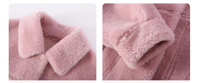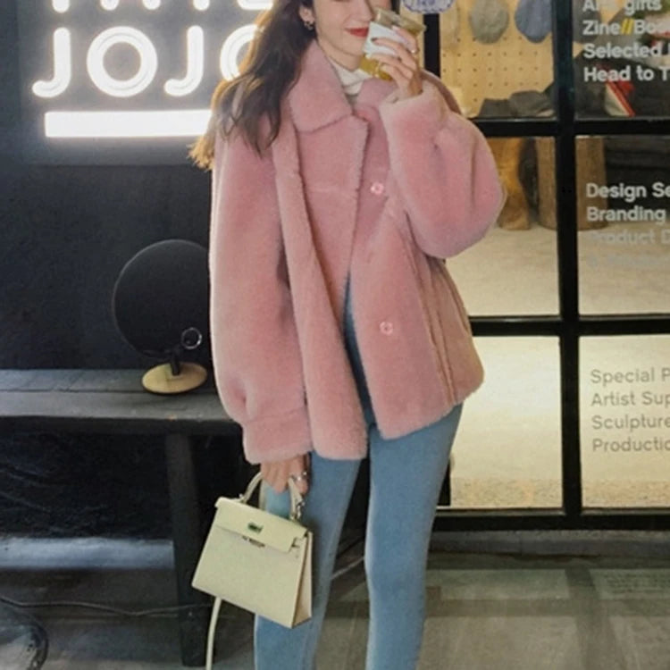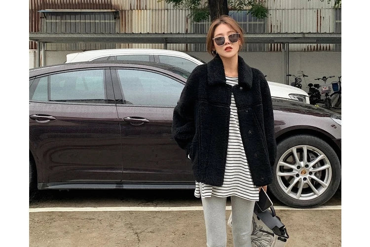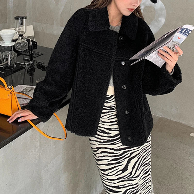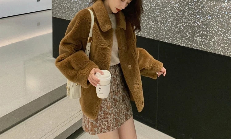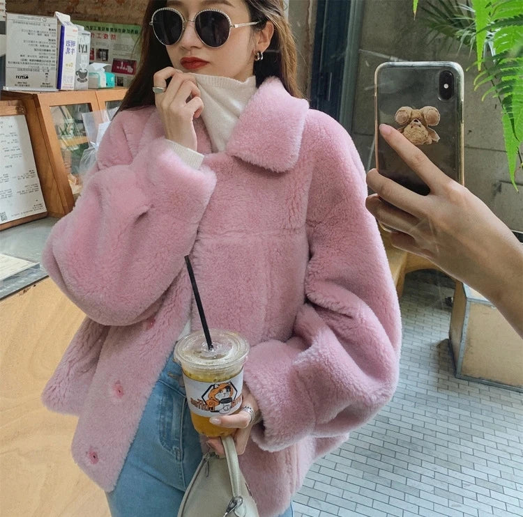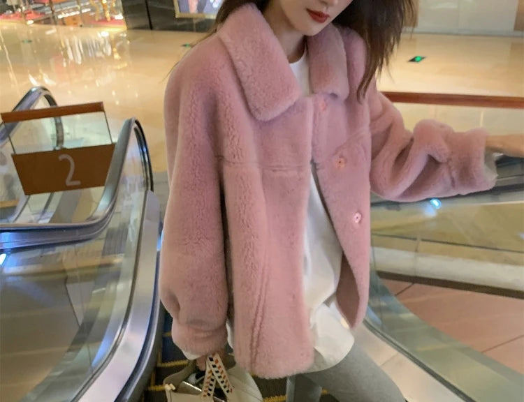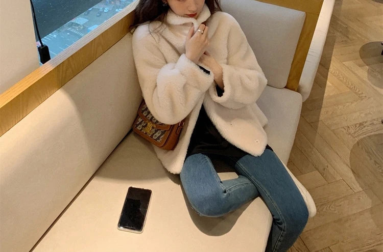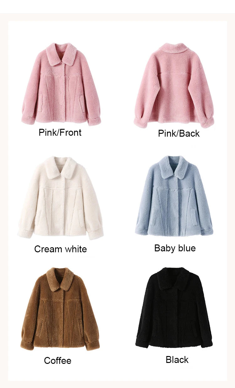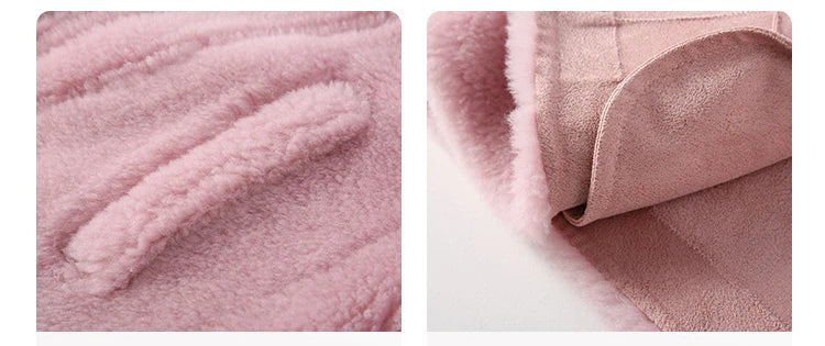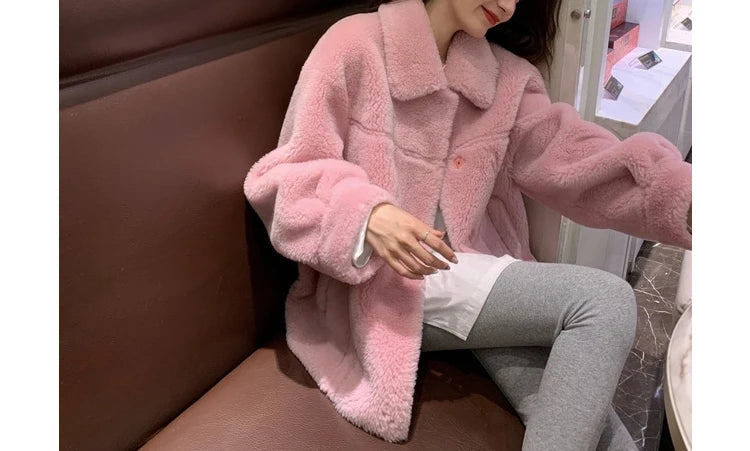 Women's Thick Warm Autumn Winter Solid Lamb Fur 100% Wool Coat