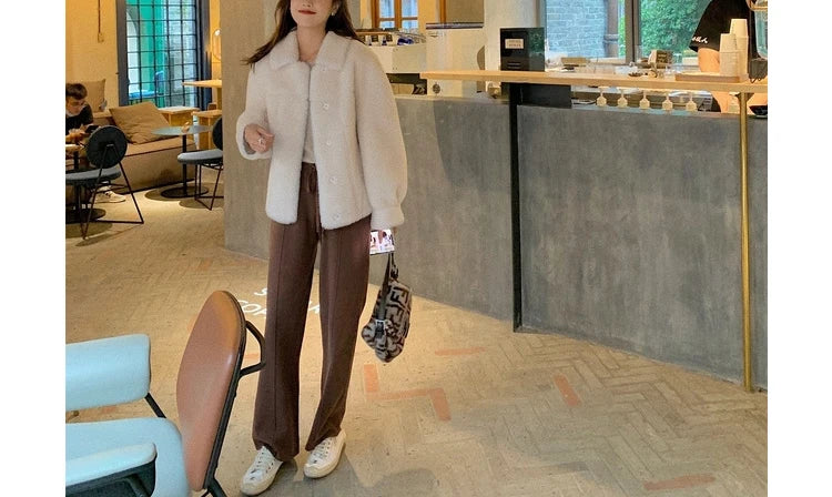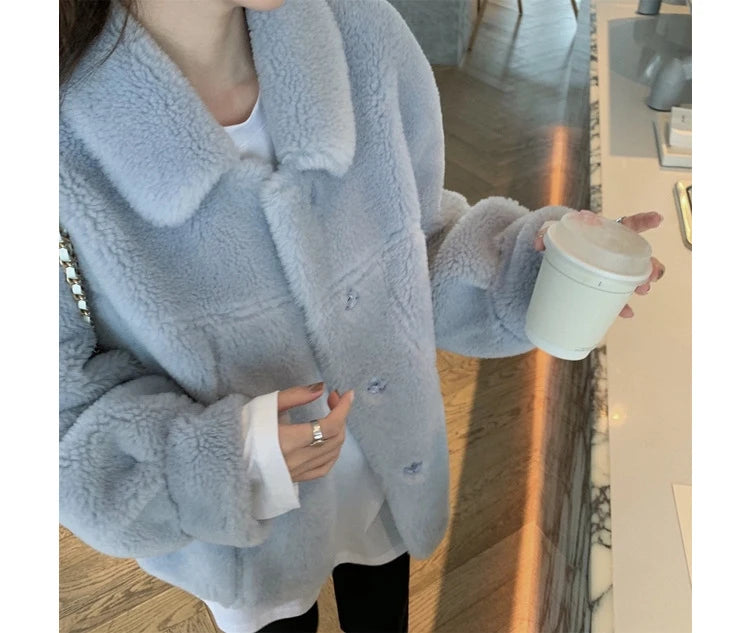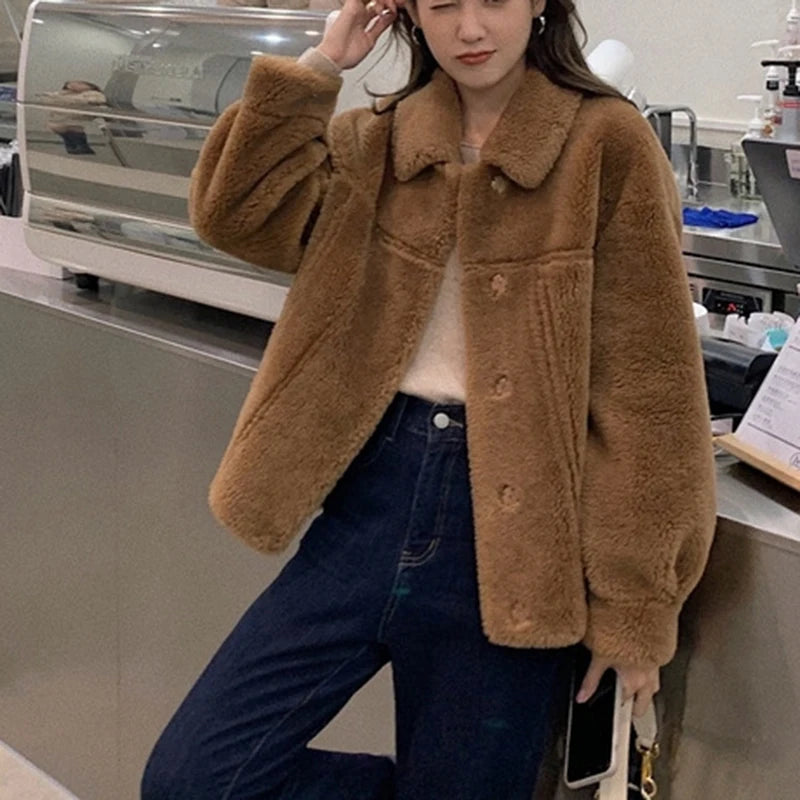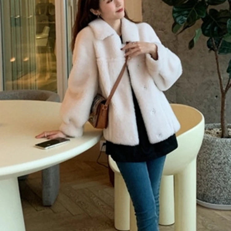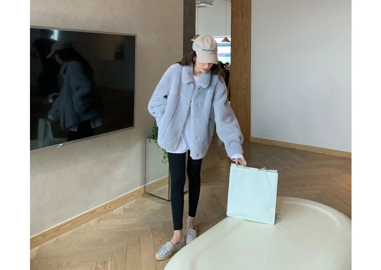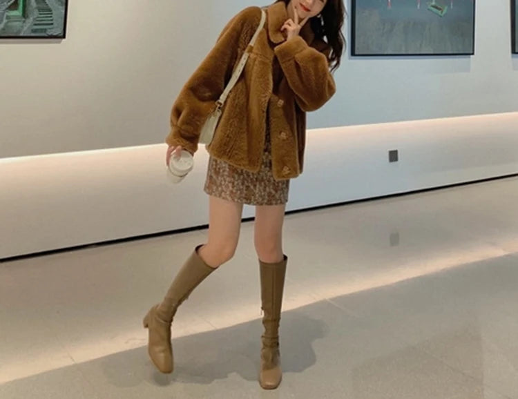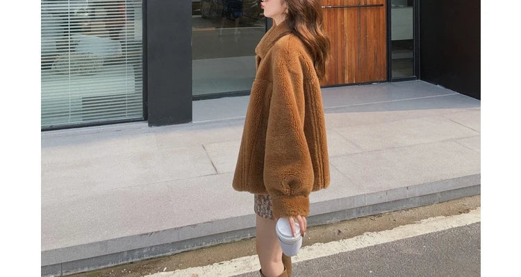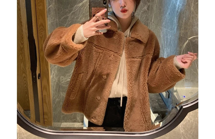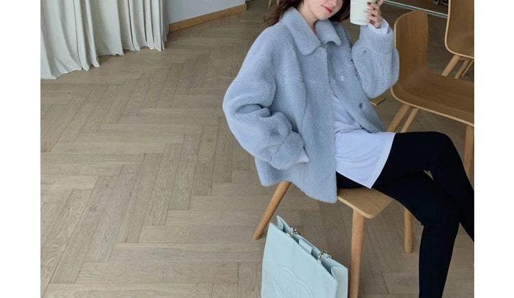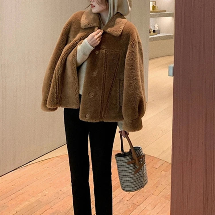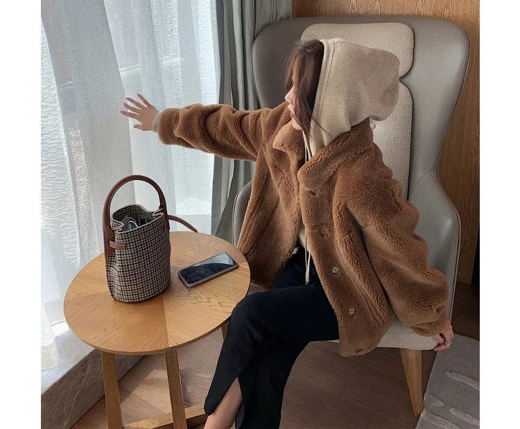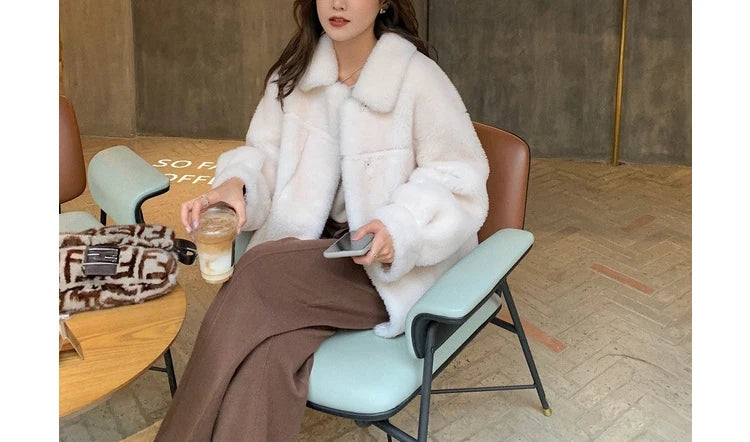 Women's Thick Warm Autumn Winter Solid Lamb Fur 100% Wool Coat