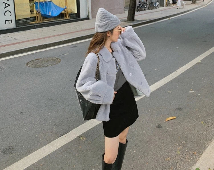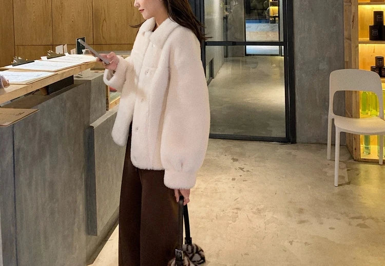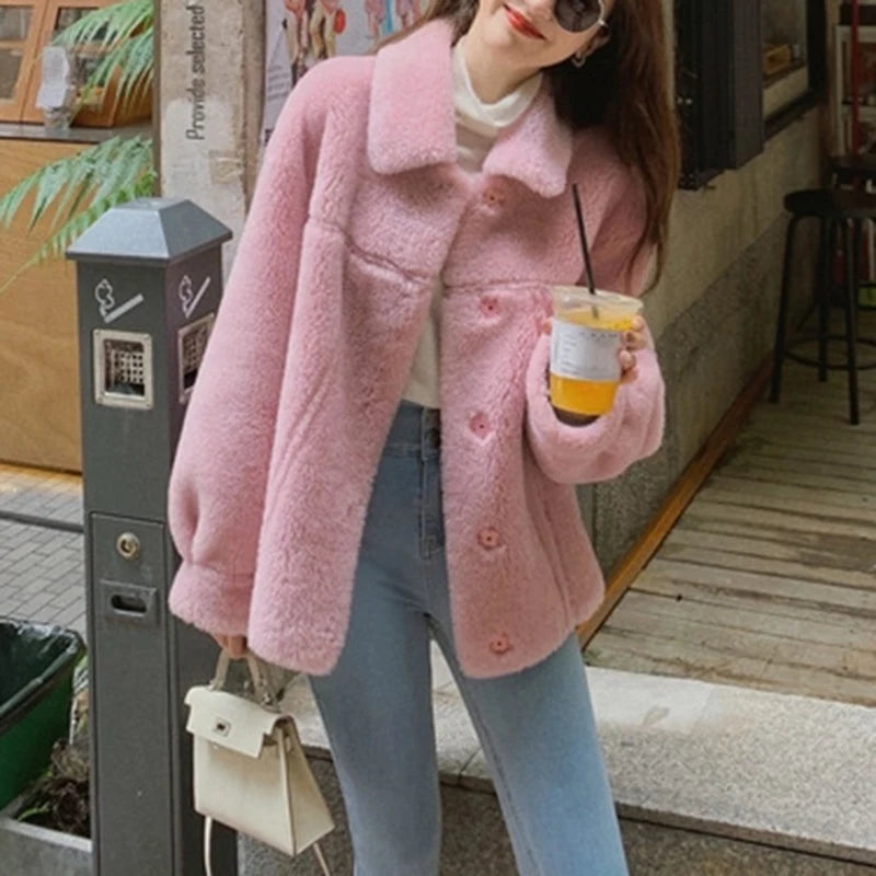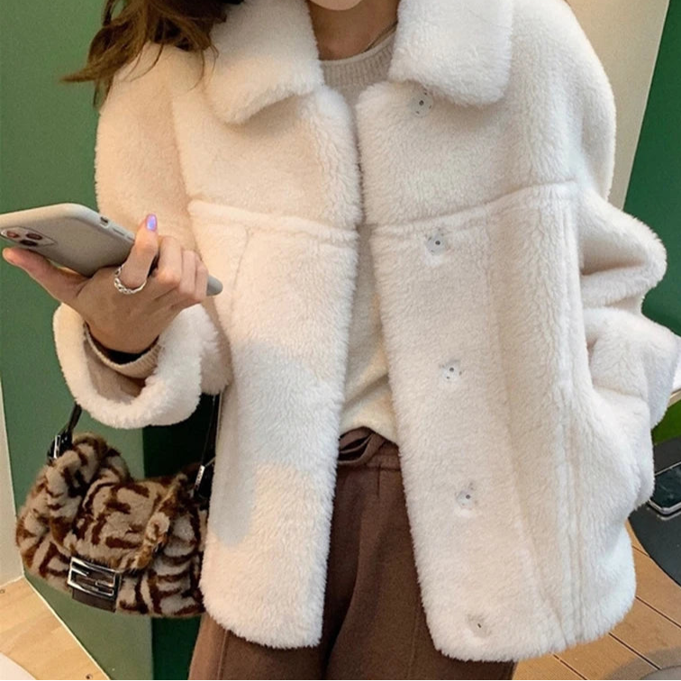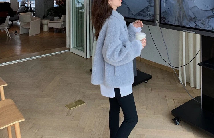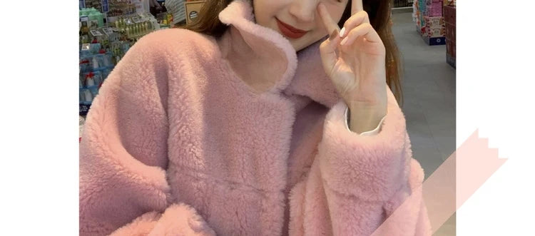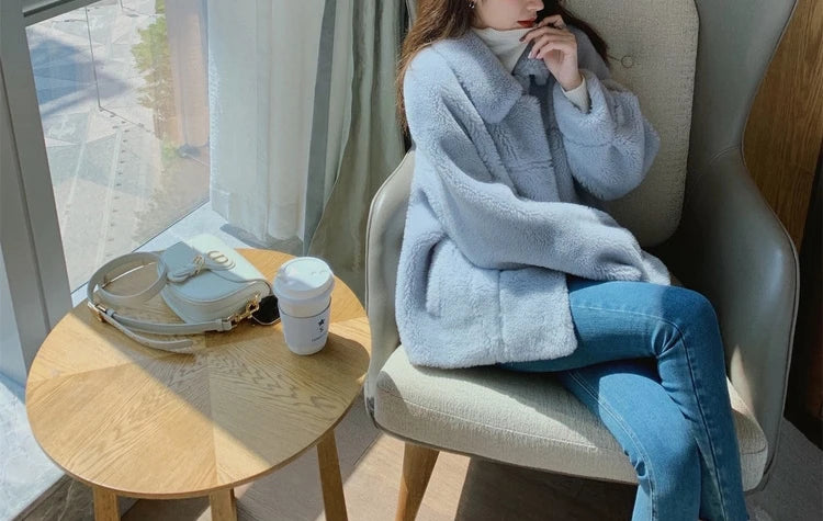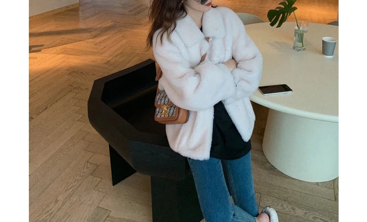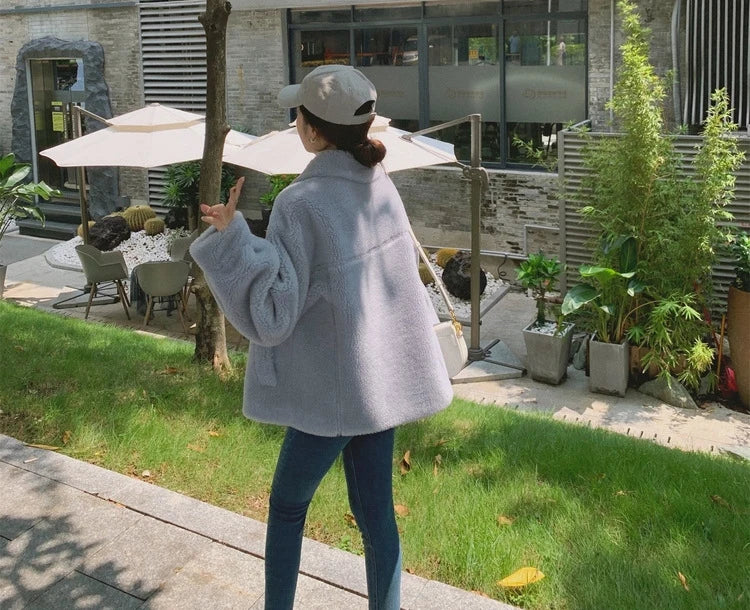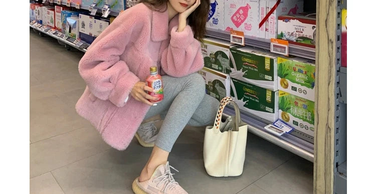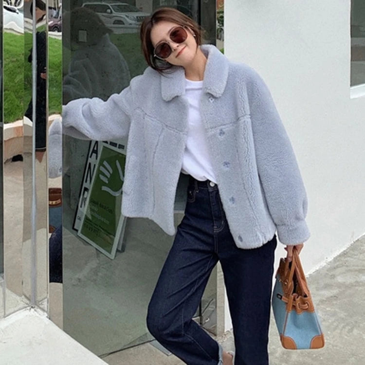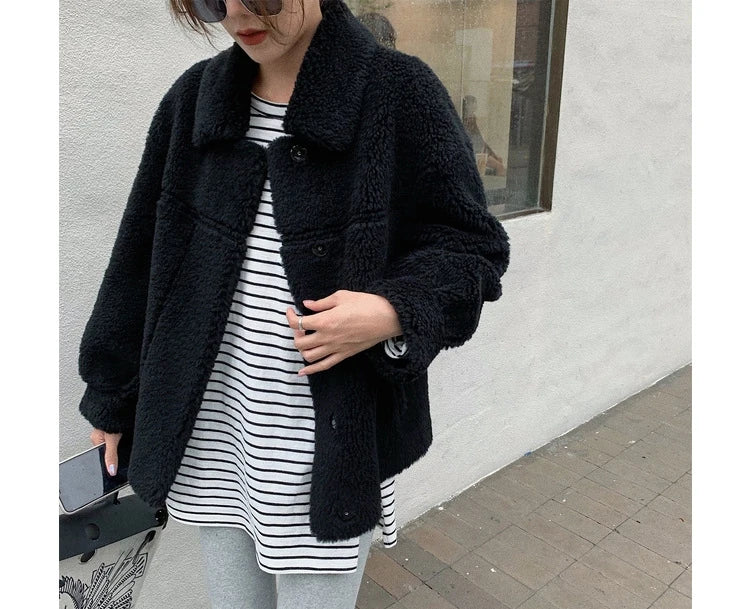 Women's Thick Warm Autumn Winter Solid Lamb Fur 100% Wool Coat