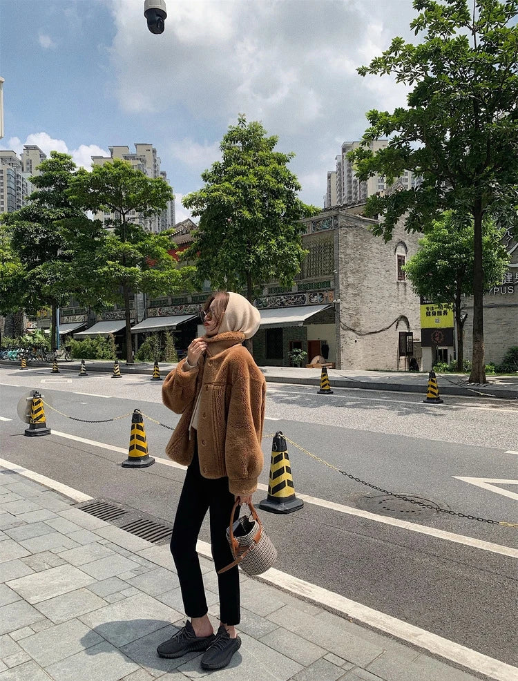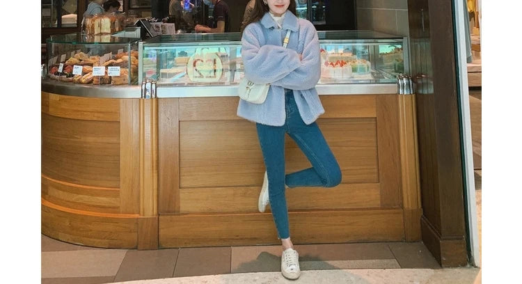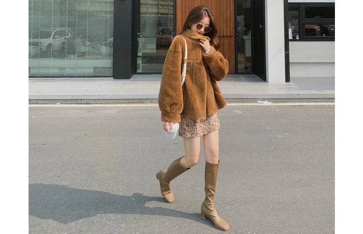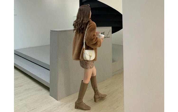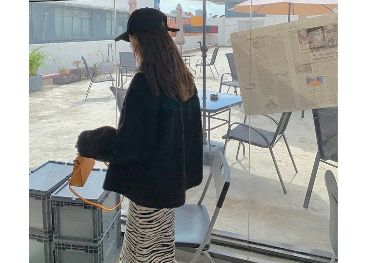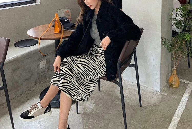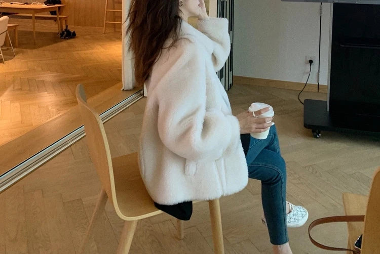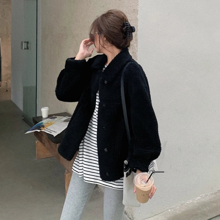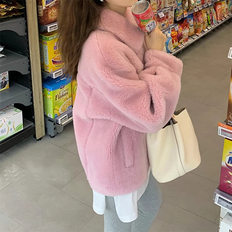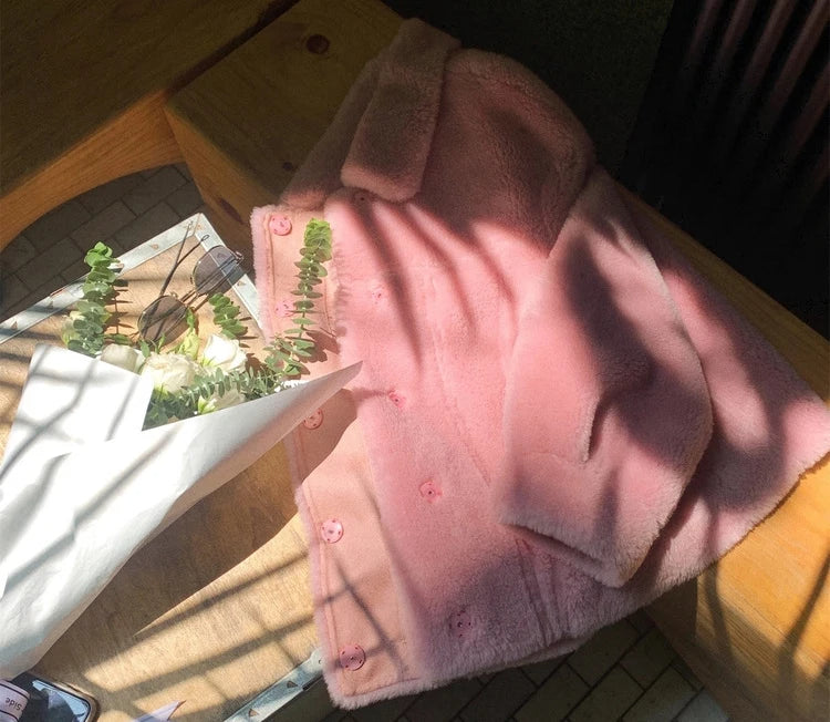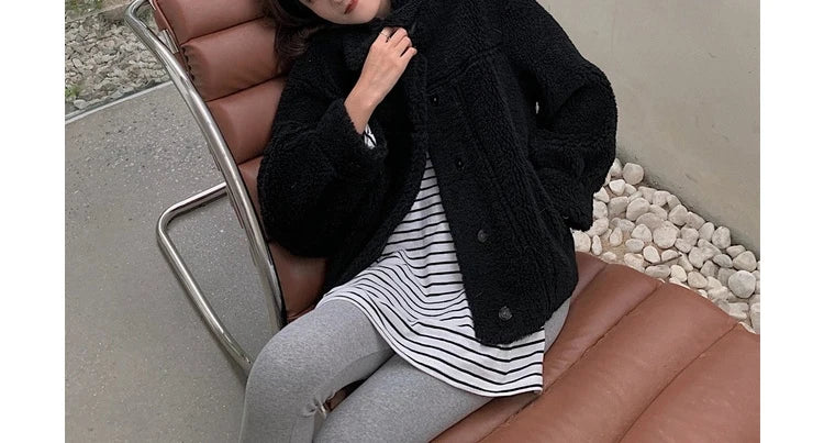 Women's Thick Warm Autumn Winter Solid Lamb Fur 100% Wool Coat