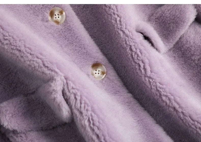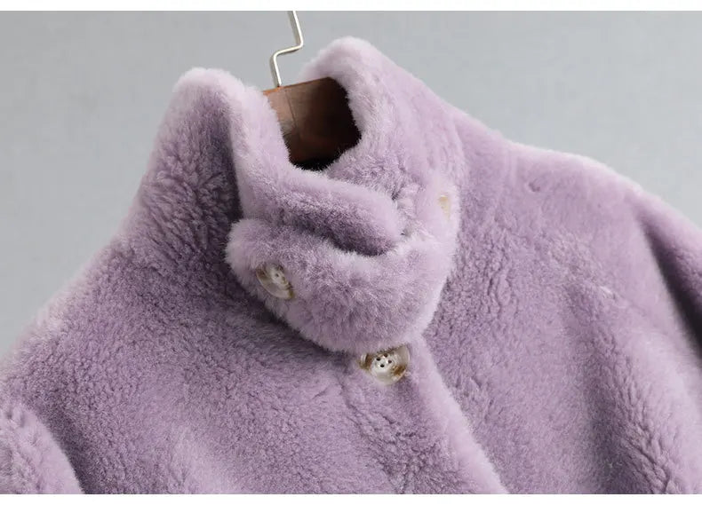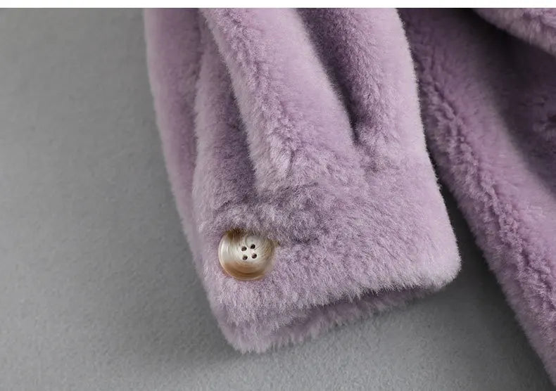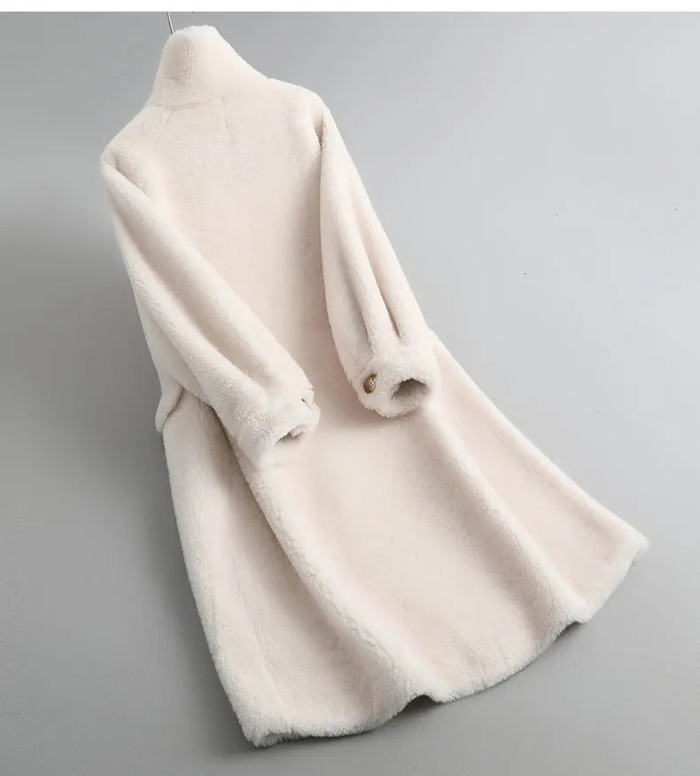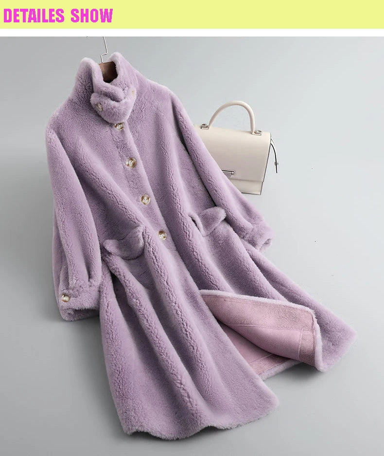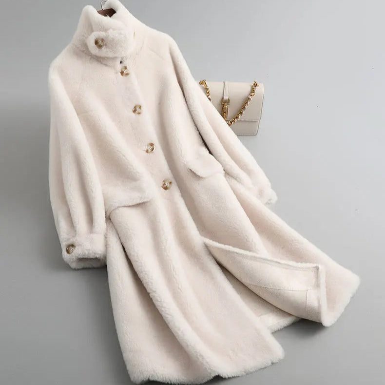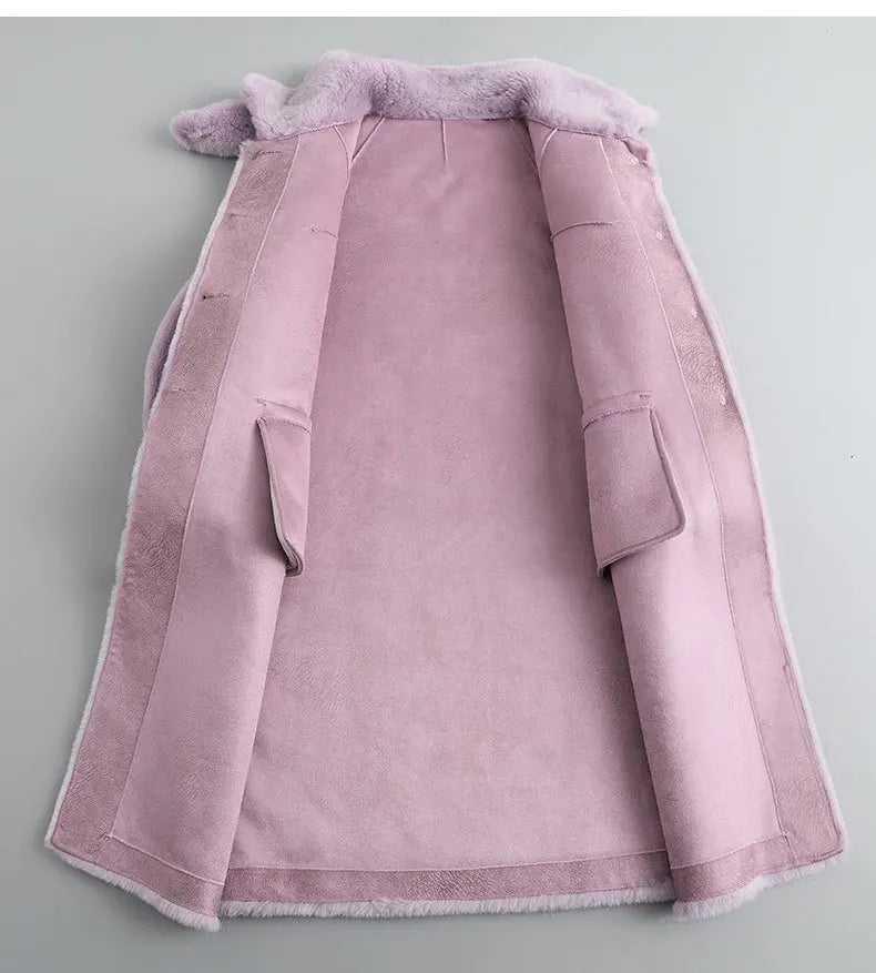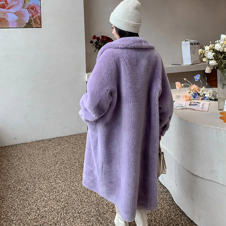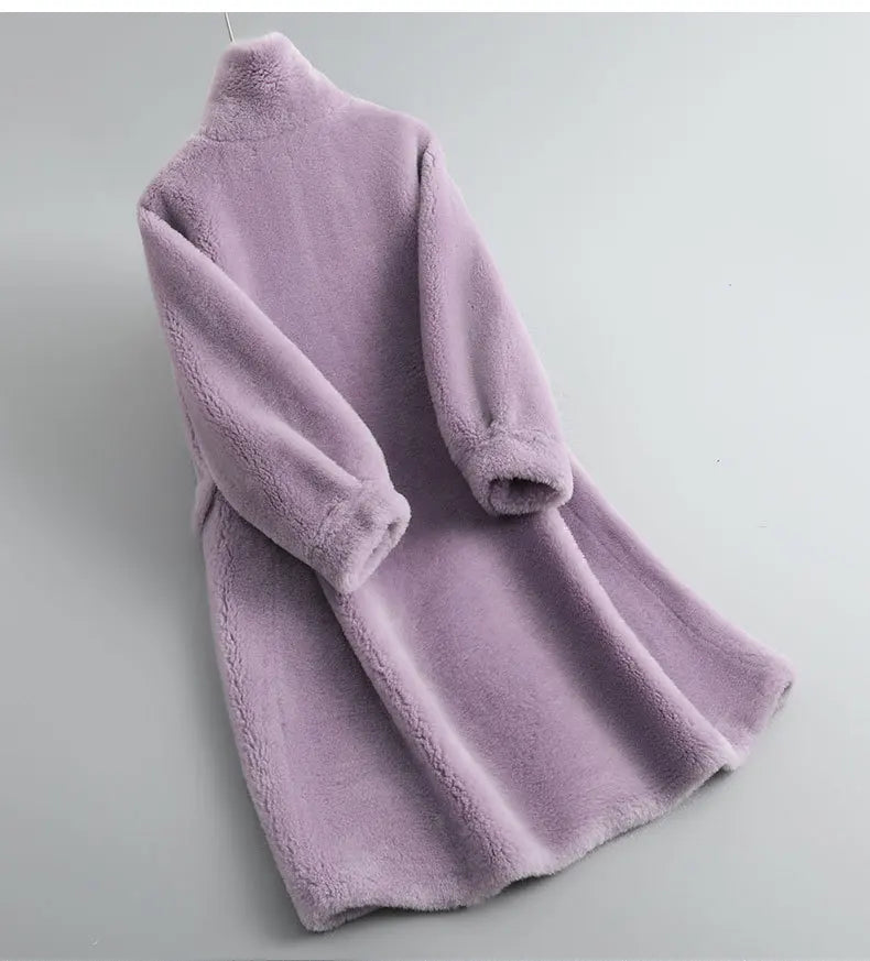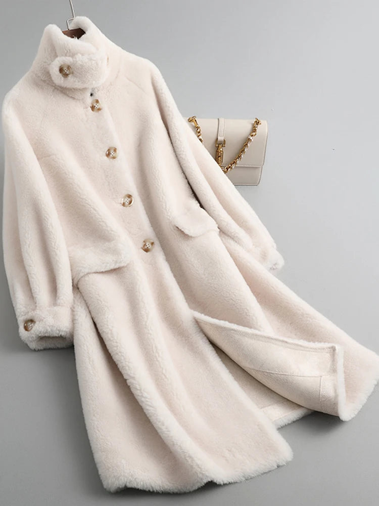 Women's Warm Single-breasted Stand Collar Suede Lamb Fur Long Winter Coat